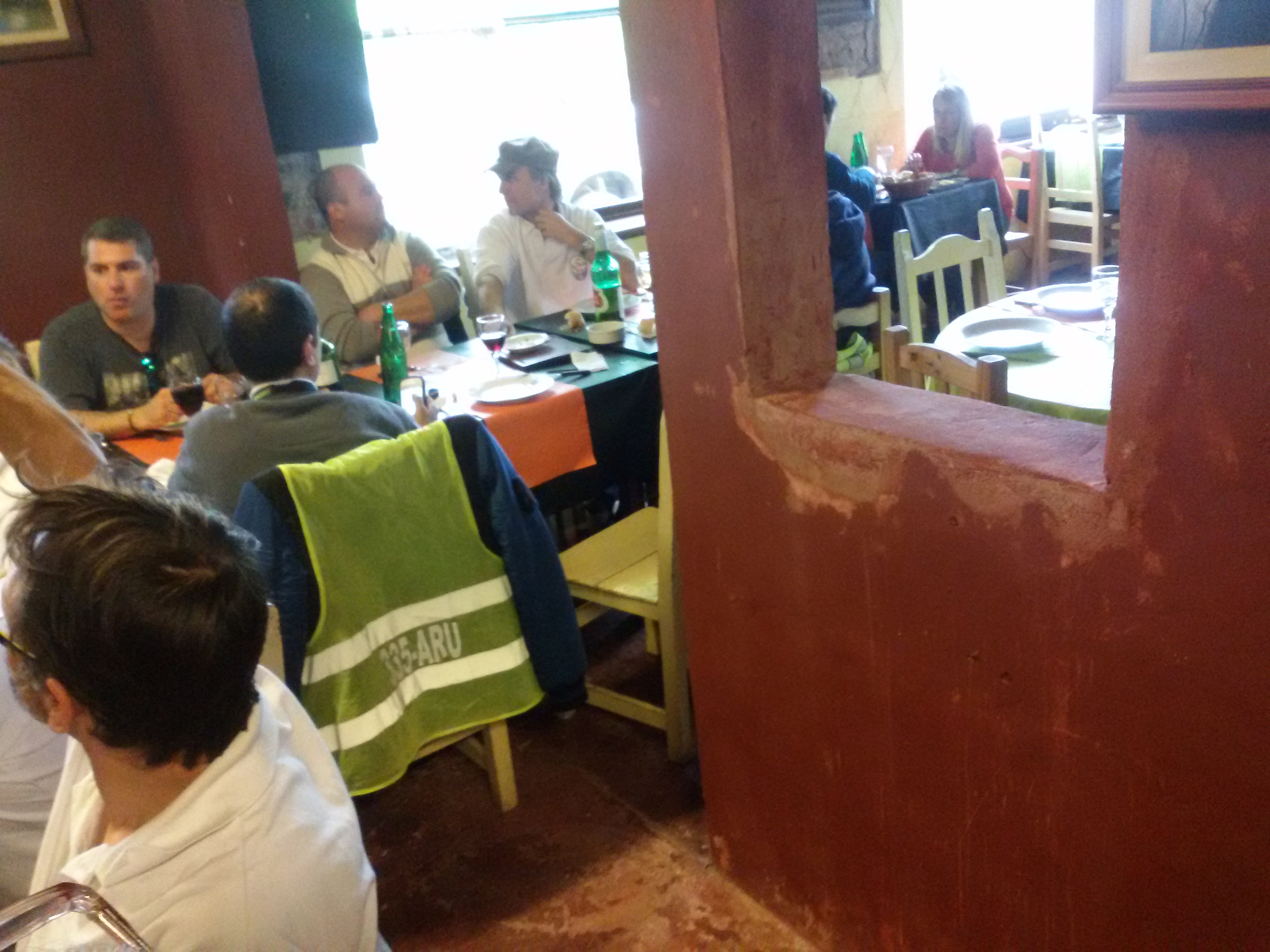 Salimos a las 9 puntuales de la Shell de Ciudadela, para tomar Autopista del Oeste y la autovía 6 hasta llegar a Open Door, recorriendo en total 70 kms. El lugar elegido para almorzar el restaurant «Estación Cabred». Impecable viaje, sin mayores inconvenientes, a media mañana estábamos en destino. El almuerzo, parrilla, con entrada de empanadas y tablas de fiambres, muy bien regado por cierto.