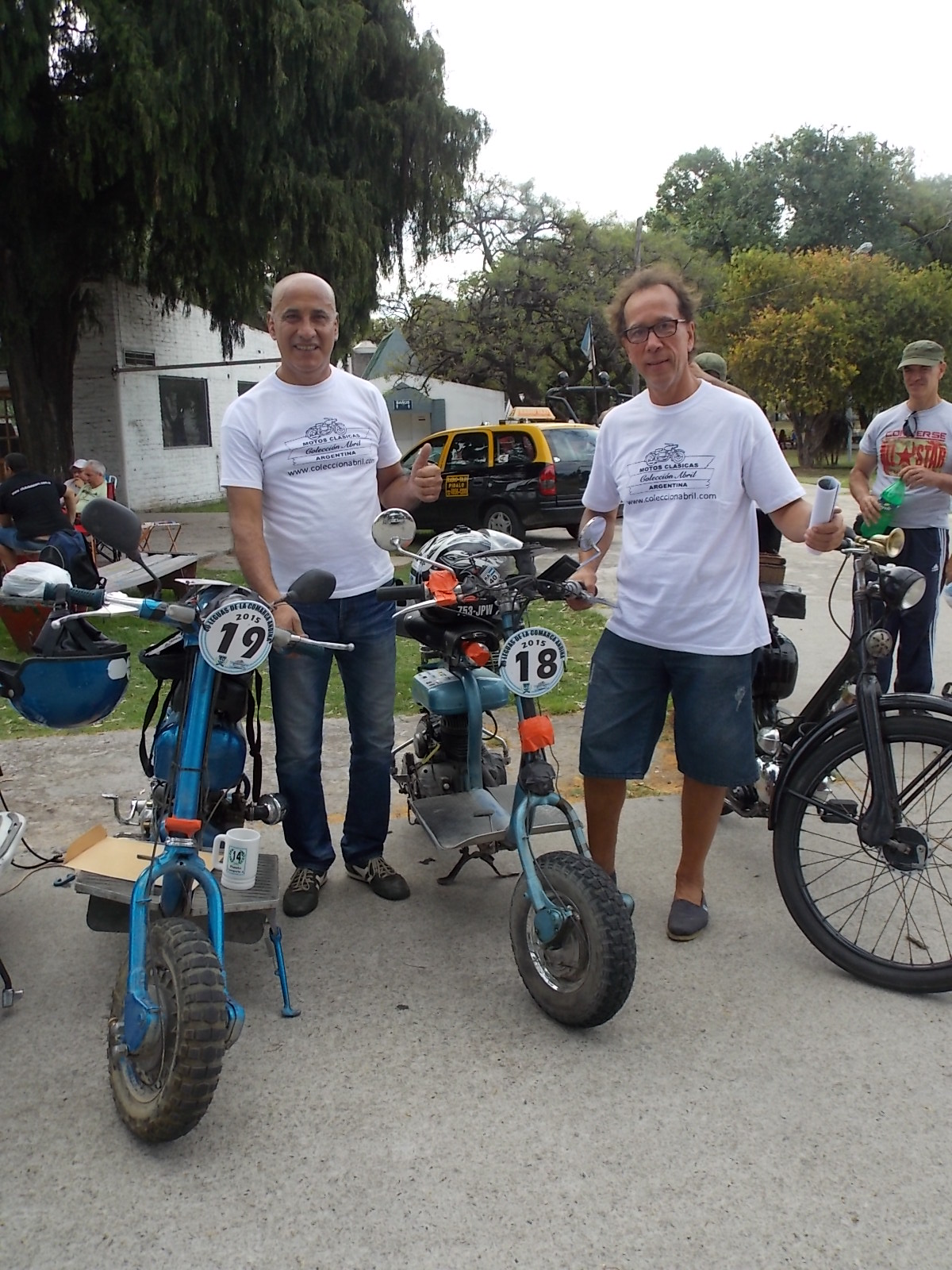 Pudimos ver las motonetas de Mariano y Peluche, tal como volvieron de las 40 leguas, hasta con la tierra de El Bolsón, sin guardabarros, tal como anduvieron por el sur.