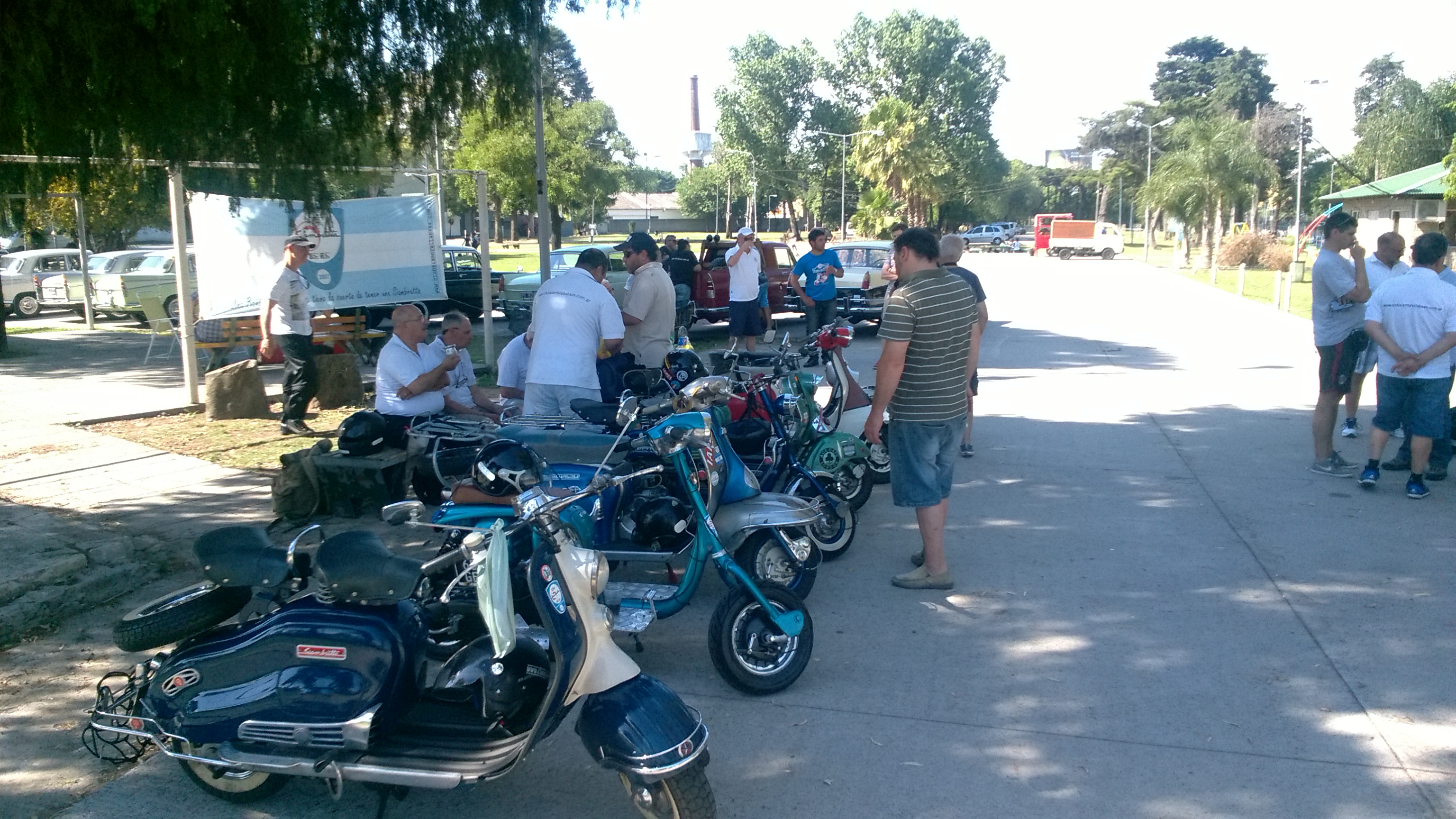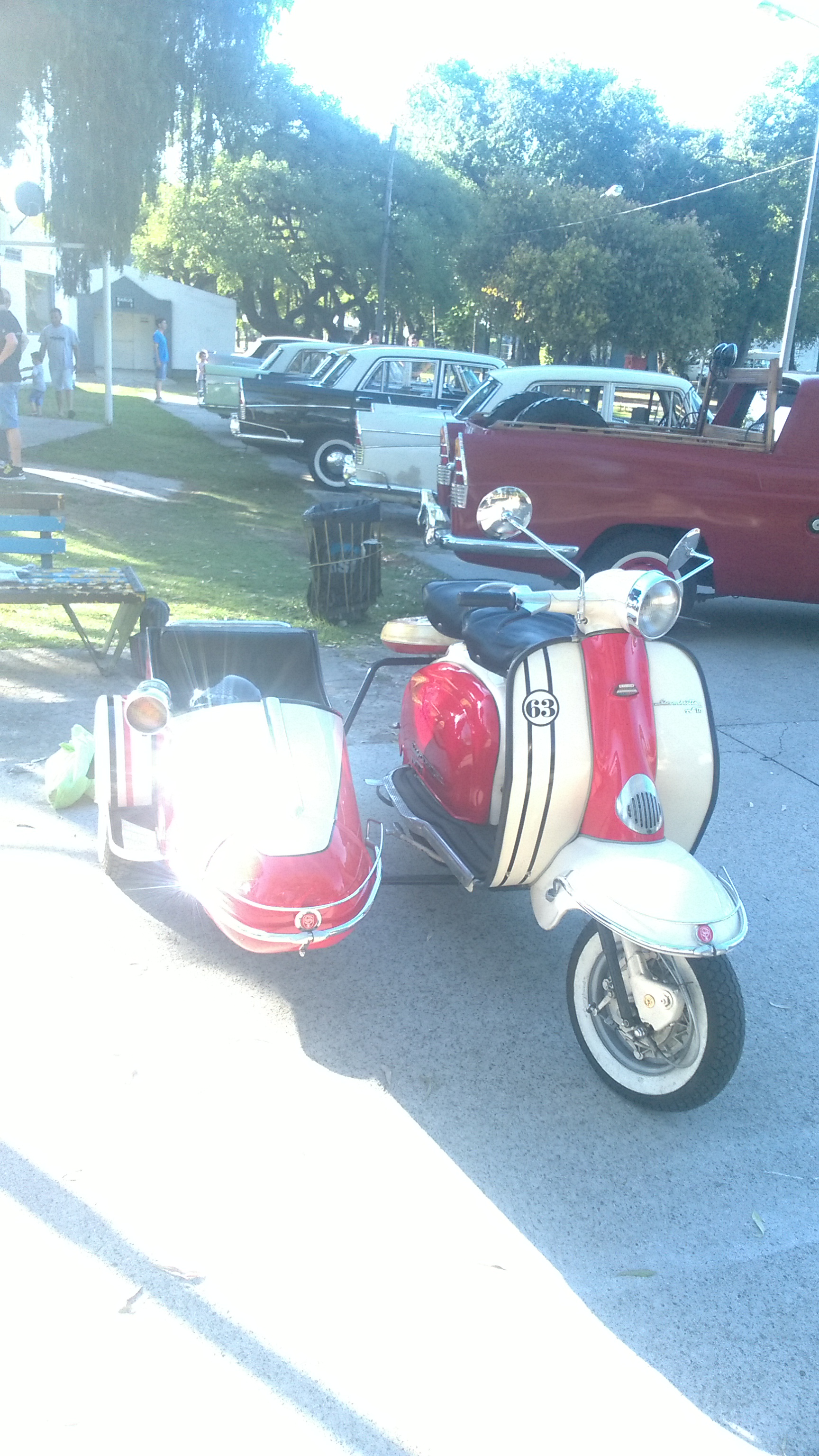Le dimos la bienvenida a Mariano, que desde Campana se vino en su Siambretta AV llevada a 200cc., muy buen trabajo de restauración.