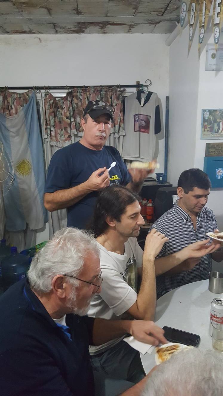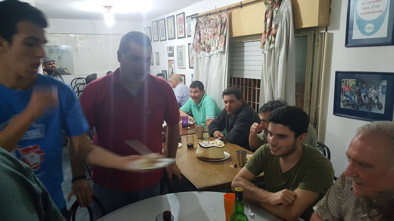 Además coincidió con el cumpleaños de Walter Garrido así que como torta hubo postre Balcarce, una exquisitez de la pizzería El Fortín. Estaba para chuparse los dedos.
