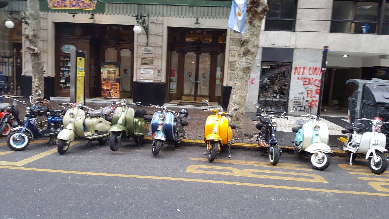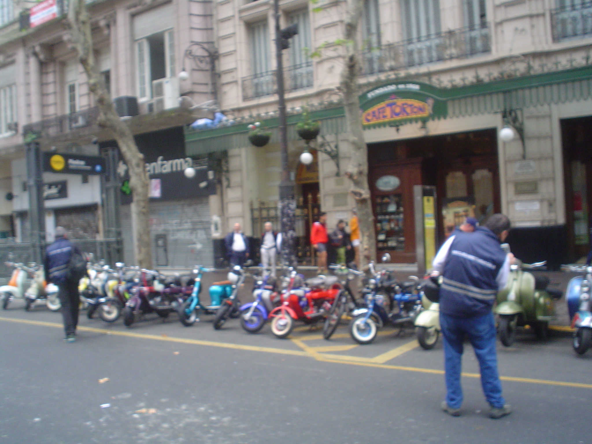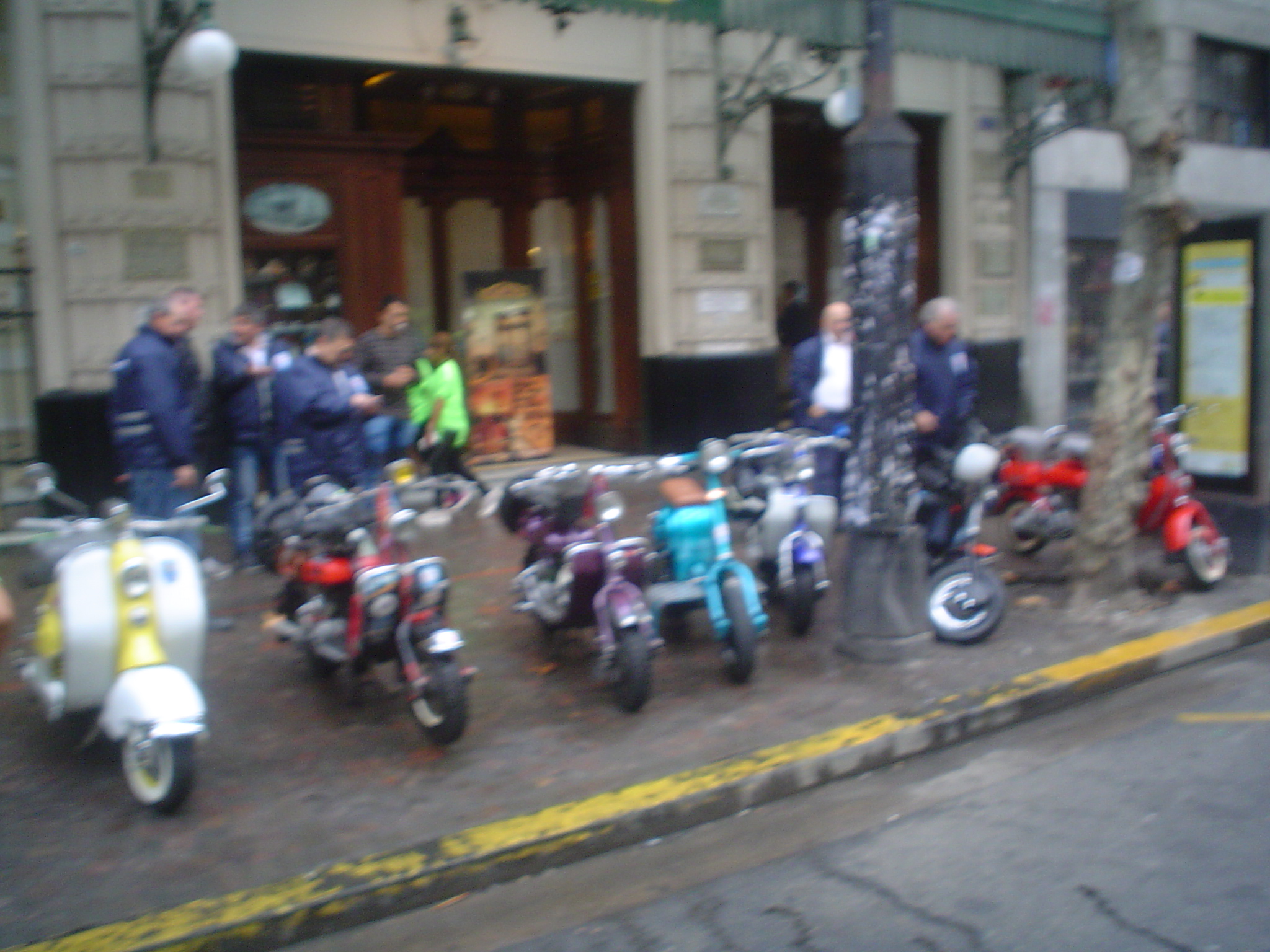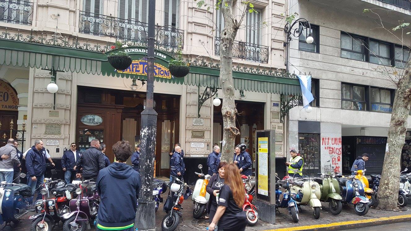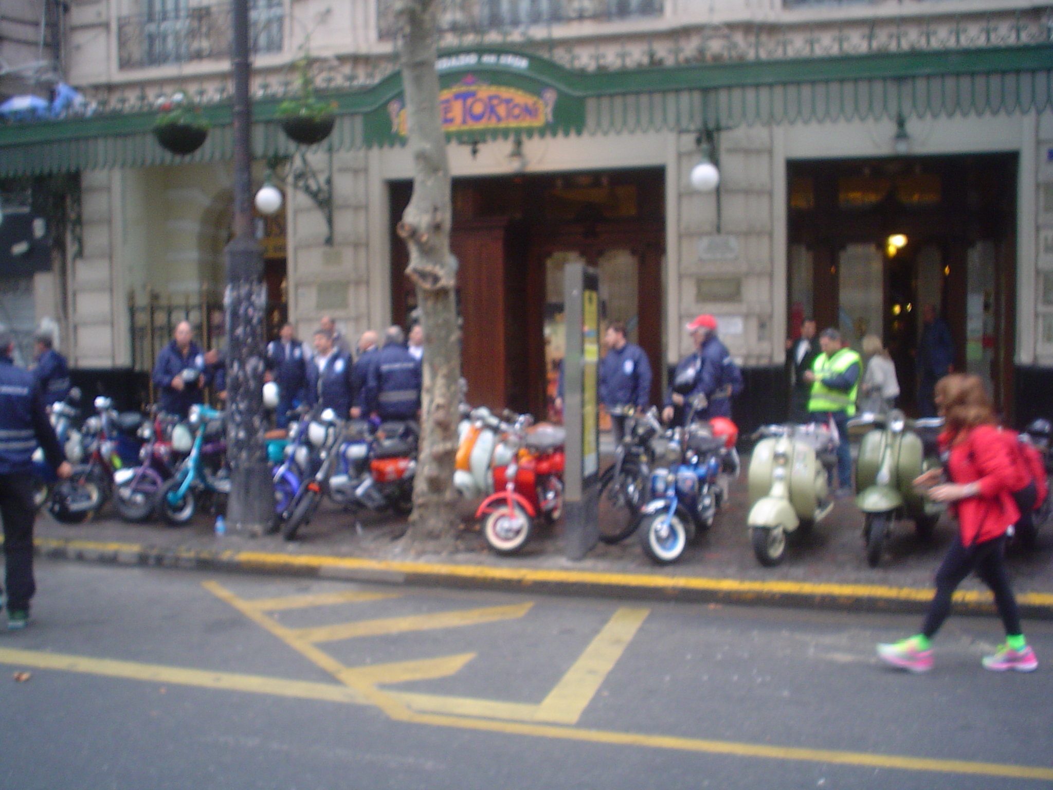 Desayunamos café con leche con medialunas, aprovechamos para recorrer el Tortoni y sacar fotos. Es de destacar la admiración que generan las Siambrettas, mucha gente queriendose sacar fotos arriba de las motonetas.