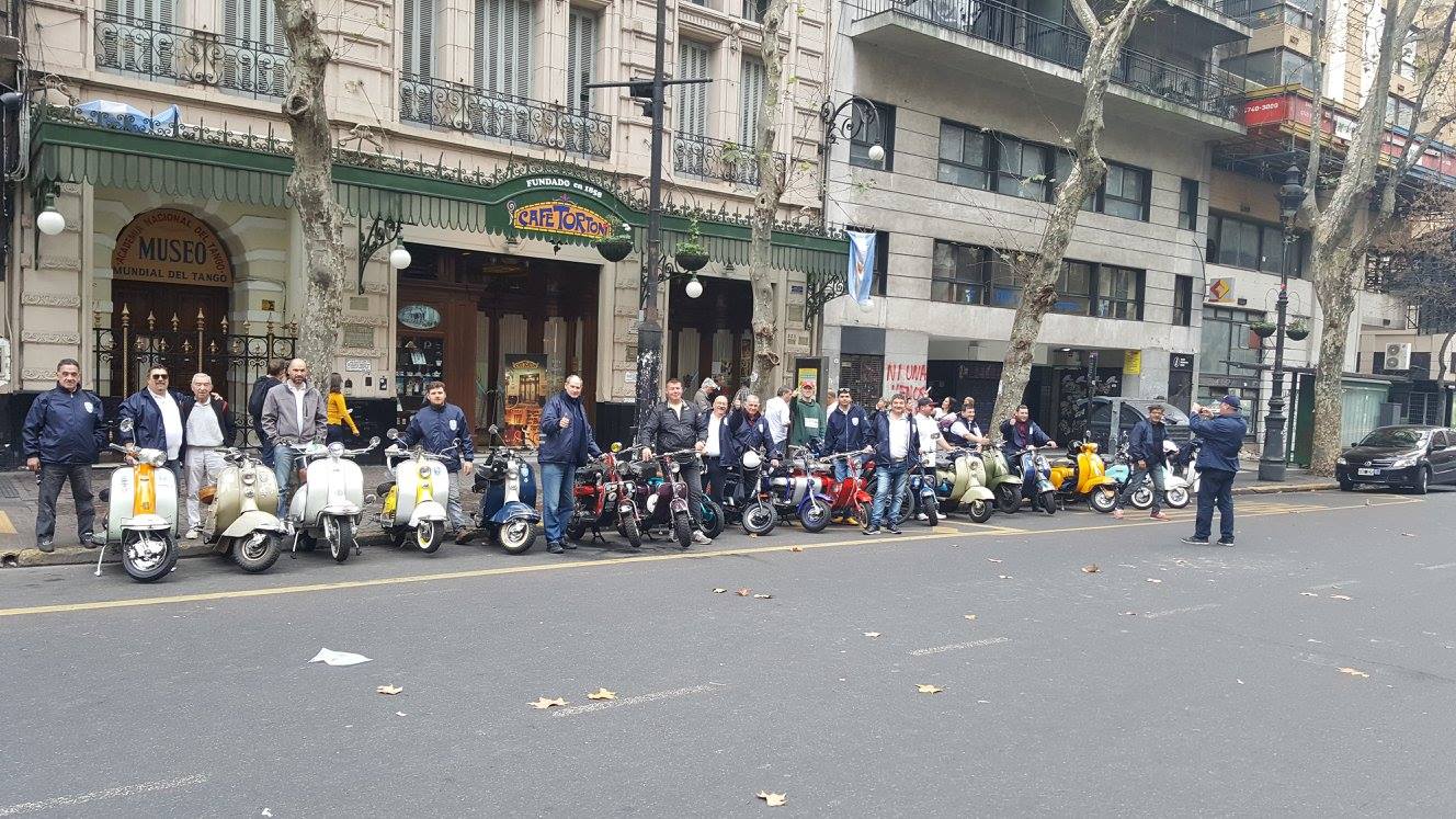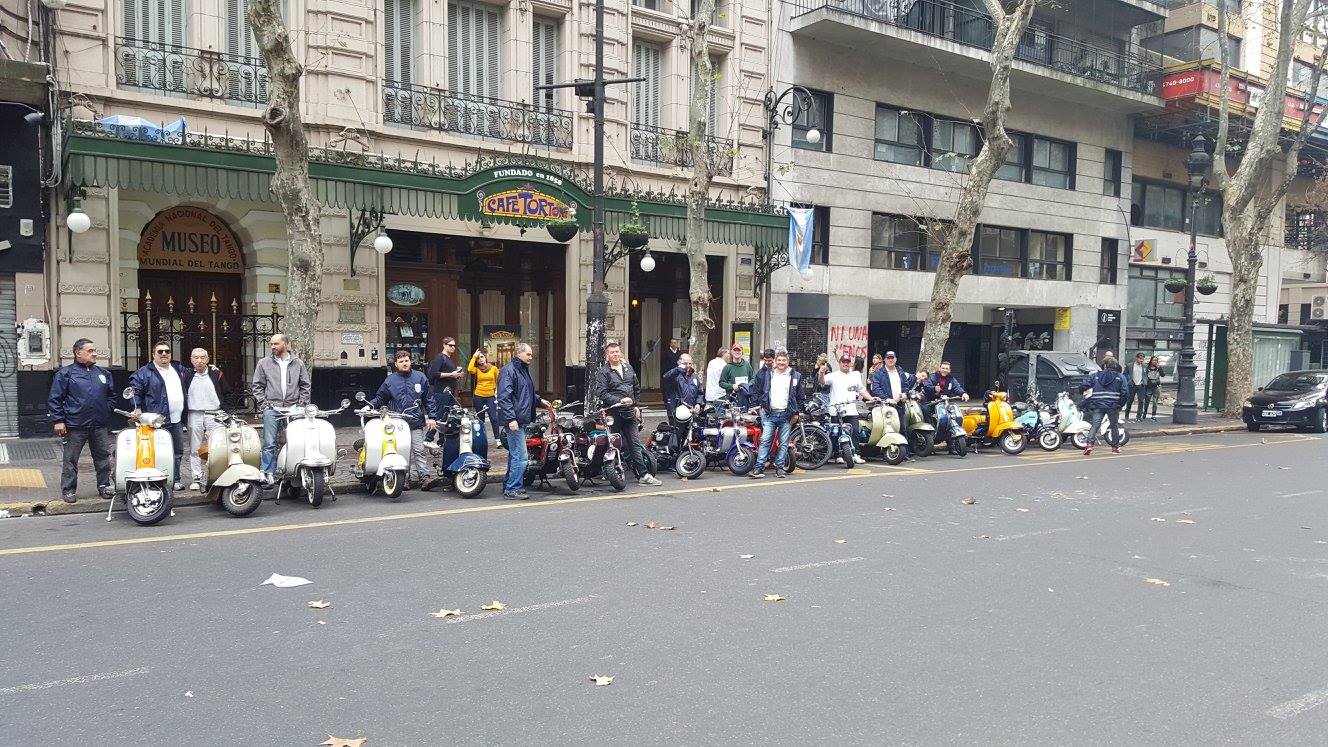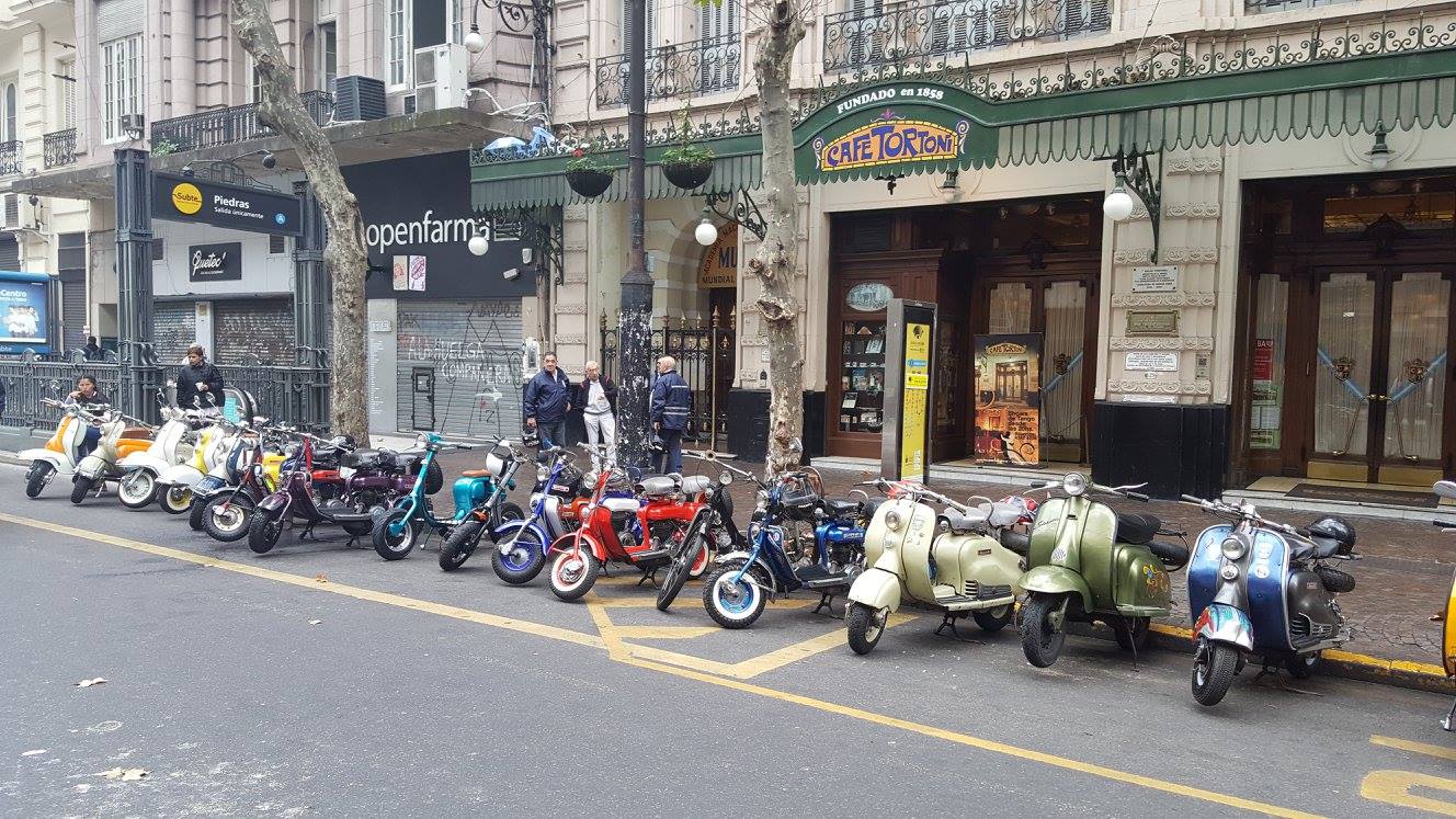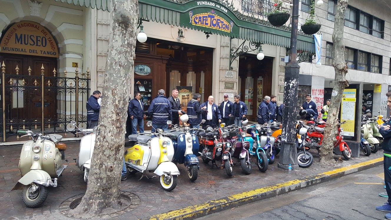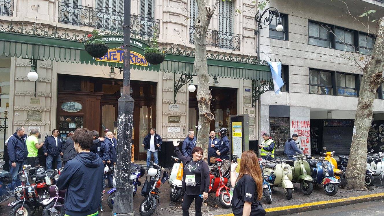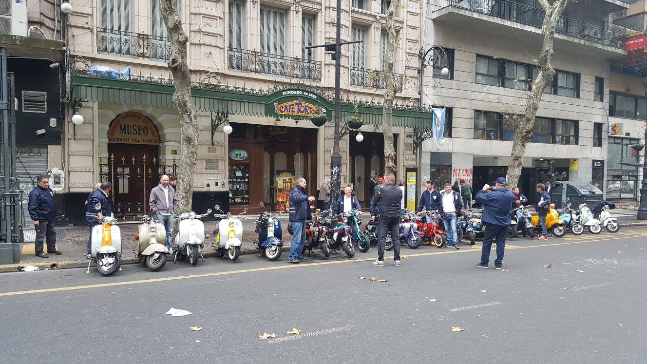 Desayunamos café con leche con medialunas, aprovechamos para recorrer el Tortoni y sacar fotos. Es de destacar la admiración que generan las Siambrettas, mucha gente queriendose sacar fotos arriba de las motonetas.