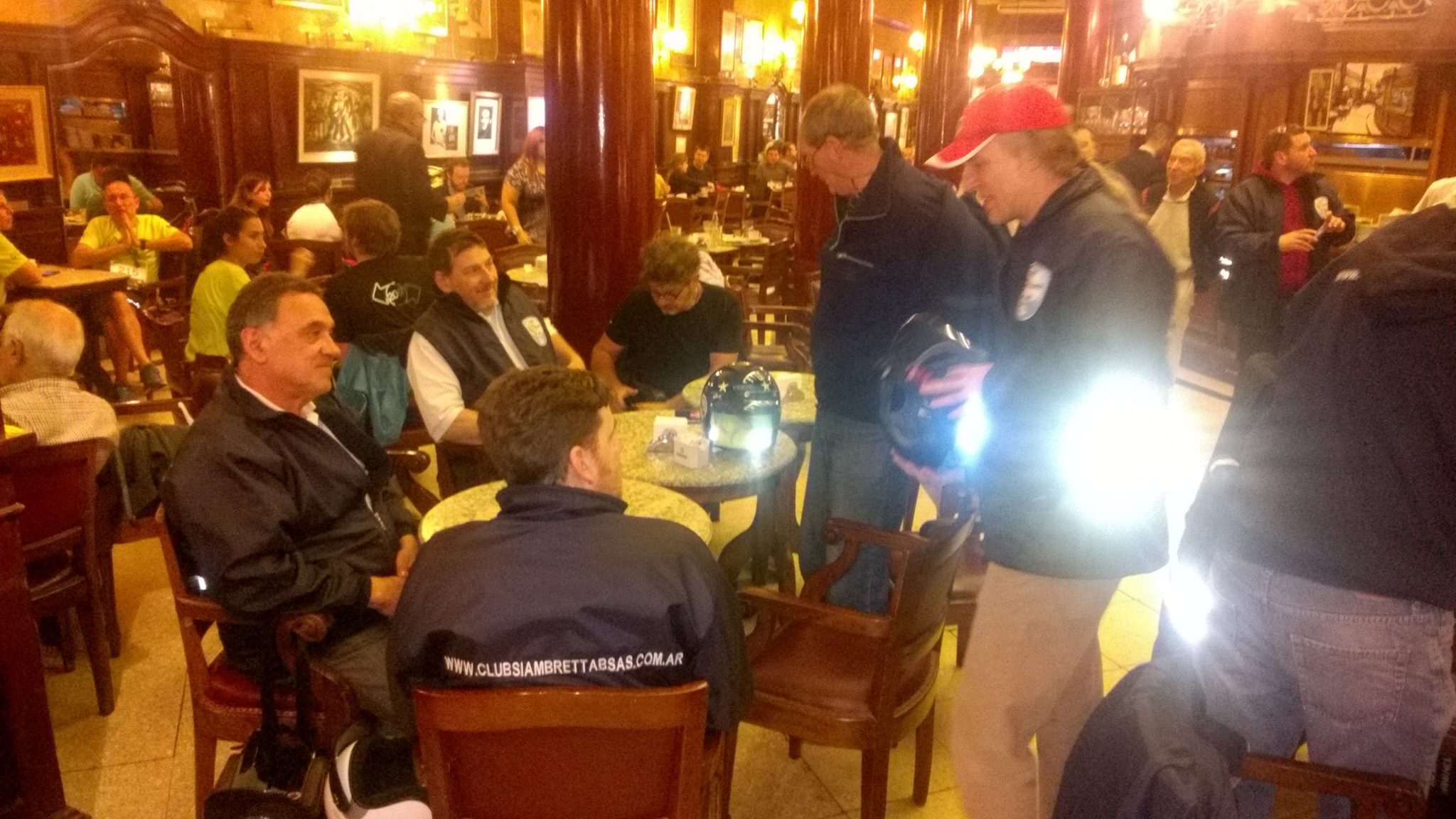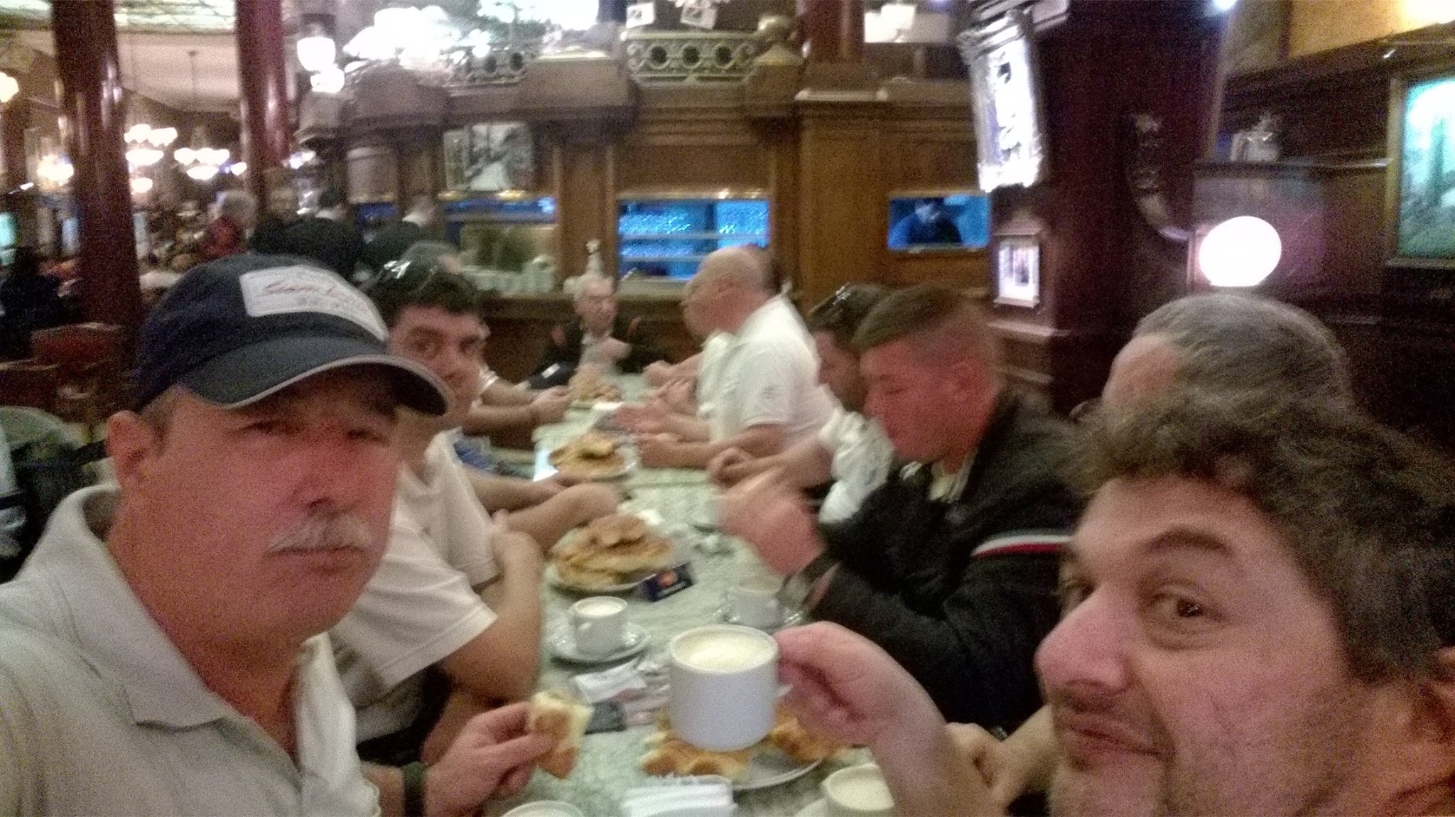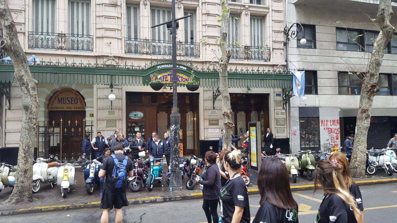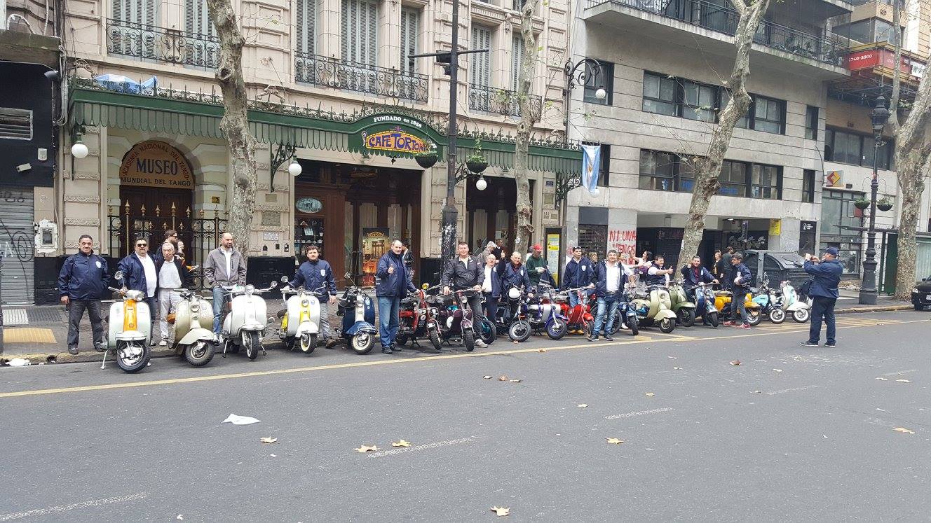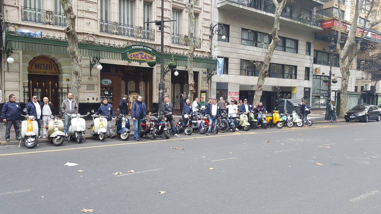 Desayunamos café con leche con medialunas, aprovechamos para recorrer el Tortoni y sacar fotos. Es de destacar la admiración que generan las Siambrettas, mucha gente queriendose sacar fotos arriba de las motonetas.