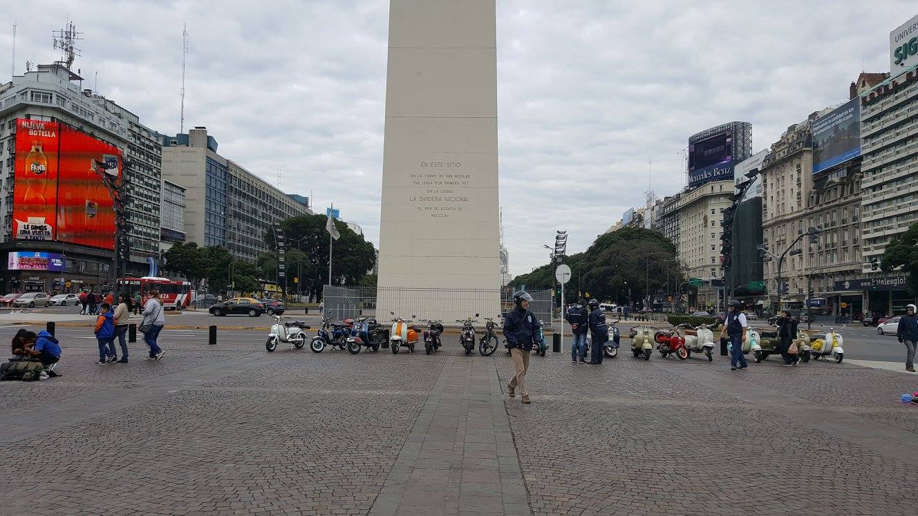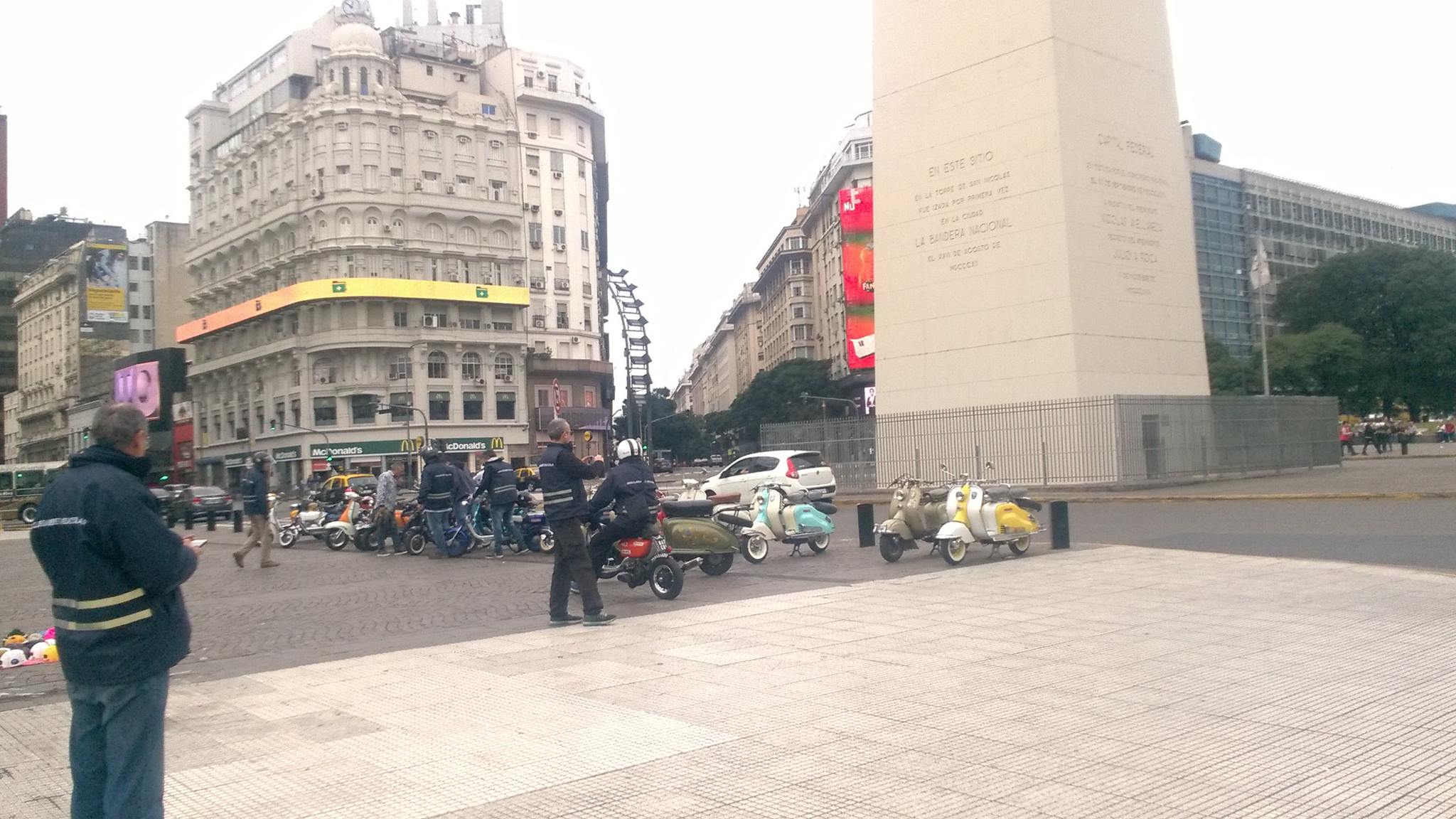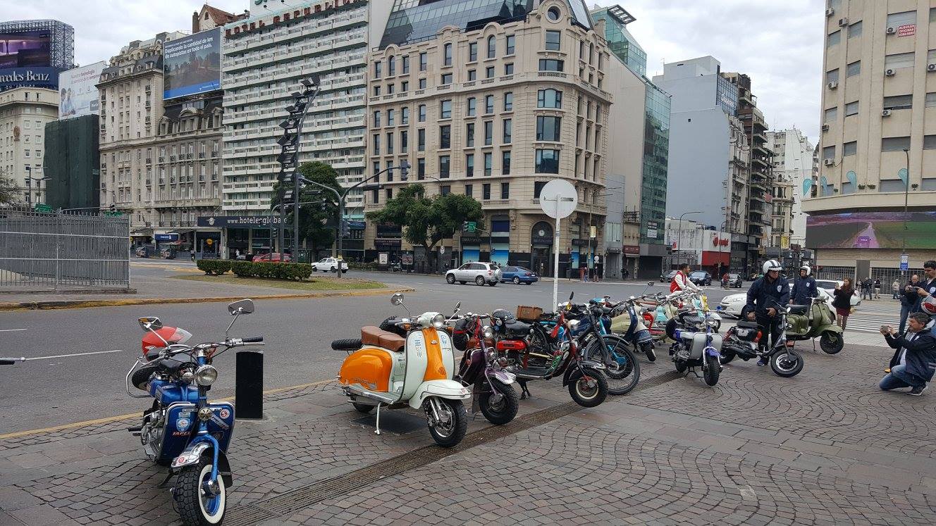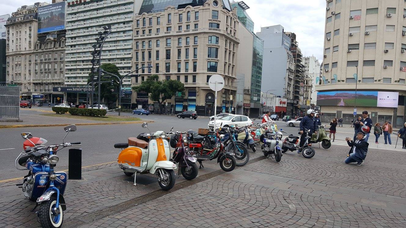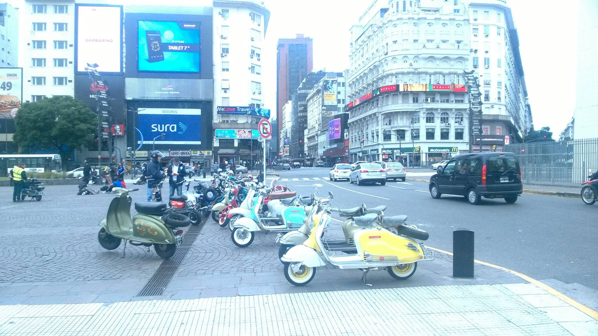 La salida anterior a Parque Lezama y Caminito fue un éxito así que surgió la idea de volver al centro de Buenos Aires. 20 Siambrettas echando humo un domingo por la 9 de Julio, hasta entrar por la calle Piedras y Av. de Mayo.