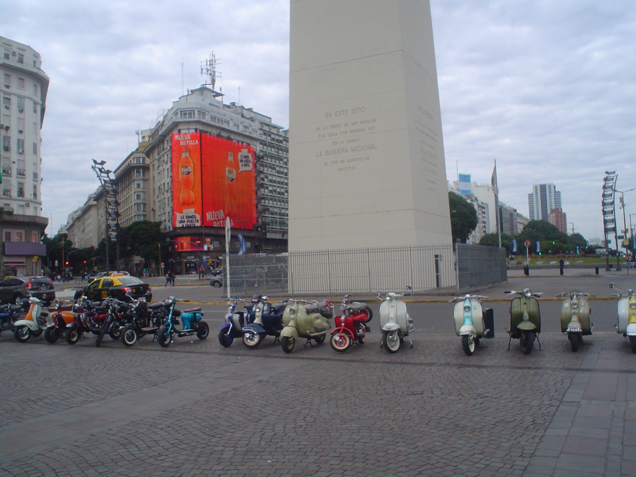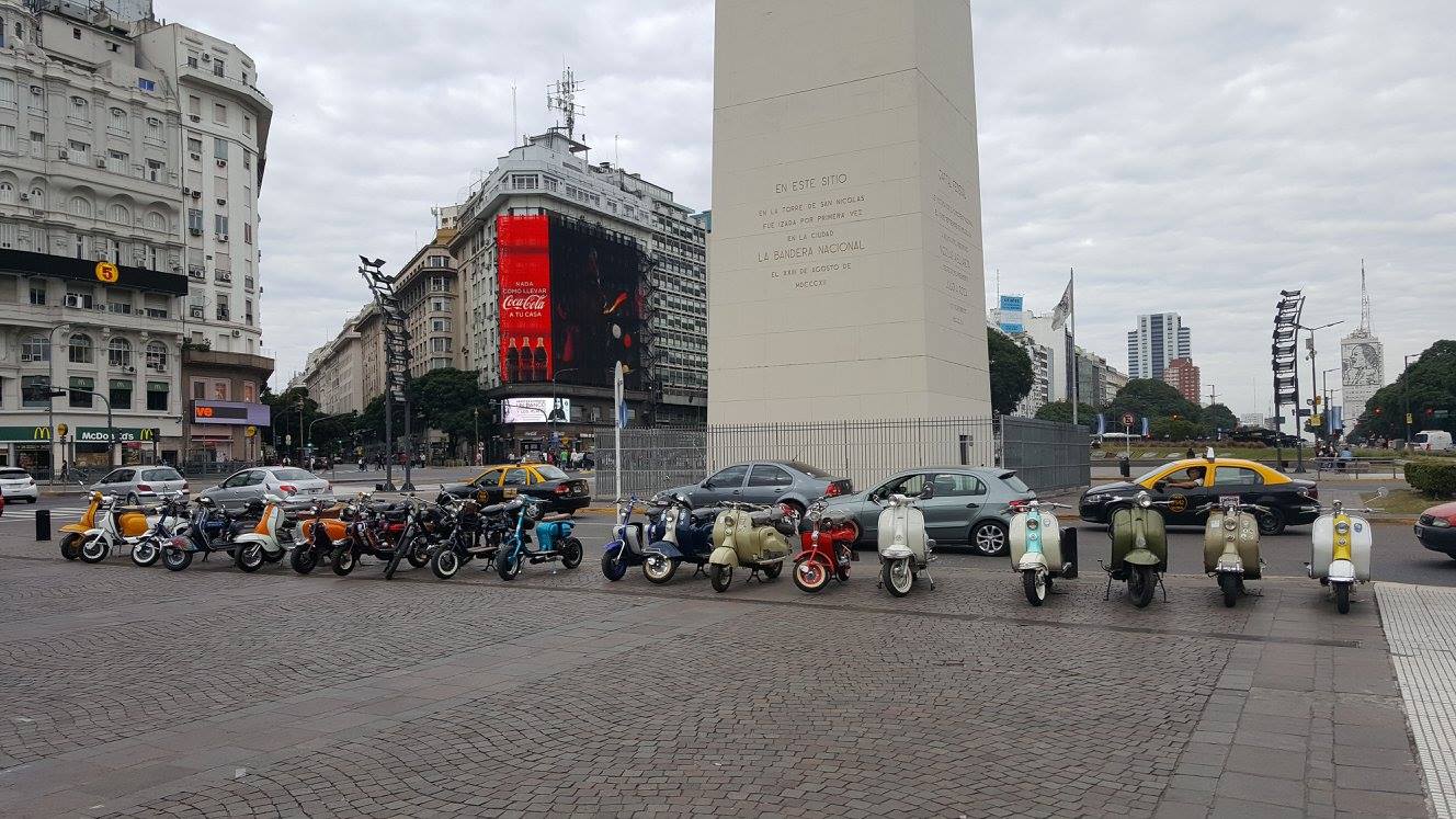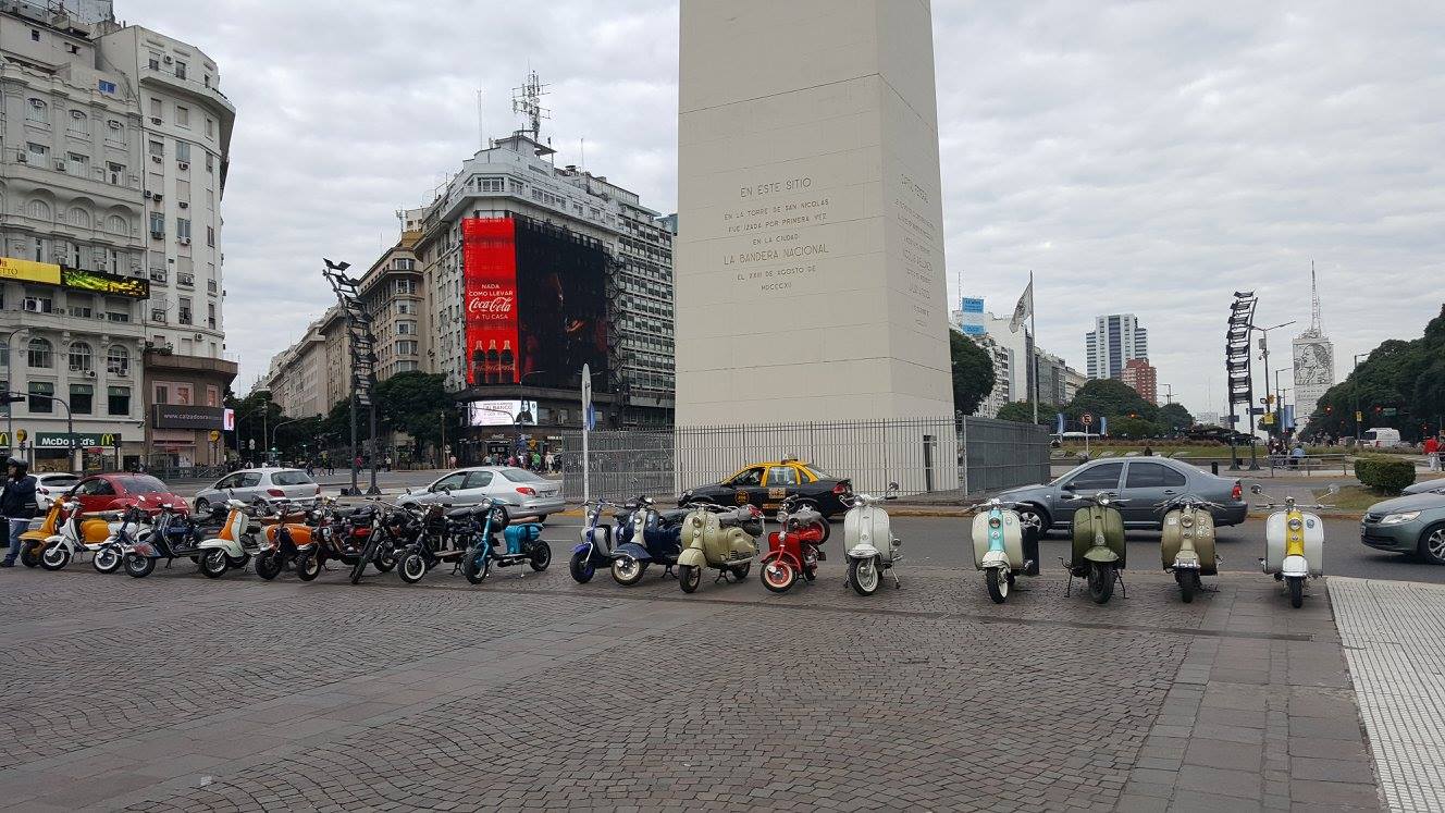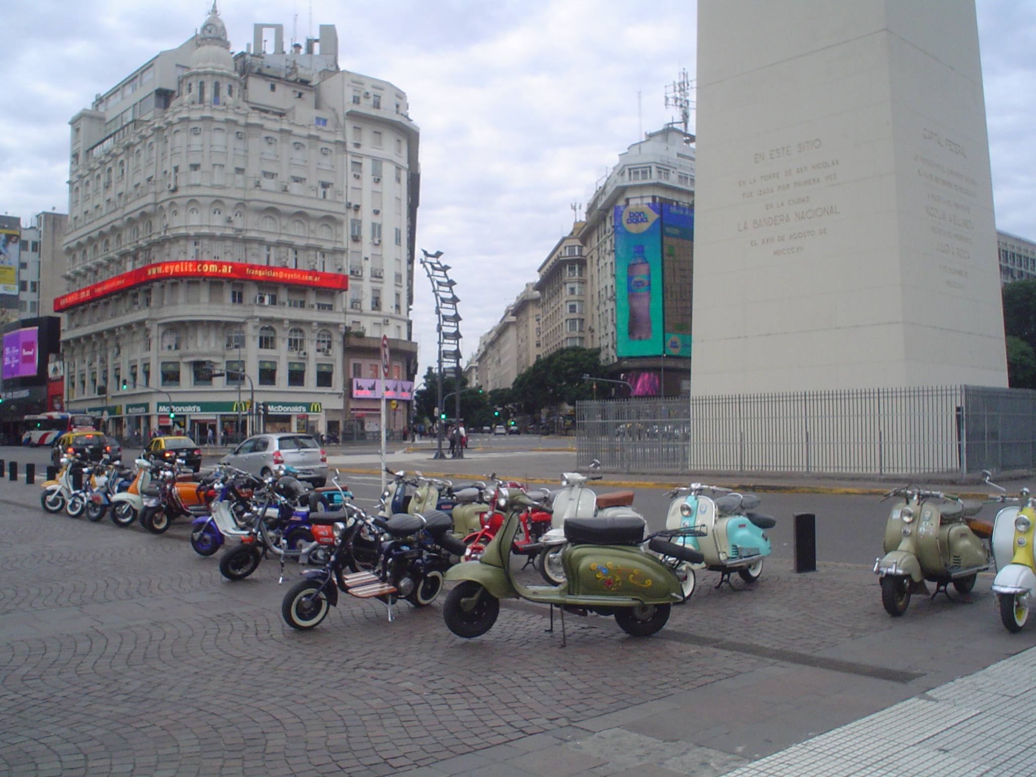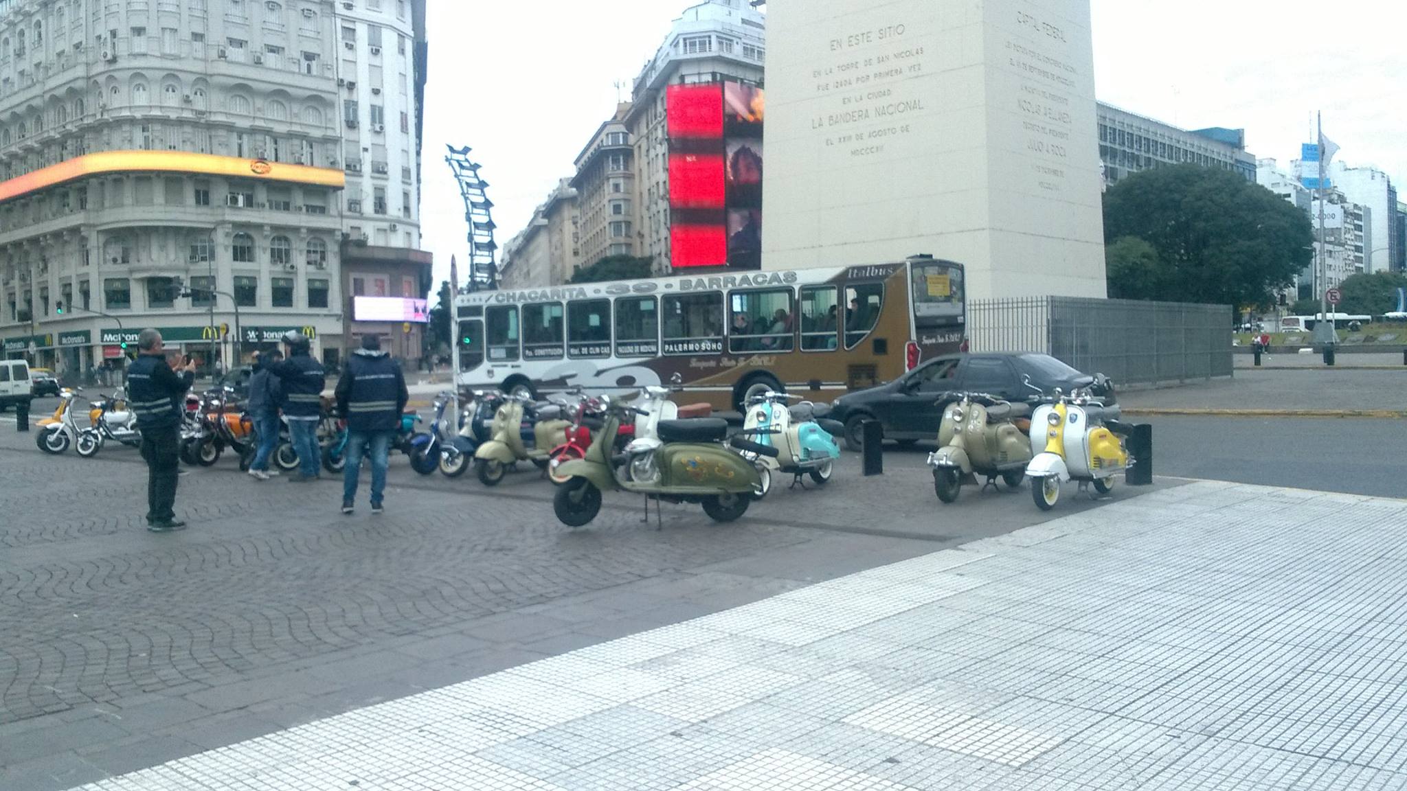 La salida anterior a Parque Lezama y Caminito fue un éxito así que surgió la idea de volver al centro de Buenos Aires. 20 Siambrettas echando humo un domingo por la 9 de Julio, hasta entrar por la calle Piedras y Av. de Mayo.