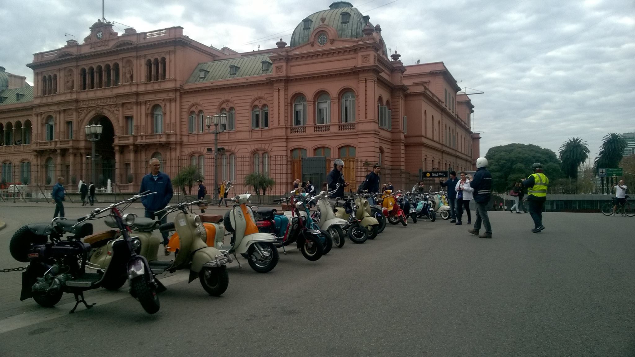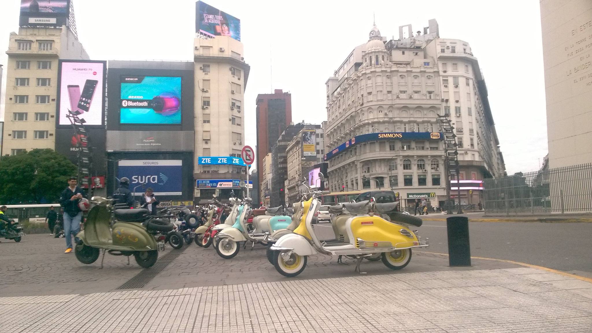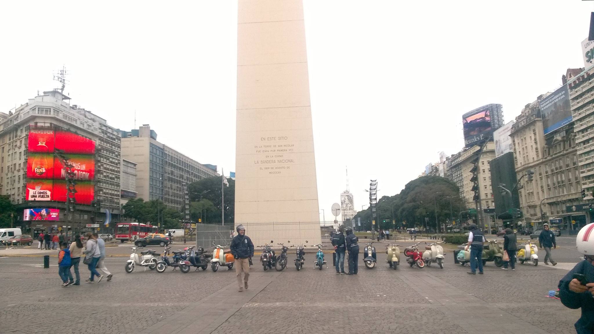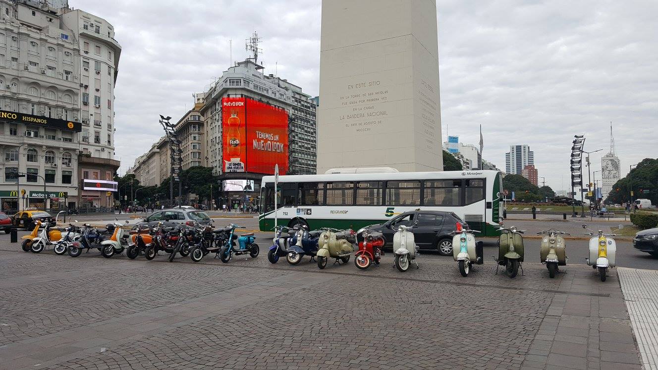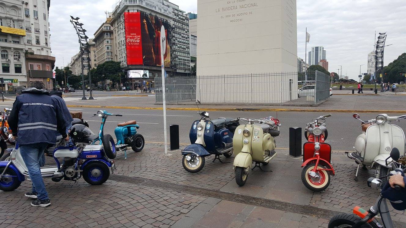 La salida anterior a Parque Lezama y Caminito fue un éxito así que surgió la idea de volver al centro de Buenos Aires. 20 Siambrettas echando humo un domingo por la 9 de Julio, hasta entrar por la calle Piedras y Av. de Mayo.