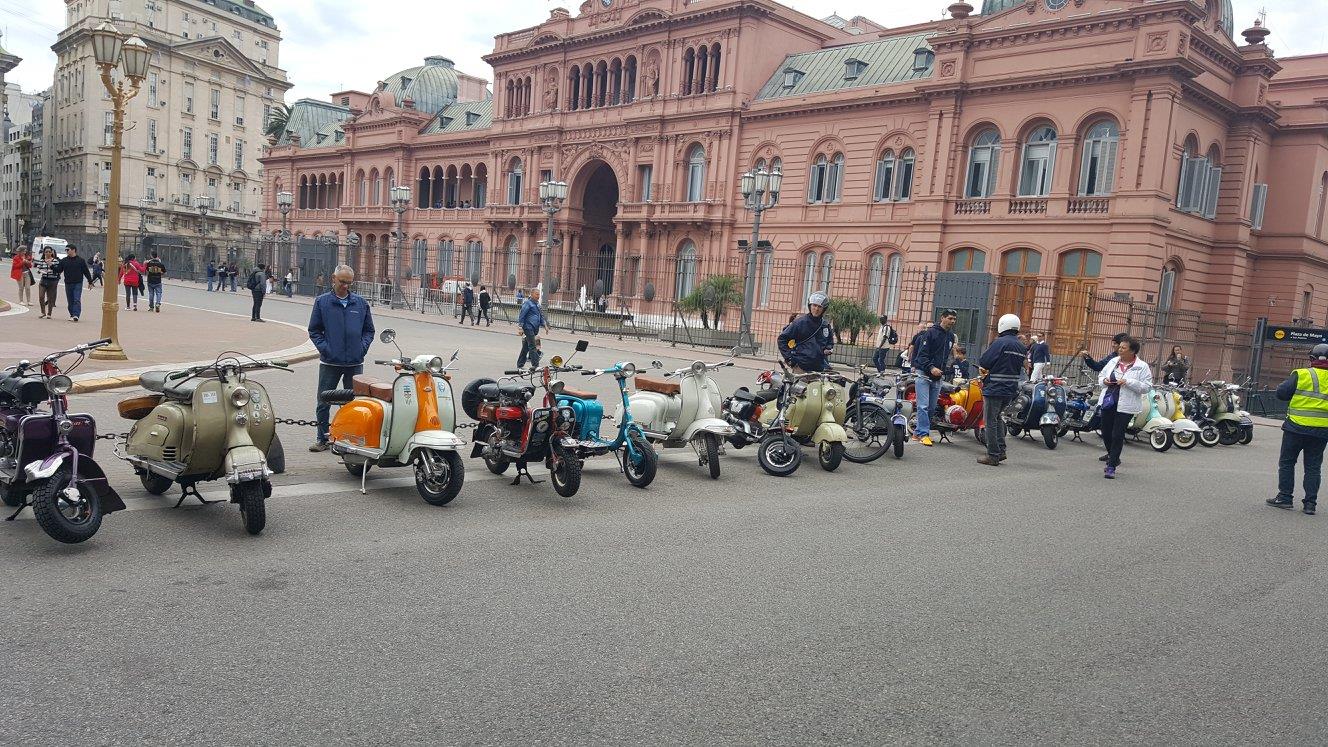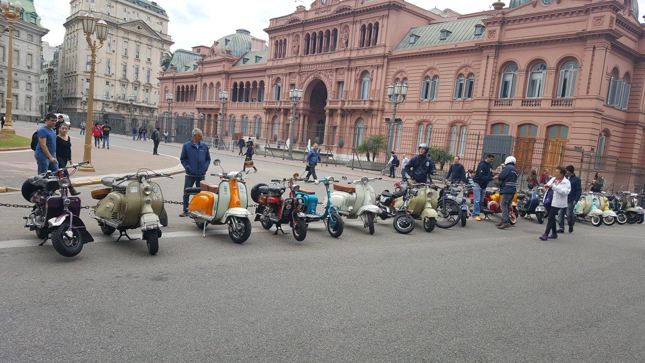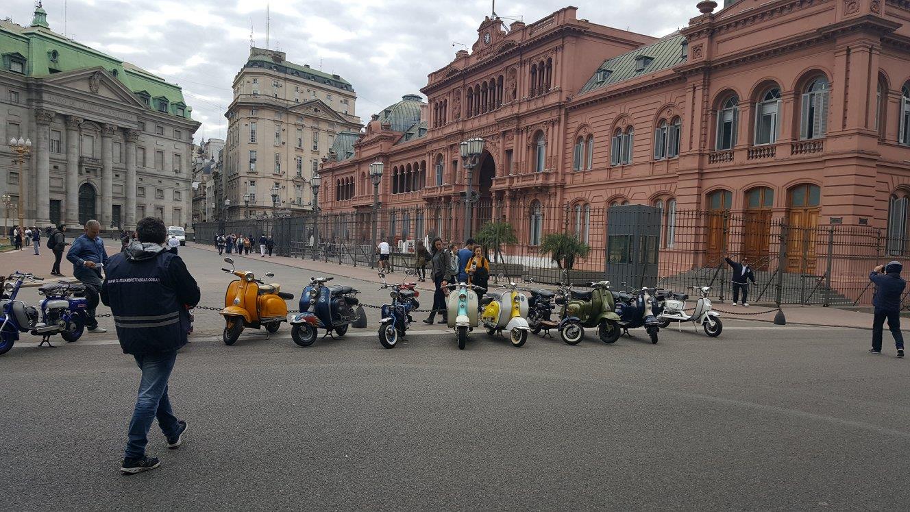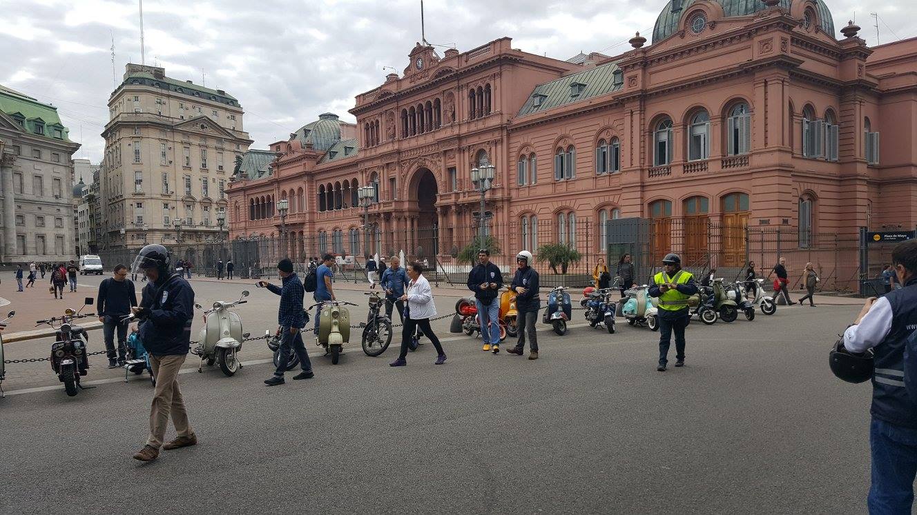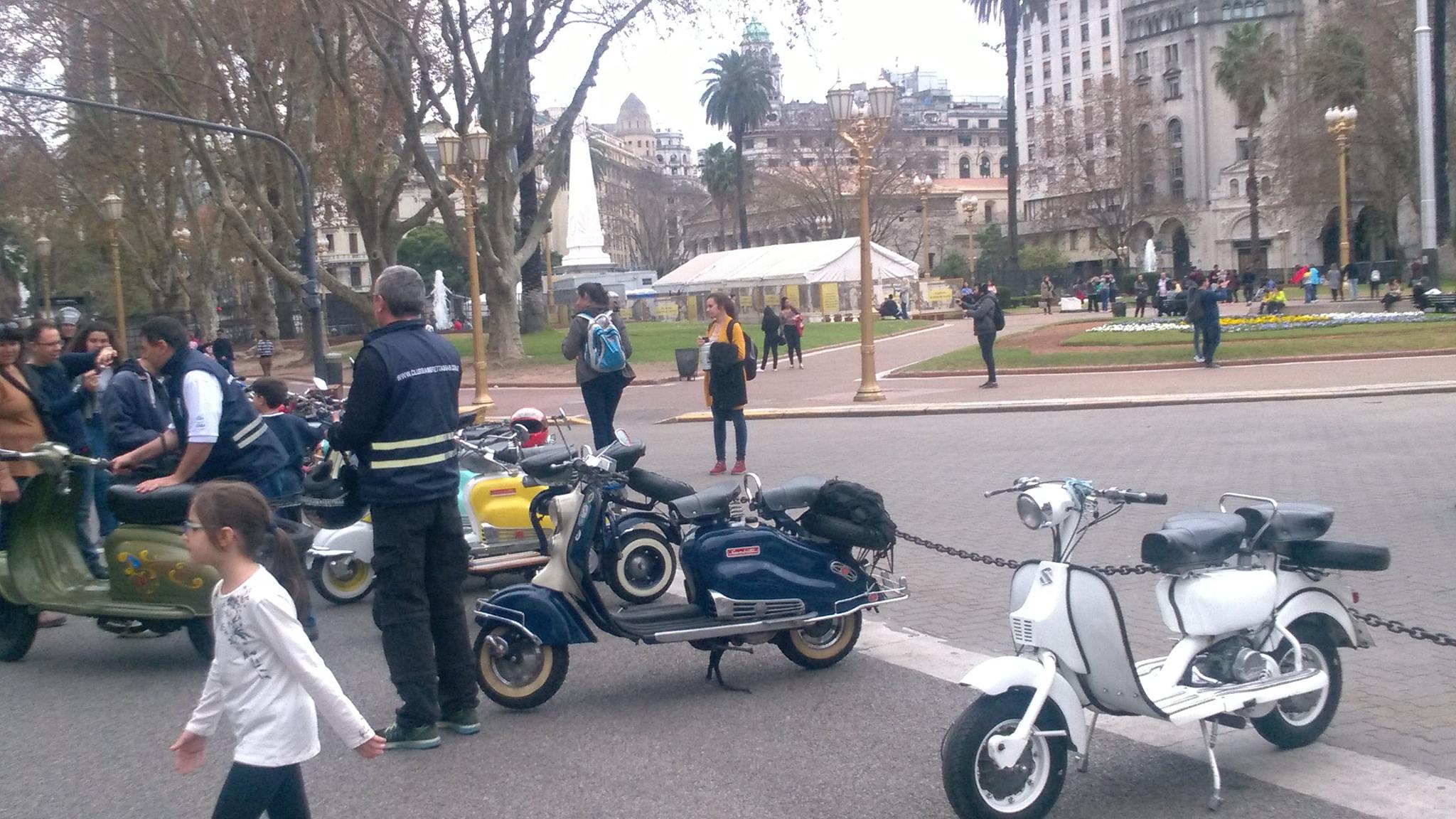 La salida anterior a Parque Lezama y Caminito fue un éxito así que surgió la idea de volver al centro de Buenos Aires. 20 Siambrettas echando humo un domingo por la 9 de Julio, hasta entrar por la calle Piedras y Av. de Mayo.