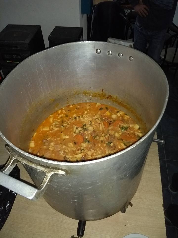 Excelente noche la pasada del viernes 18 de Agosto en la sede del CSBA. Guiso de mondongo riquísimo cocinado por Edgardo «Chivo» Nuñez. Varios platos bien abundantes por comensal obligaron al «aplauso» para el cocinero. Realmente salió buenísmo.