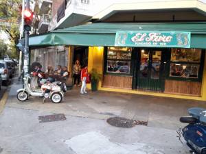 Así que coronamos la tarde con una abundante picada de fiambres y unas «verdes» heladas. En el bar, los sábados a la tarde hay tango, así que siempre nos arman la mesa en la vereda para nosotros.
