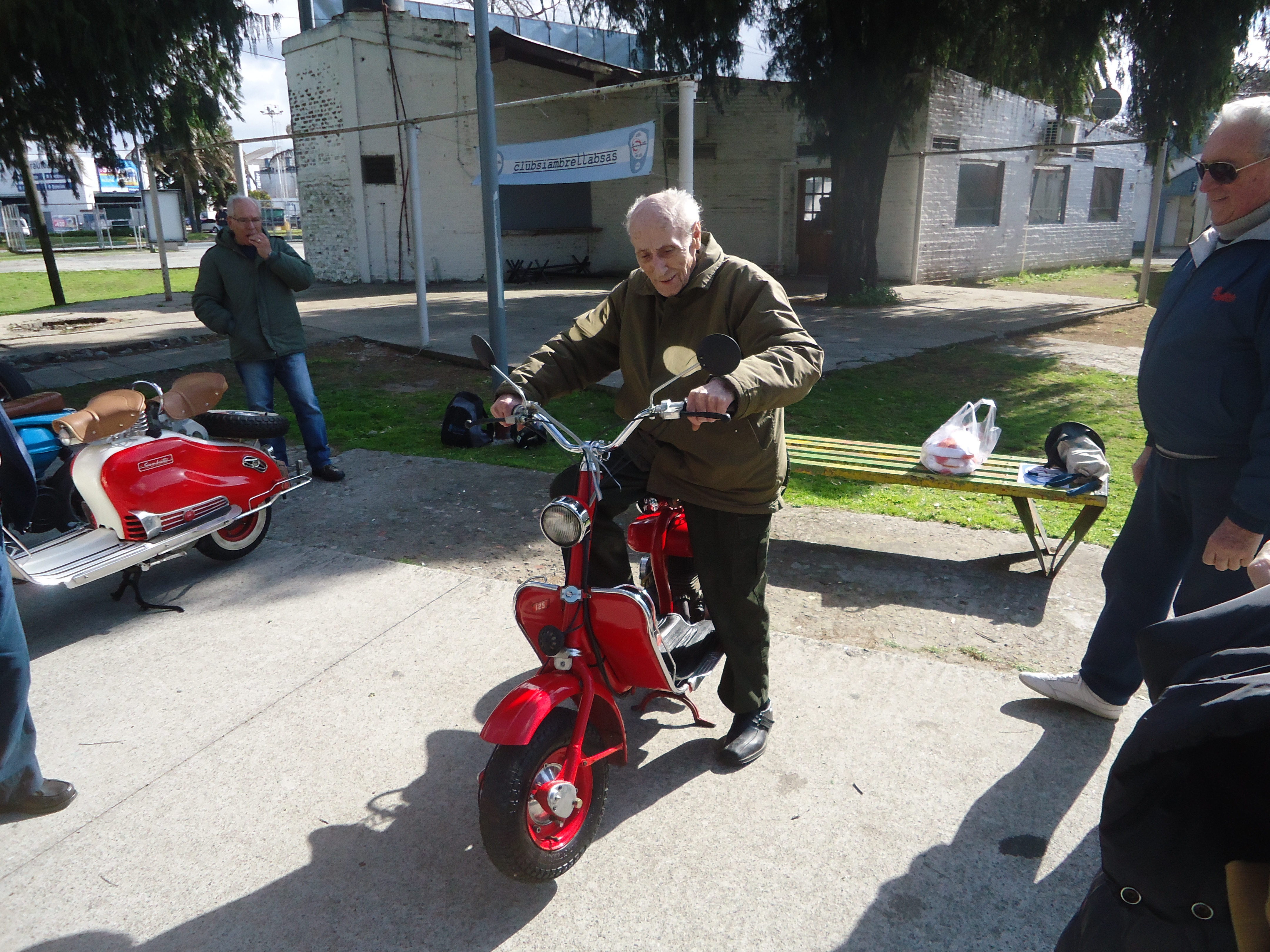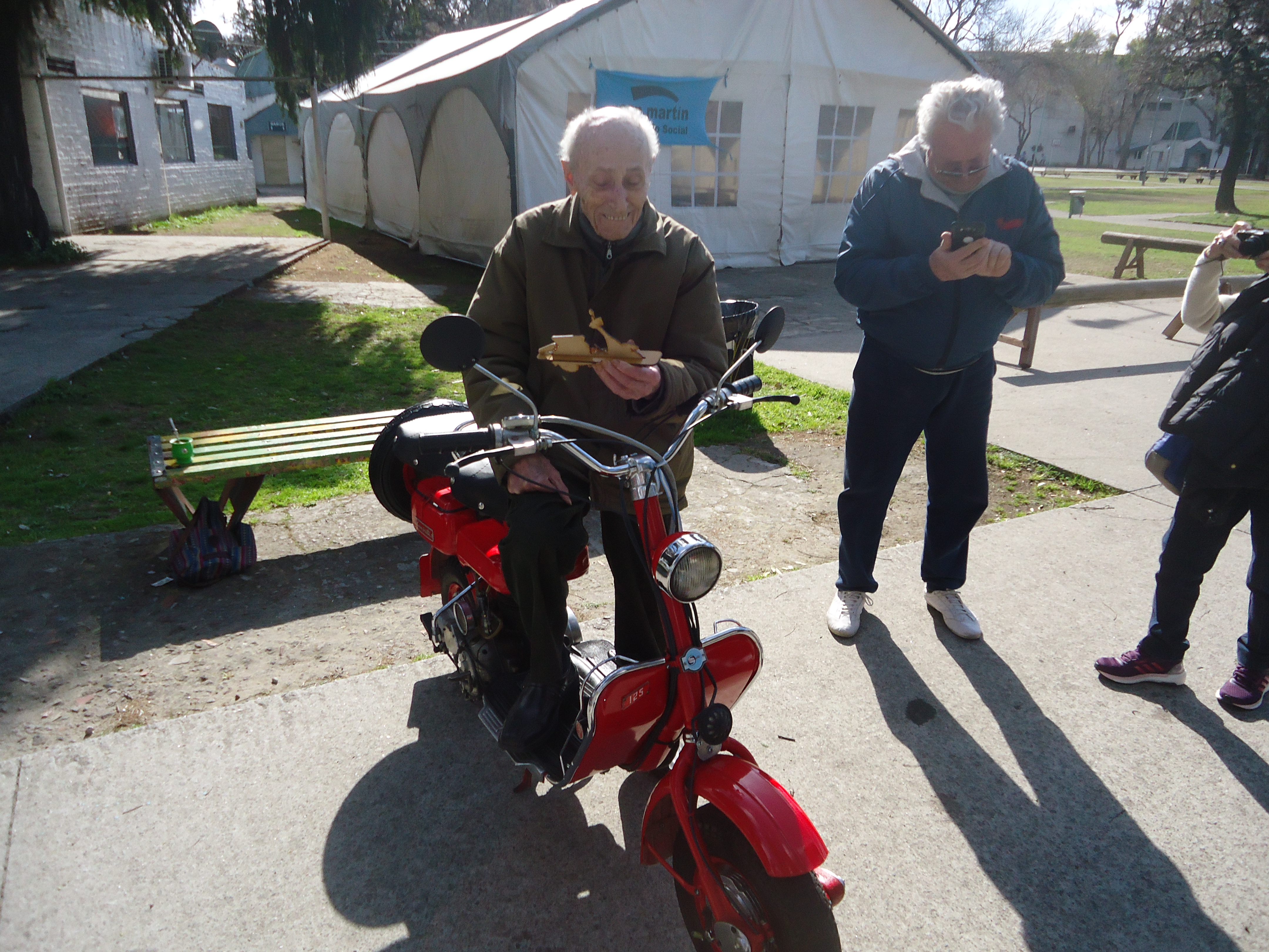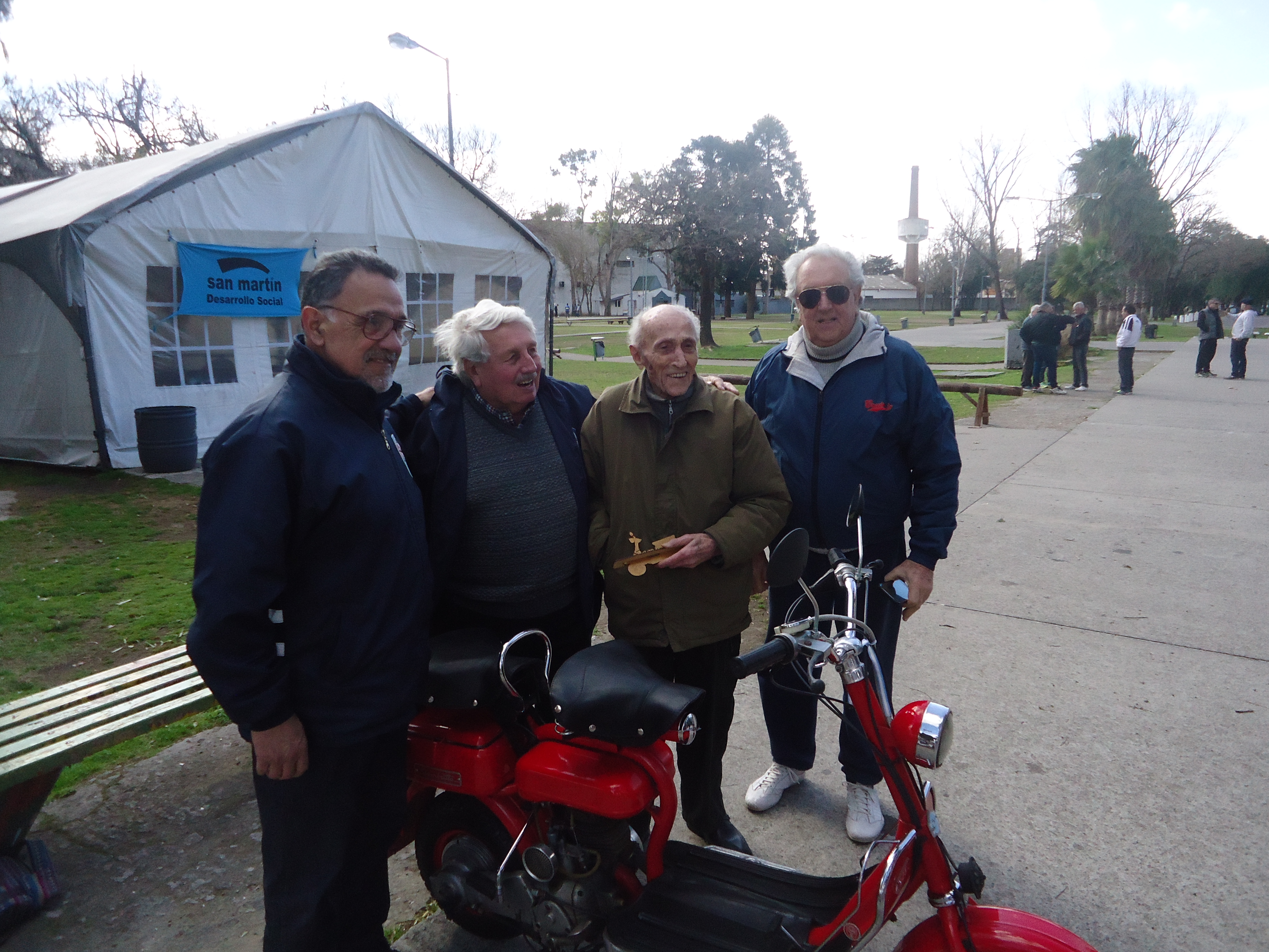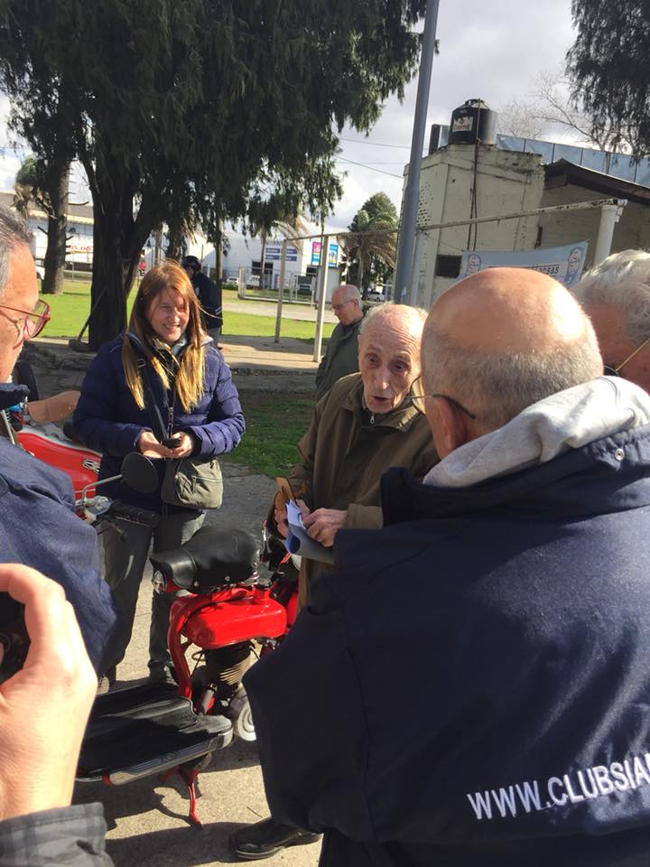 Un verdadero gusto compartir las charlas, impresionaba como recordaba todavía detalles del viaje, del ascenso al Cristo y la llegada al límite con Chile. Relataba el viaje como si lo hubiese hecho la semana pasada. Directo fue a subirse a la Siambretta 125 Std. de Enrique, para sacarse la foto. Estuvo un rato charlando con nosotros e hicimos con él la foto grupal con los integrantes del club. Más que merecido homenaje.