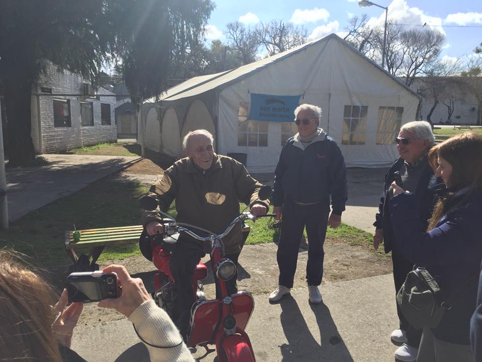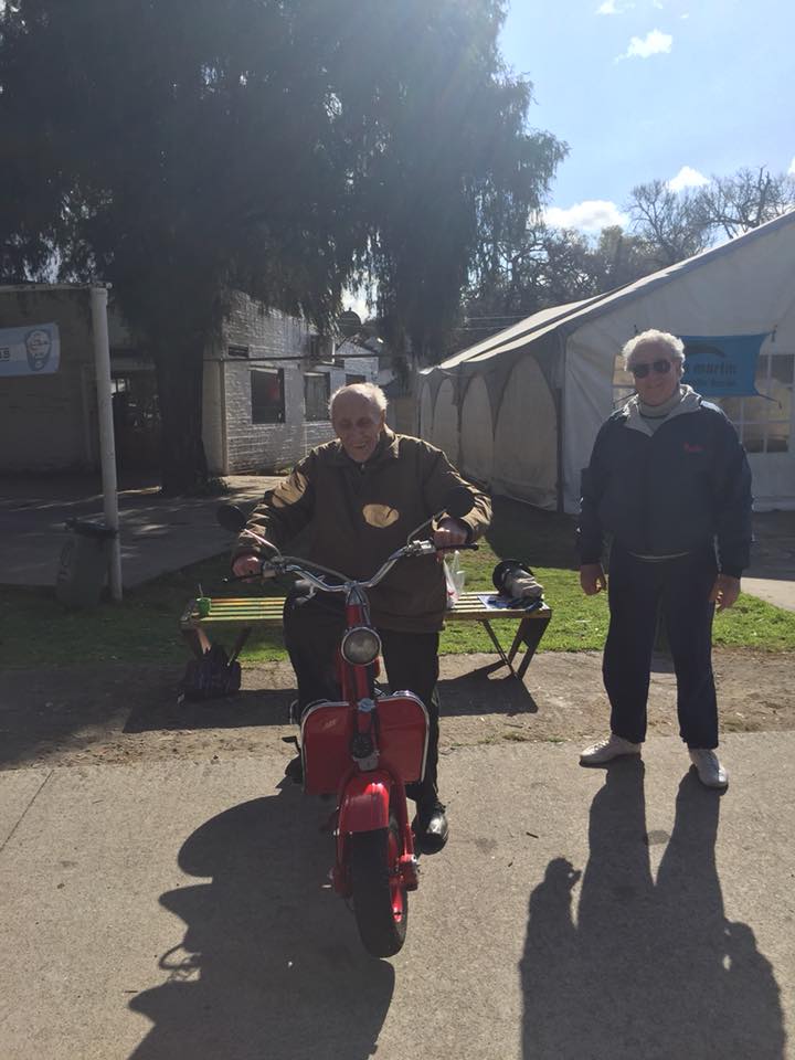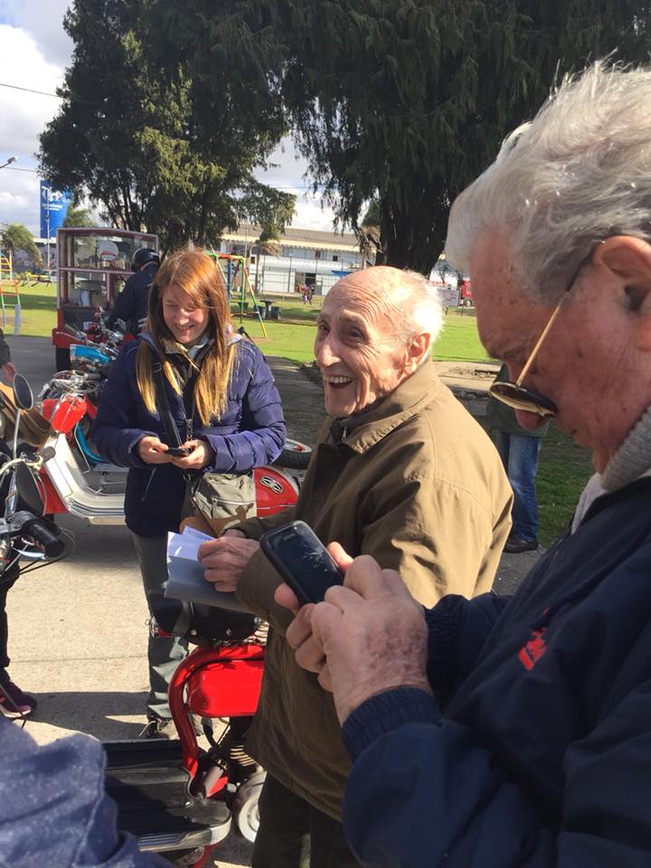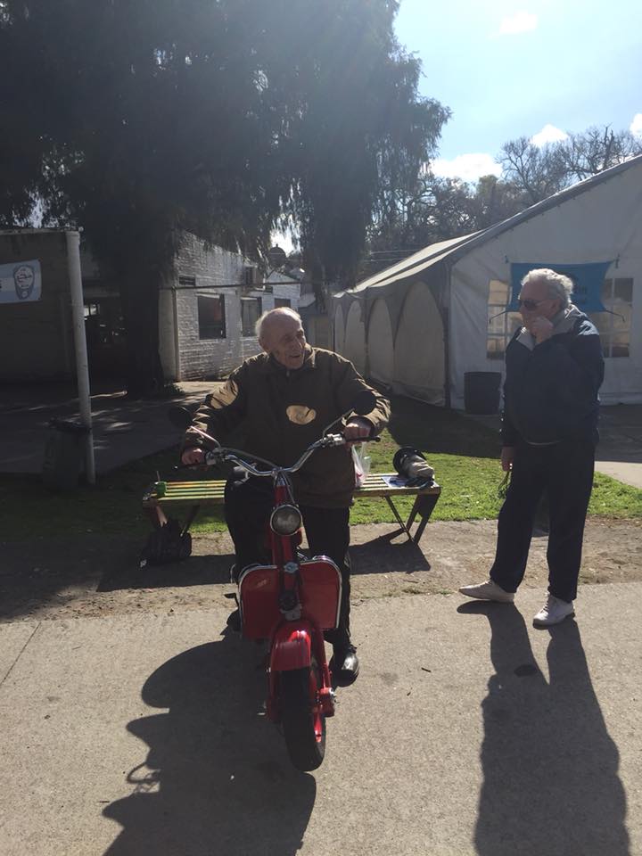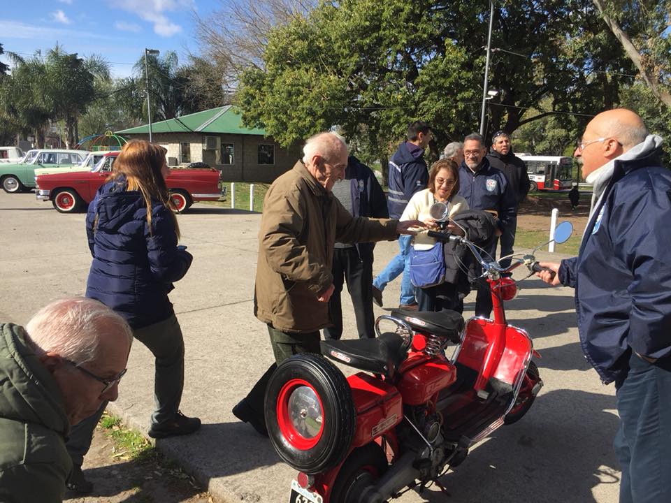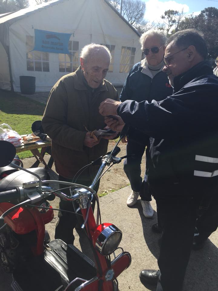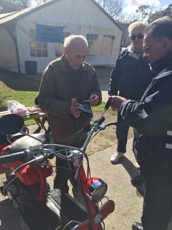 Un verdadero gusto compartir las charlas, impresionaba como recordaba todavía detalles del viaje, del ascenso al Cristo y la llegada al límite con Chile. Relataba el viaje como si lo hubiese hecho la semana pasada. Directo fue a subirse a la Siambretta 125 Std. de Enrique, para sacarse la foto. Estuvo un rato charlando con nosotros e hicimos con él la foto grupal con los integrantes del club. Más que merecido homenaje.