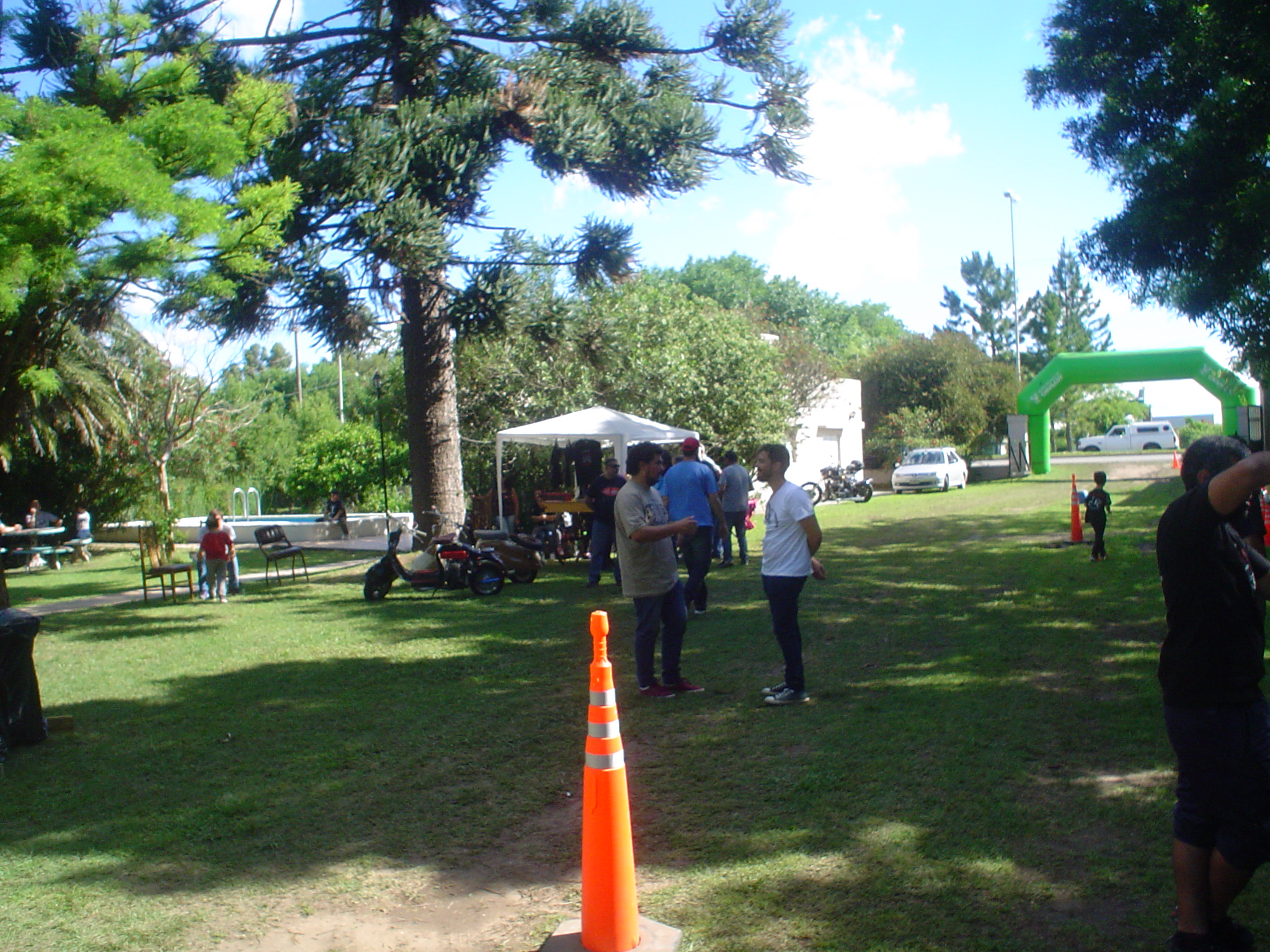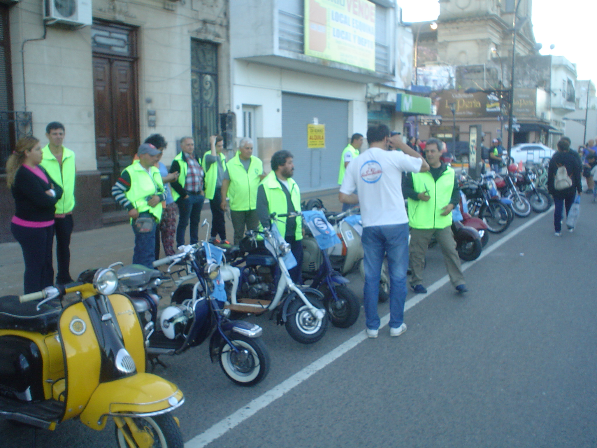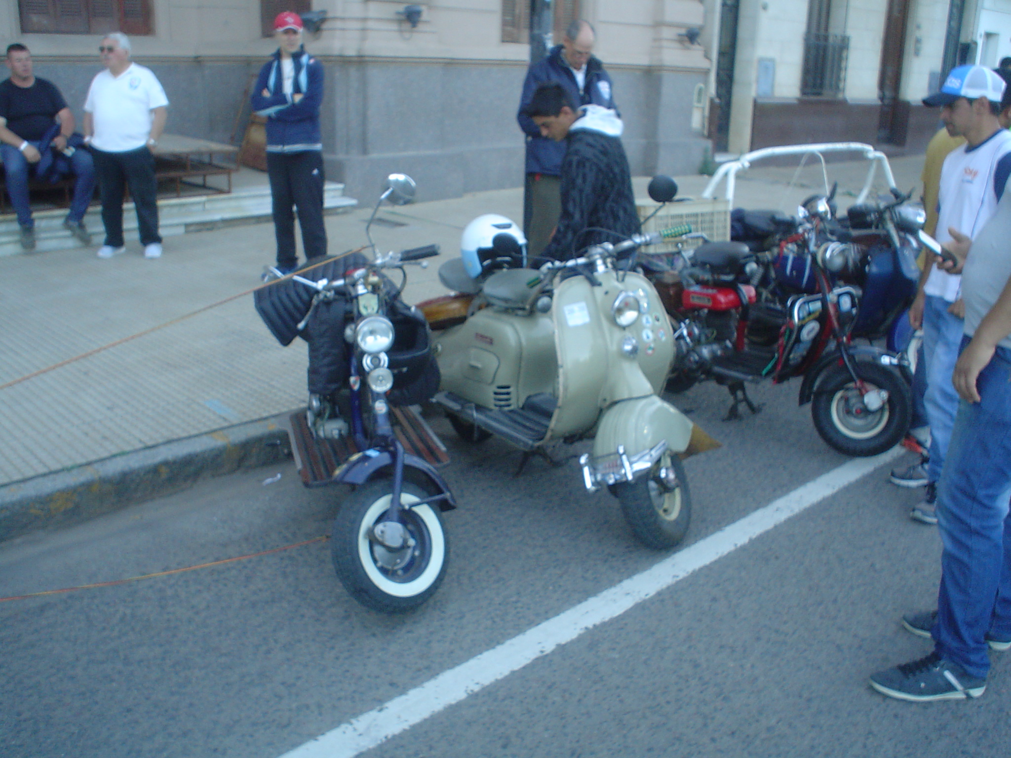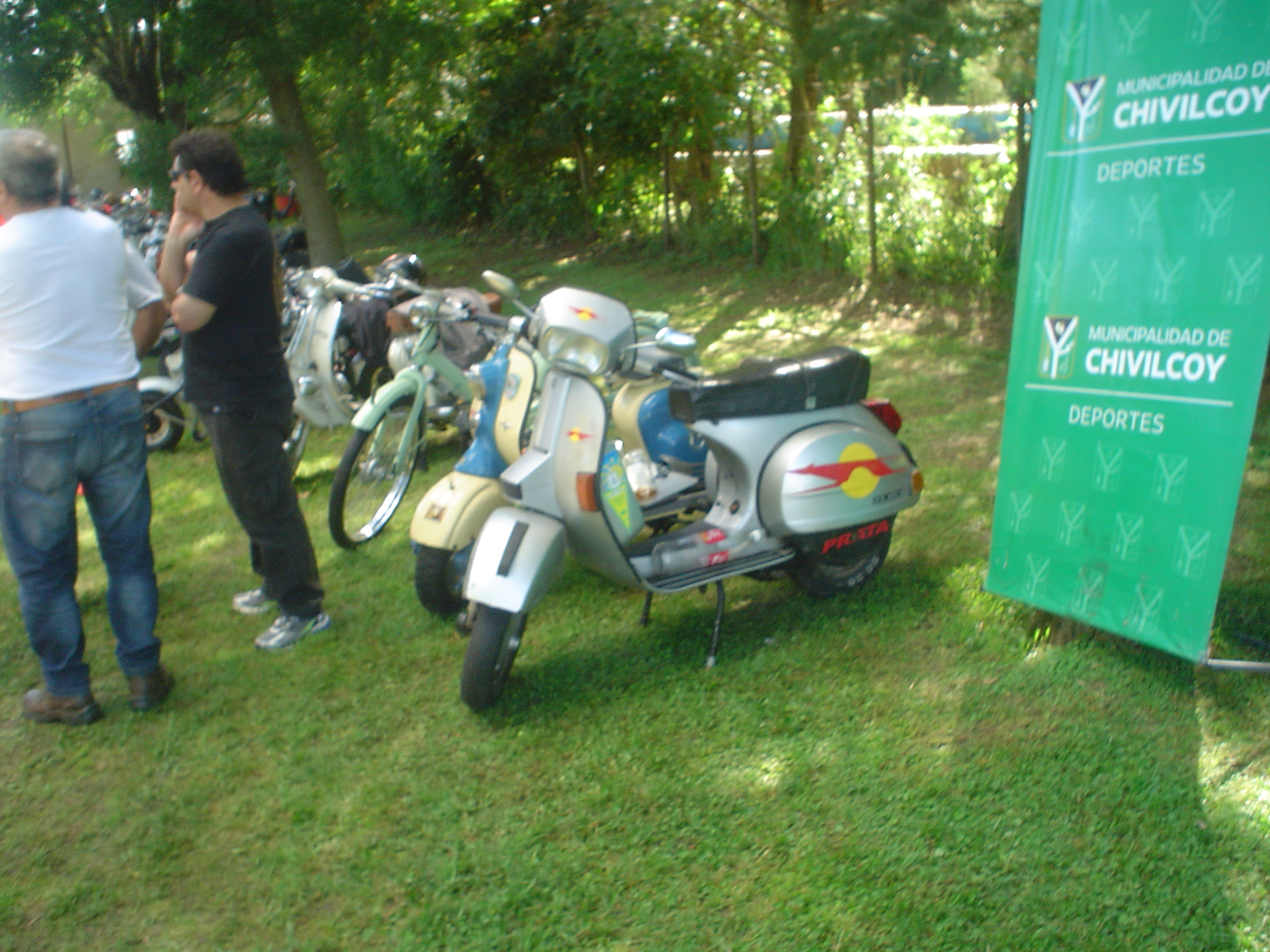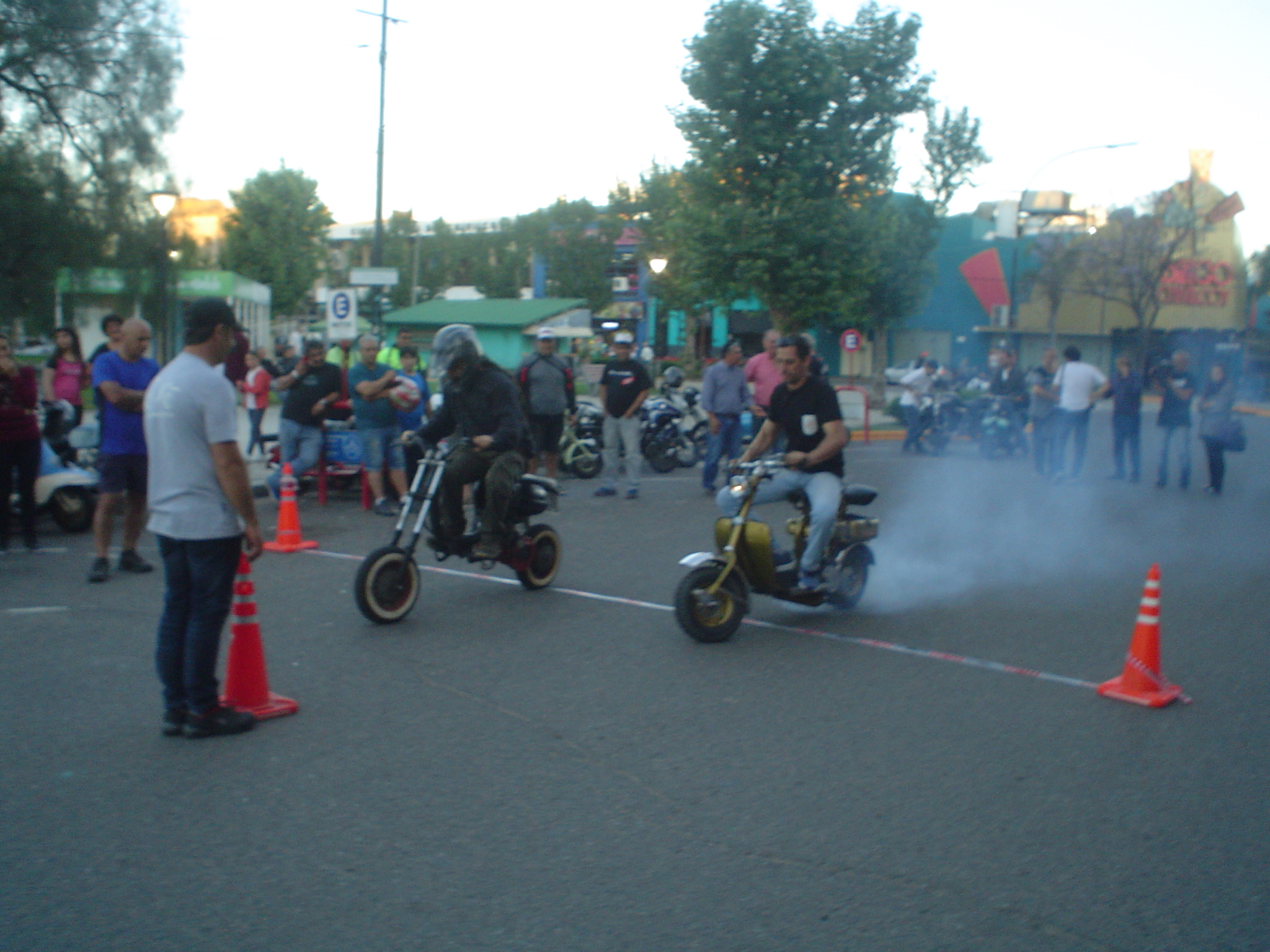 Almorzamos en la cantina muy bien atendida por los muchachos del CSCH, teníamos un rato para acomodarnos, armar las carpas y sacar fotos. A las 18 partíamos en caravana al centro de la ciudad, donde frente a la plaza se hacía la exposición estática de las motonetas y las pruebas de destreza, también llamadas carreras lentas.