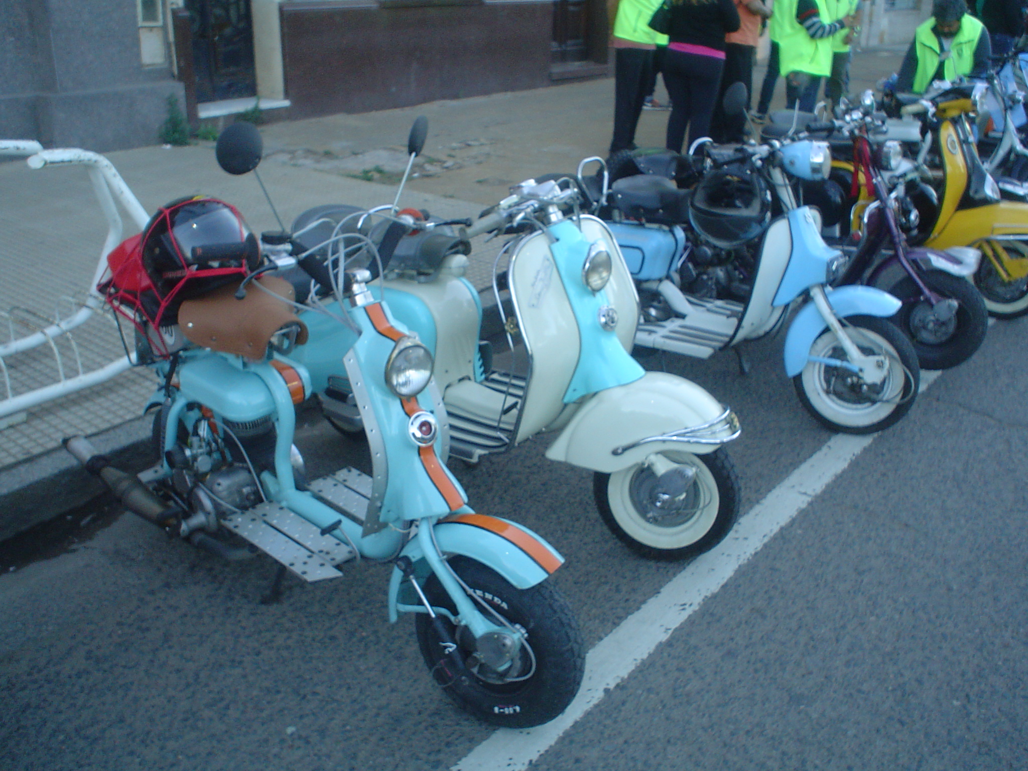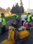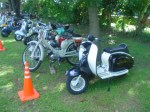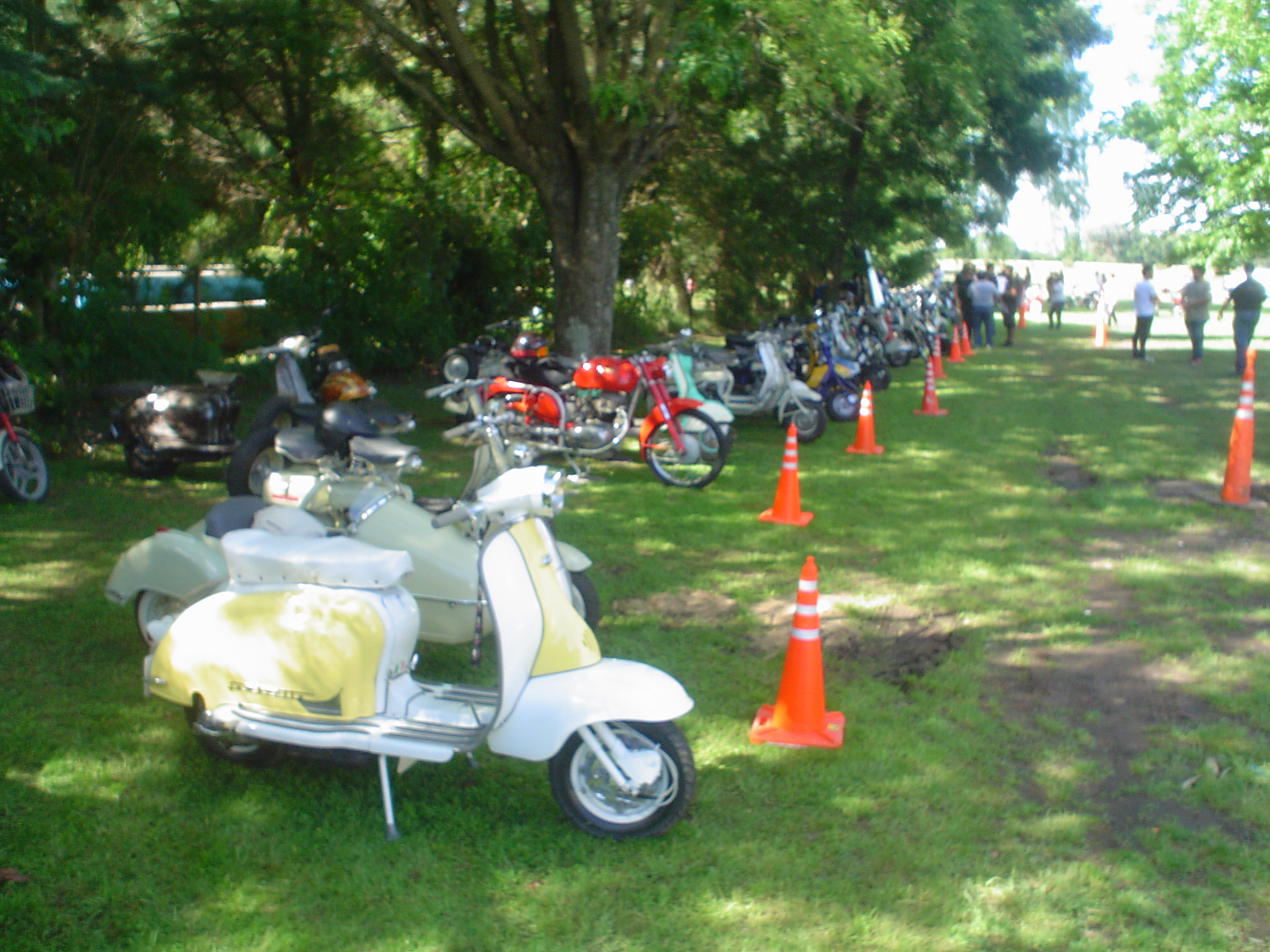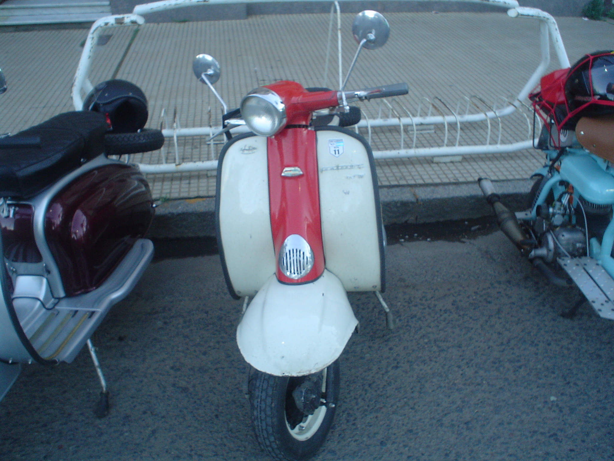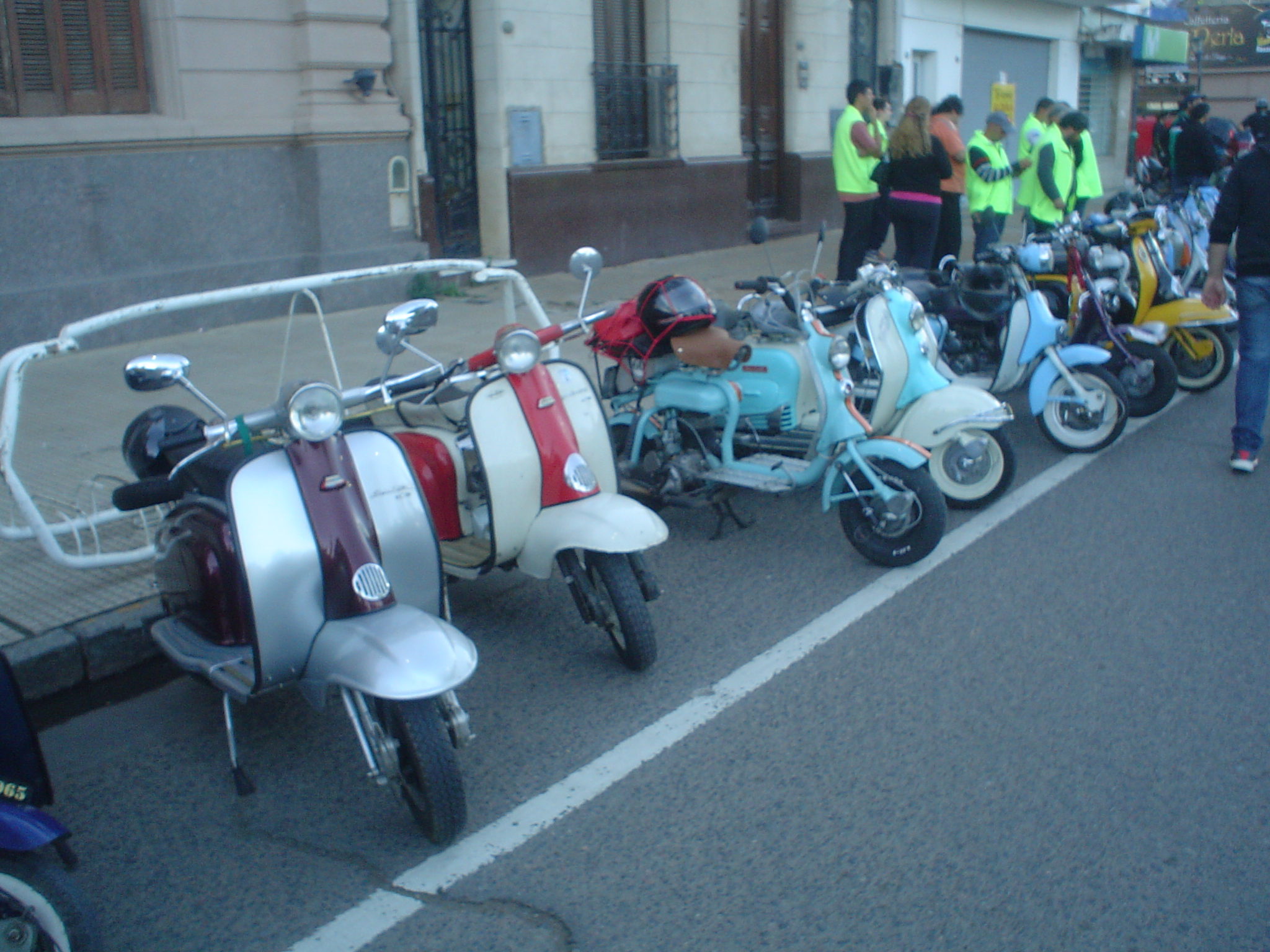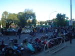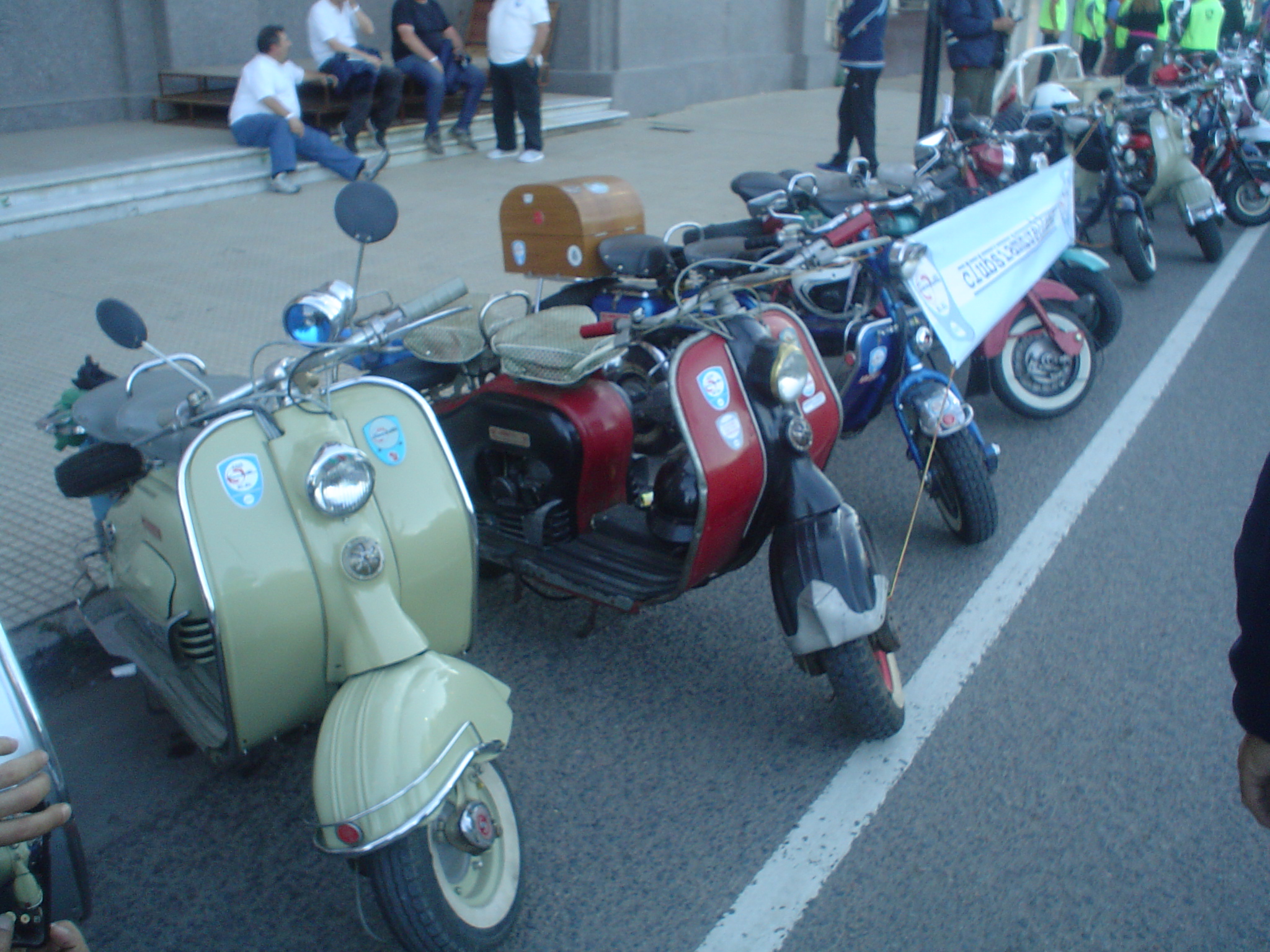 Almorzamos en la cantina muy bien atendida por los muchachos del CSCH, teníamos un rato para acomodarnos, armar las carpas y sacar fotos. A las 18 partíamos en caravana al centro de la ciudad, donde frente a la plaza se hacía la exposición estática de las motonetas y las pruebas de destreza, también llamadas carreras lentas.