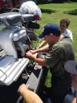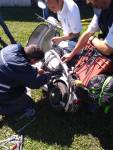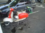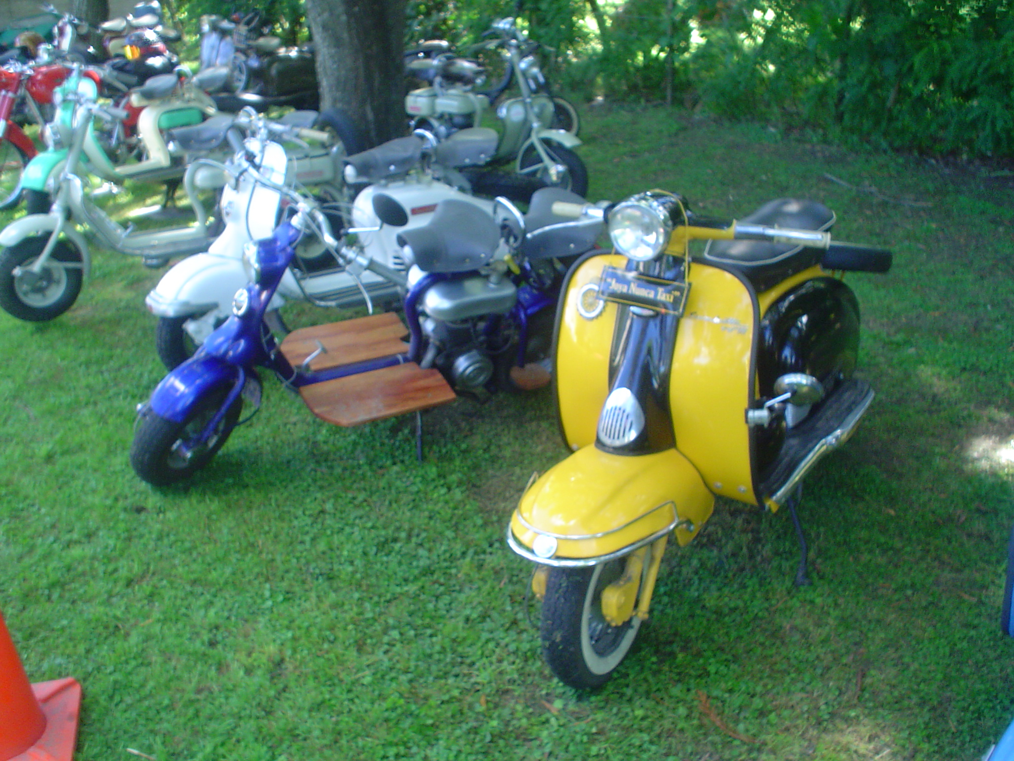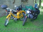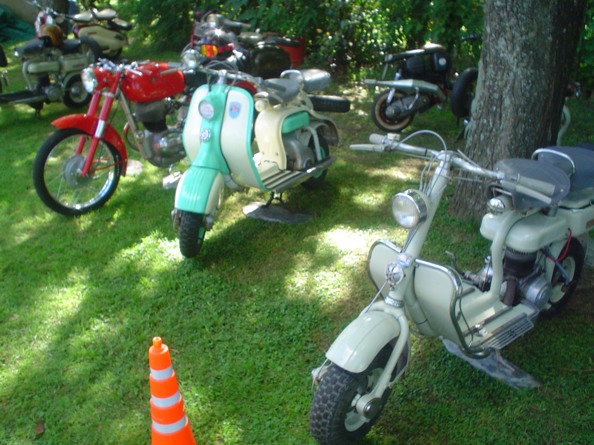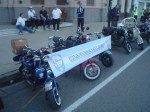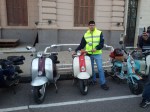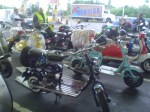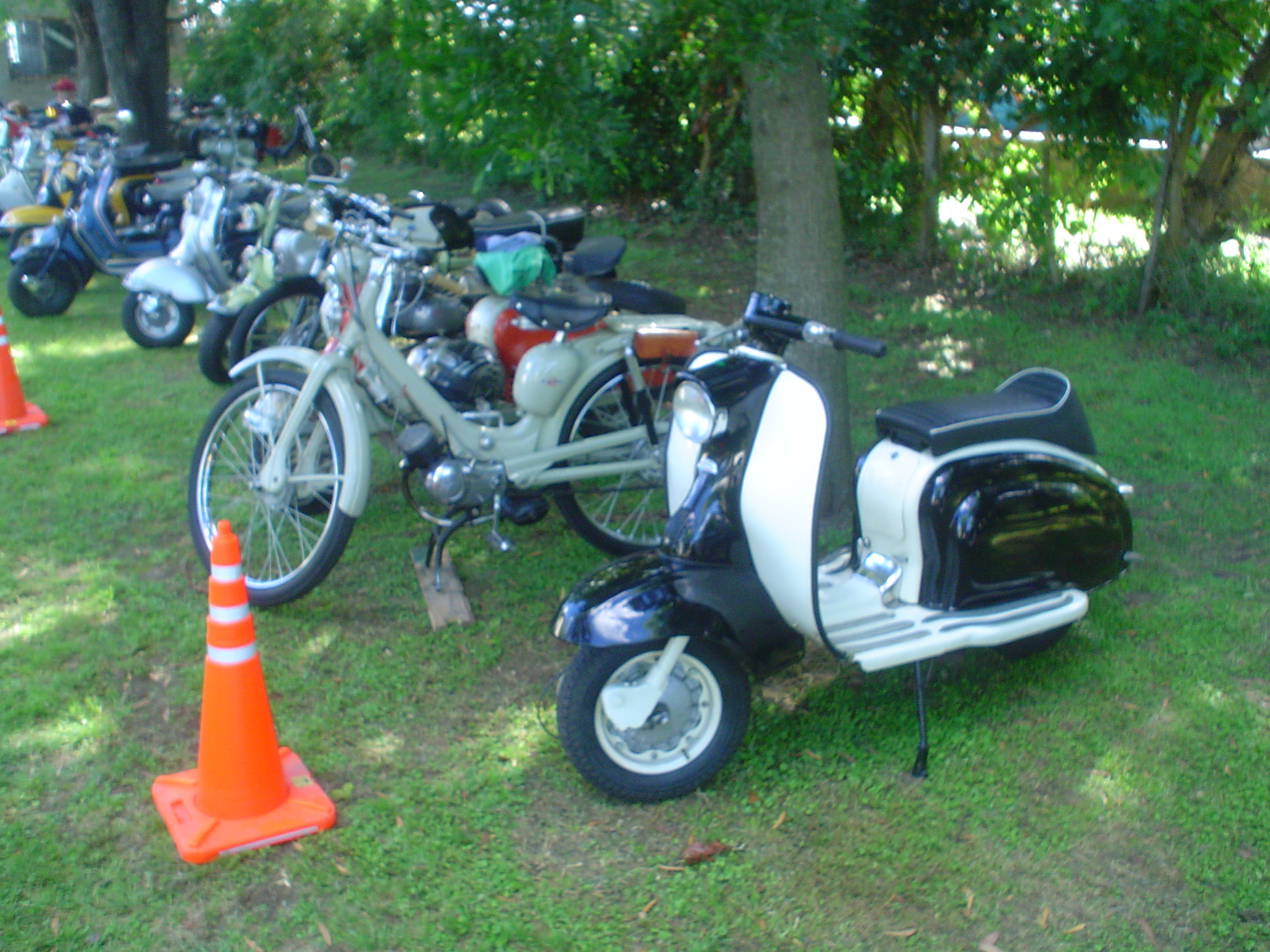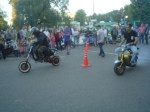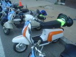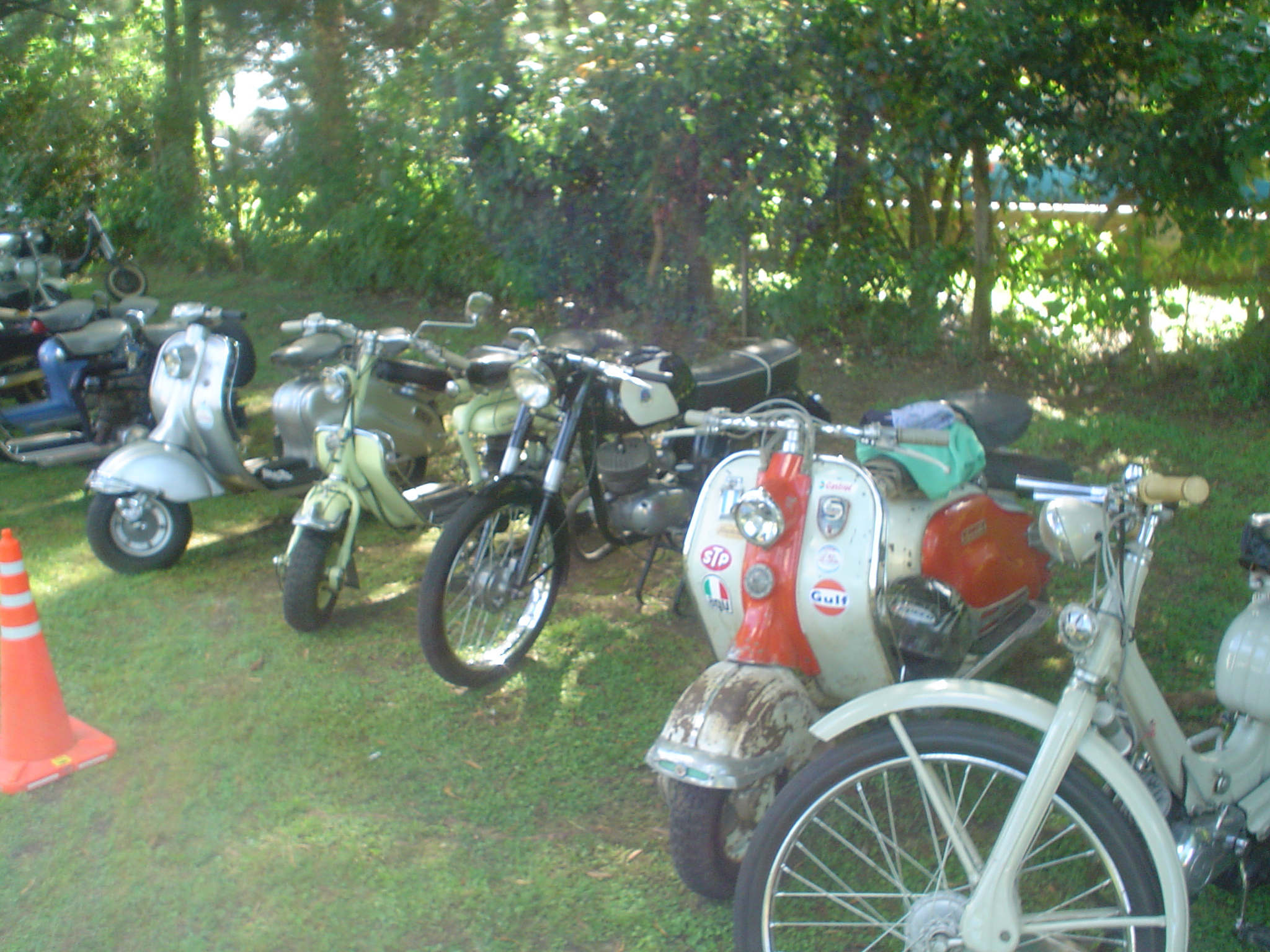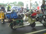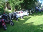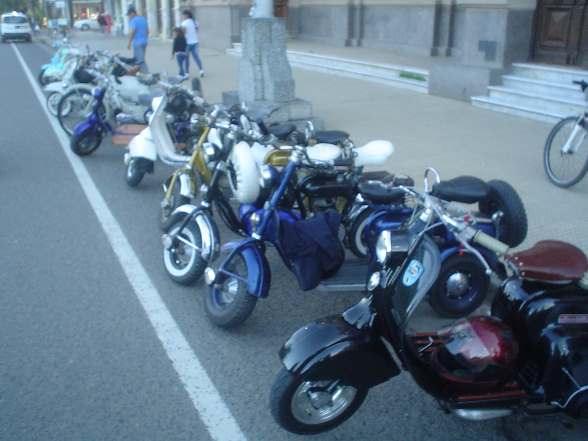 Almorzamos en la cantina muy bien atendida por los muchachos del CSCH, teníamos un rato para acomodarnos, armar las carpas y sacar fotos. A las 18 partíamos en caravana al centro de la ciudad, donde frente a la plaza se hacía la exposición estática de las motonetas y las pruebas de destreza, también llamadas carreras lentas.