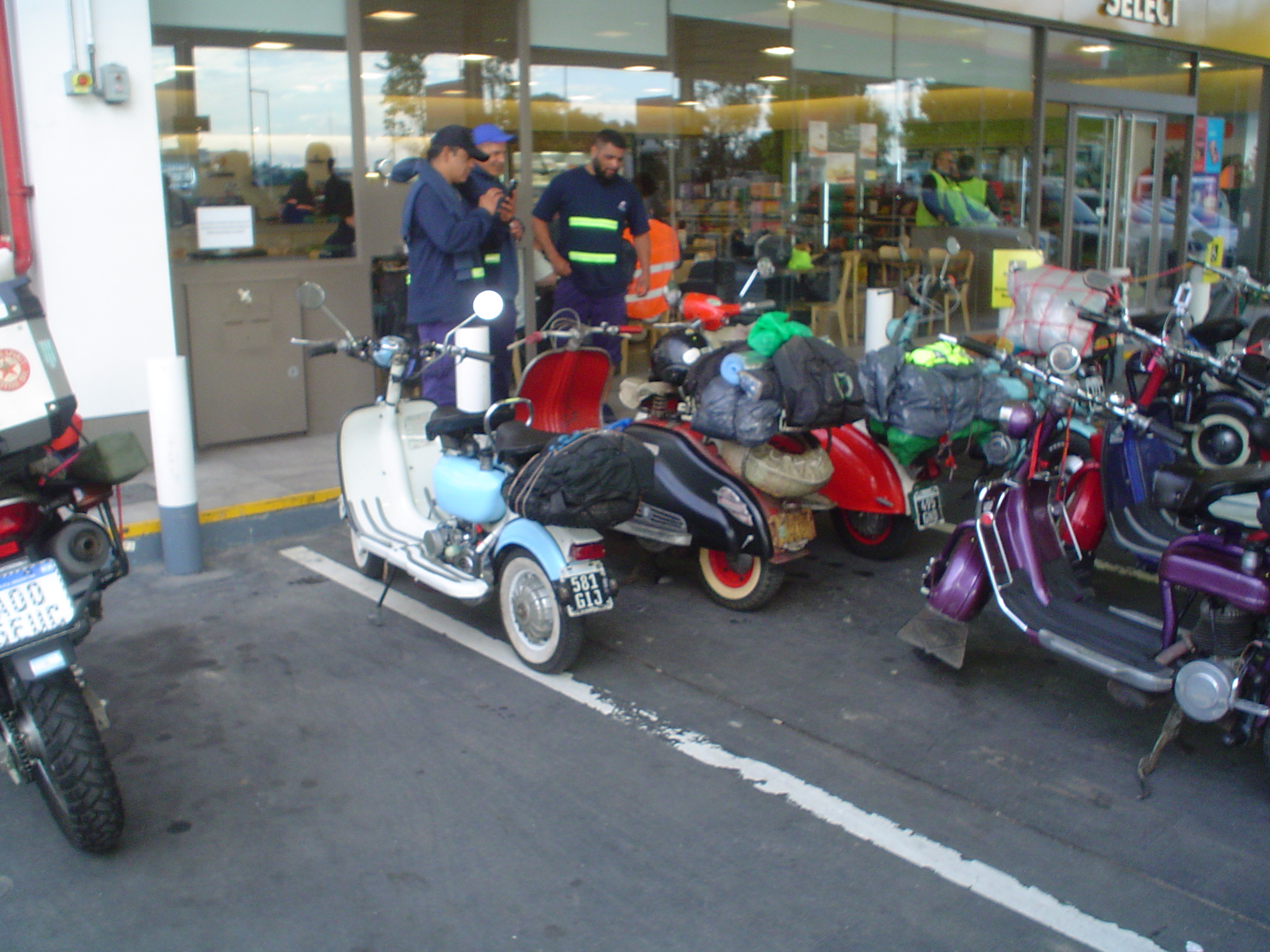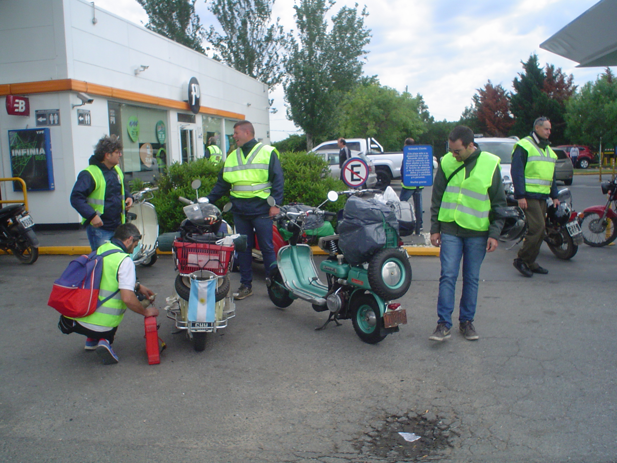 Tal lo planificado 7:30 del sábado 17 partimos de la Shell de Ciudadela 18 Siambrettas rumbo al oeste, en el peaje de Ituzaingó, dos integrantes más se acoplaron al grupo. La primer parada, la YPF de Gral. Rodriguez.
