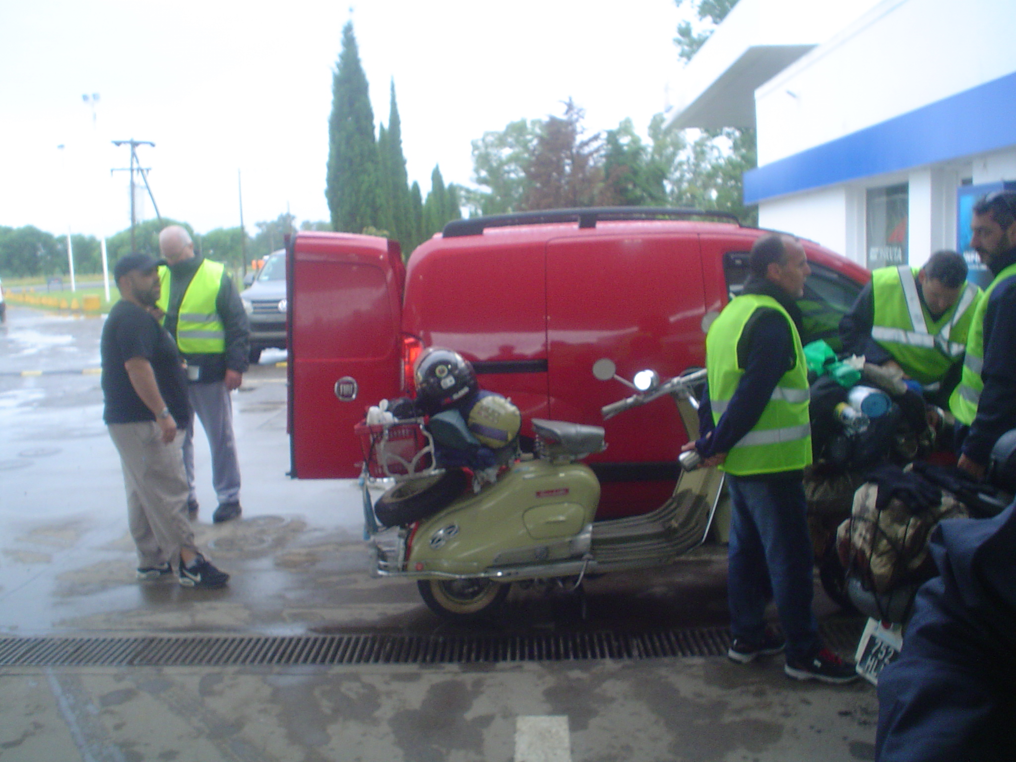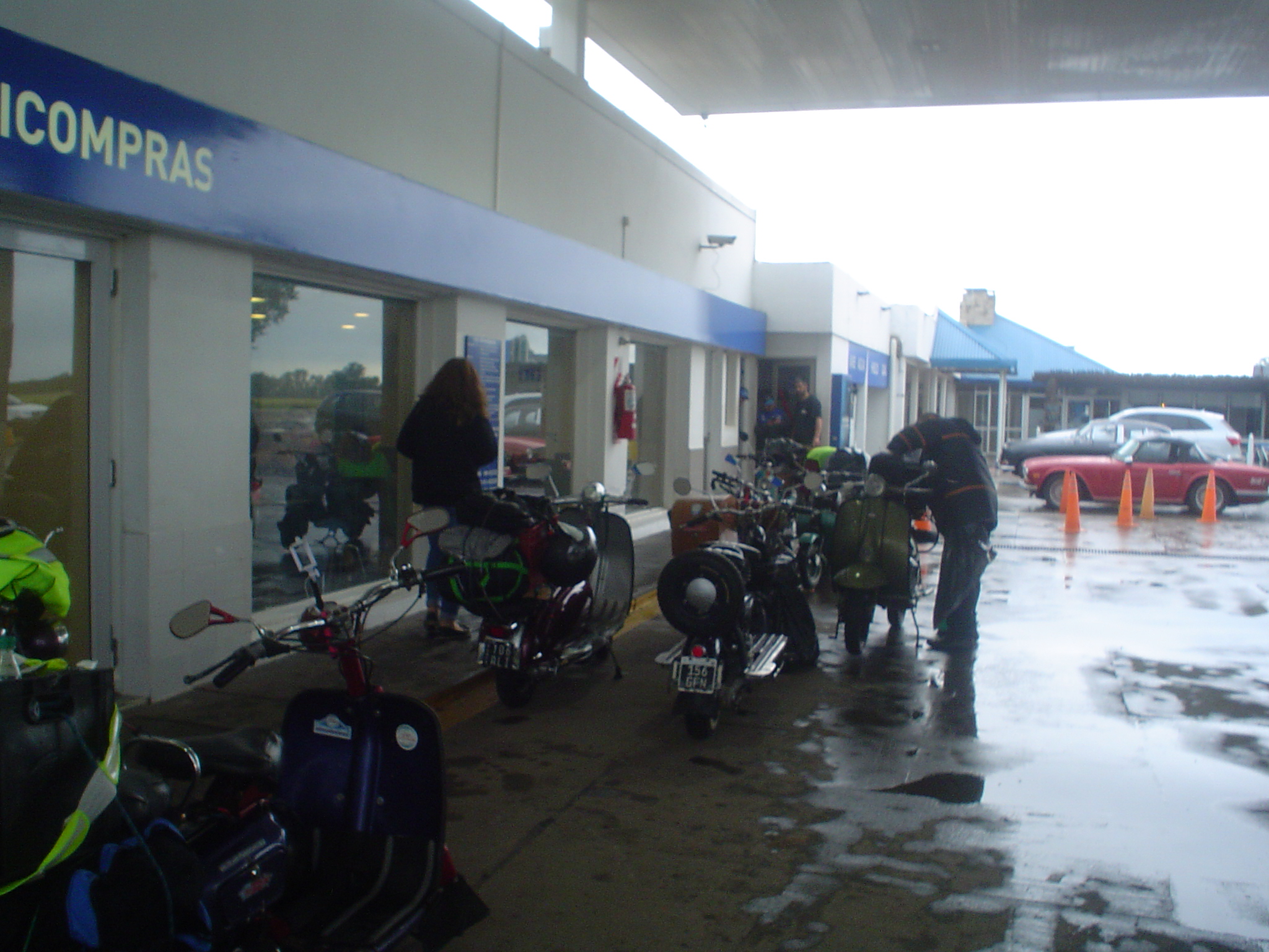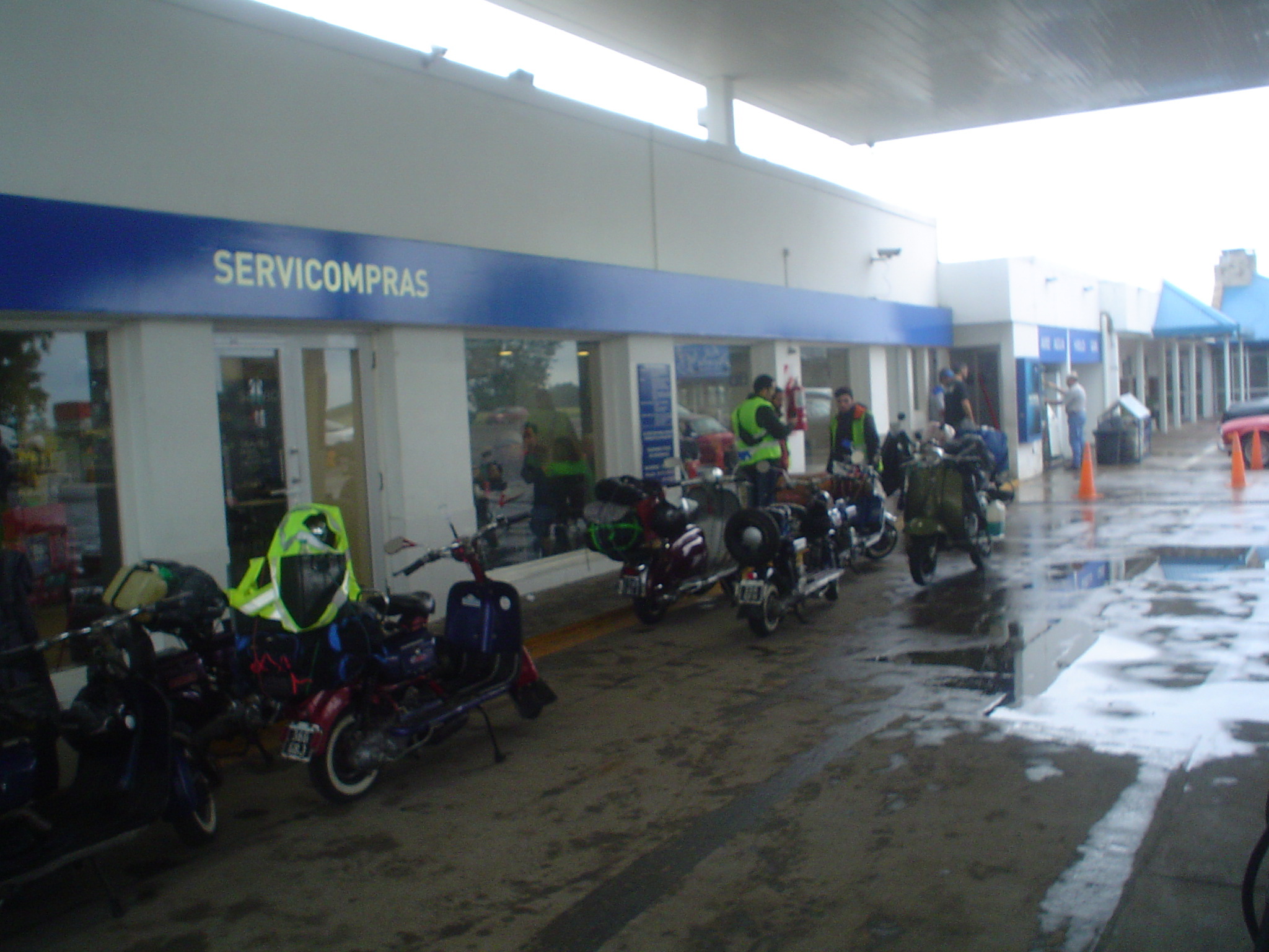 Luego de una parada muy cortita, tomamos la autopista Luján-Mercedes, muy ágil ahora con el empalme nuevo evitando el viejo puente angosto de Luján. Llegando a Olivera, un chaparrón fuerte hizo que nos empapáramos bastante y nuevamente arribando a Mercedes otra vez la lluvia, paramos en la YPF, esperando que cese la lluvia.