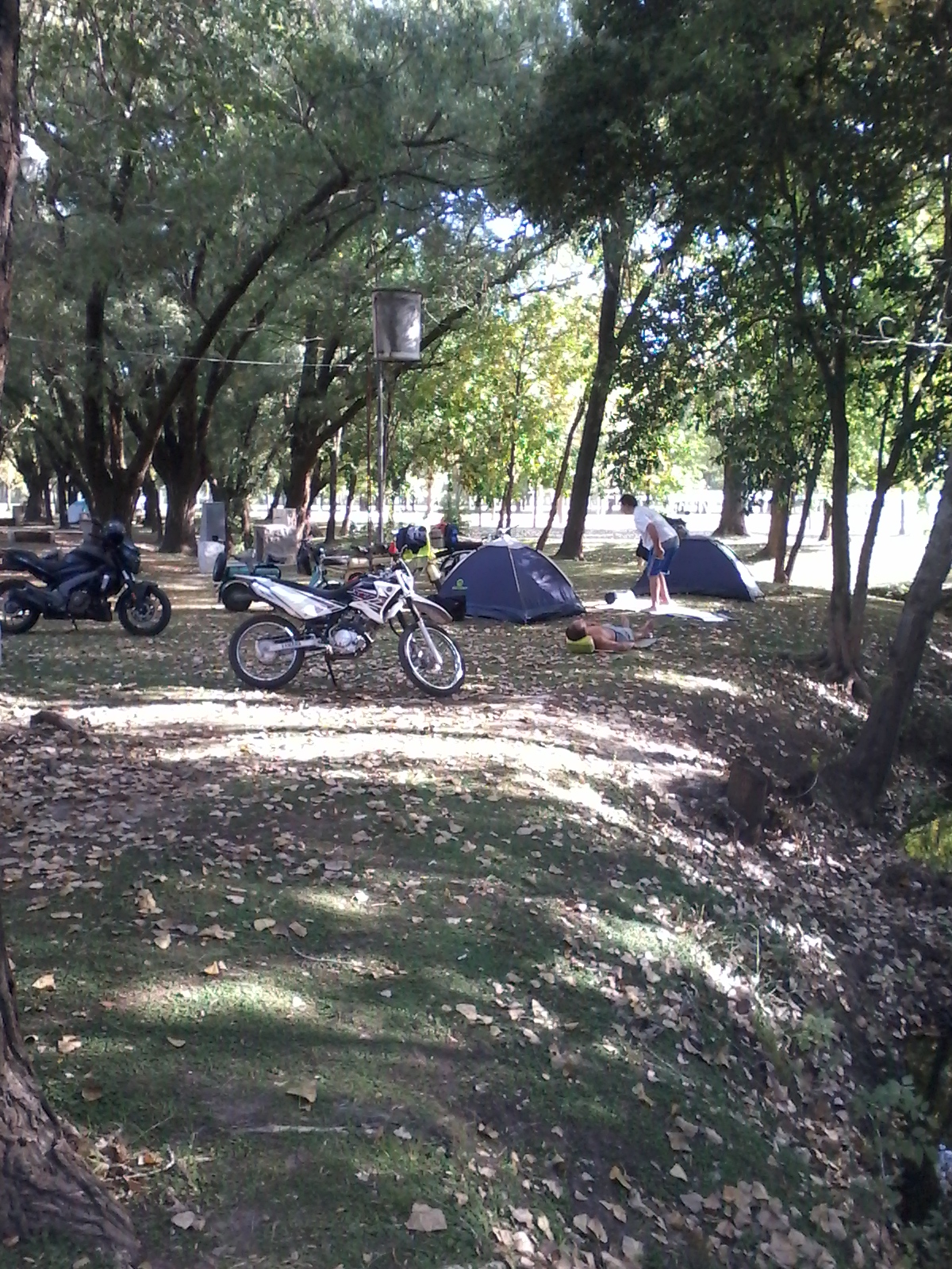 Luego continuamos viaje sin paradas, para destacar marcamos un nuevo record de 2 horas 20 minutos y por suerte sin ningún inconveniente llegamos Areco. Nos instalamos en el camping de River plate, con un día hermoso armamos el campamento y nos fuimos al pueblo a comprar unas hamburguesas y chorizos para el almuerzo.