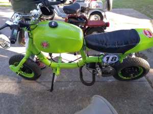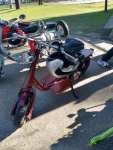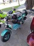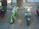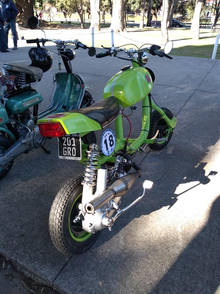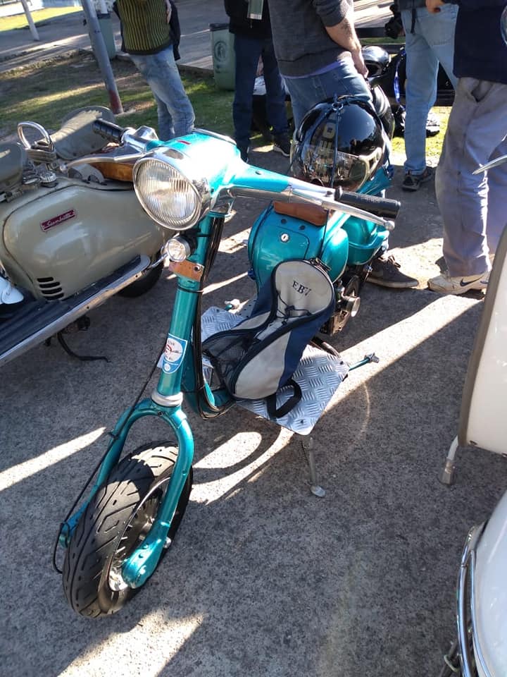 La nota del encuentro, esta vez, fue la presentación en sociedad del «Batrapecio» de Mariano Alba, una Siambretta 175 cc. «voladora» con un trabajo de restauración y personalización realmente impecable. Color verde «Kawasaki», tanque de Gilera y colín de Zanella, llamó mucho la atención de la concurrencia. Y para los que la vieron andar por circular por Gral. Paz, el comentario fue que «camina» bastante.