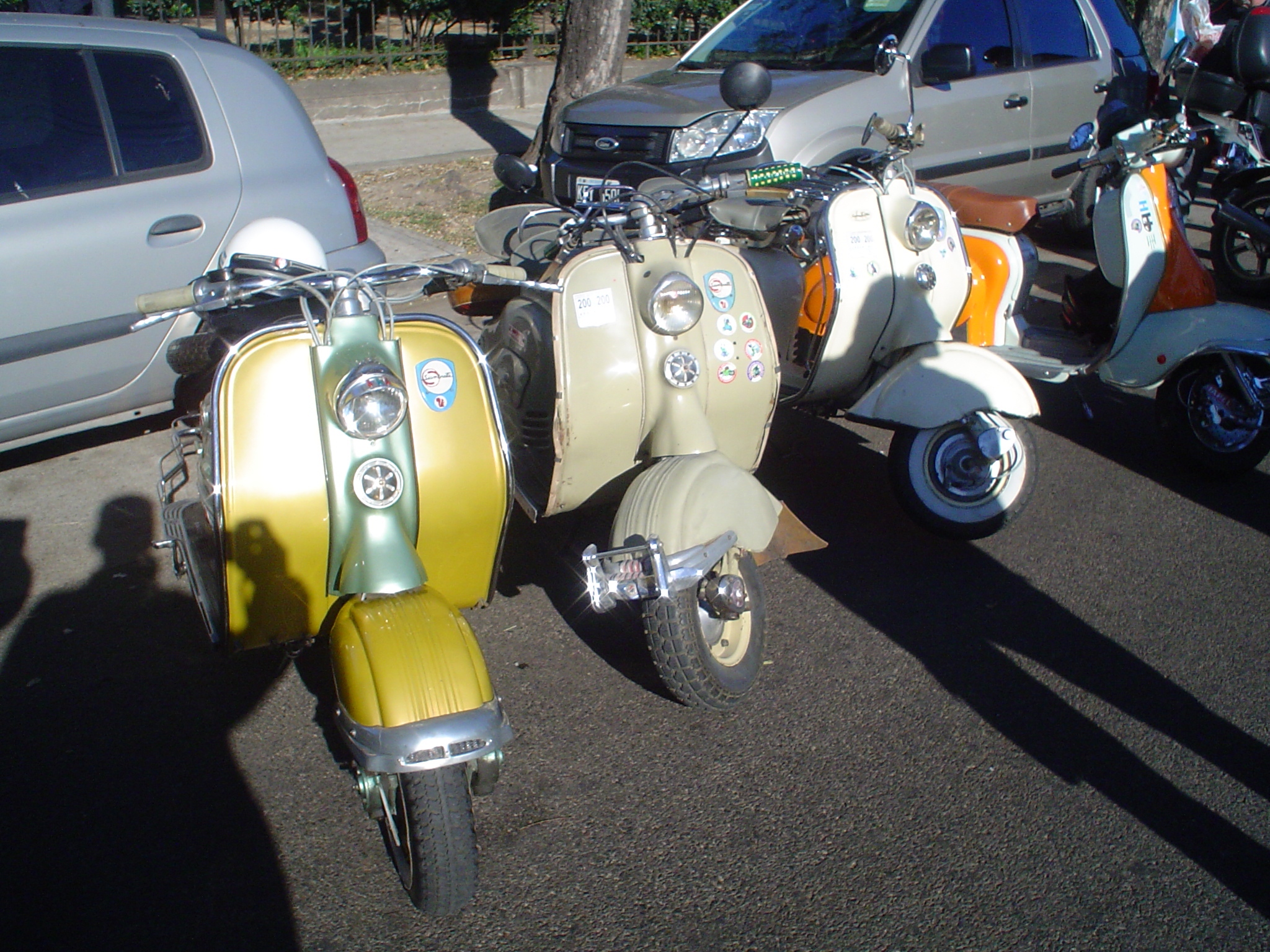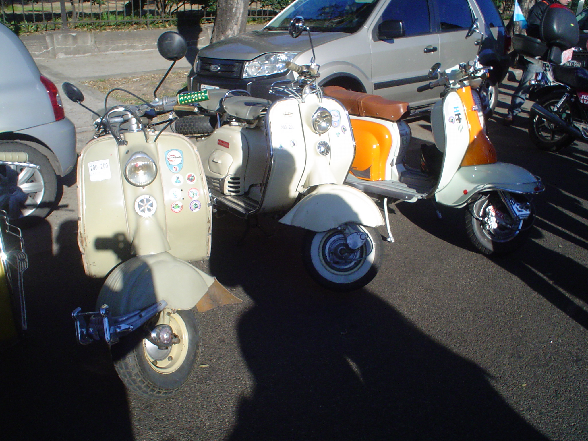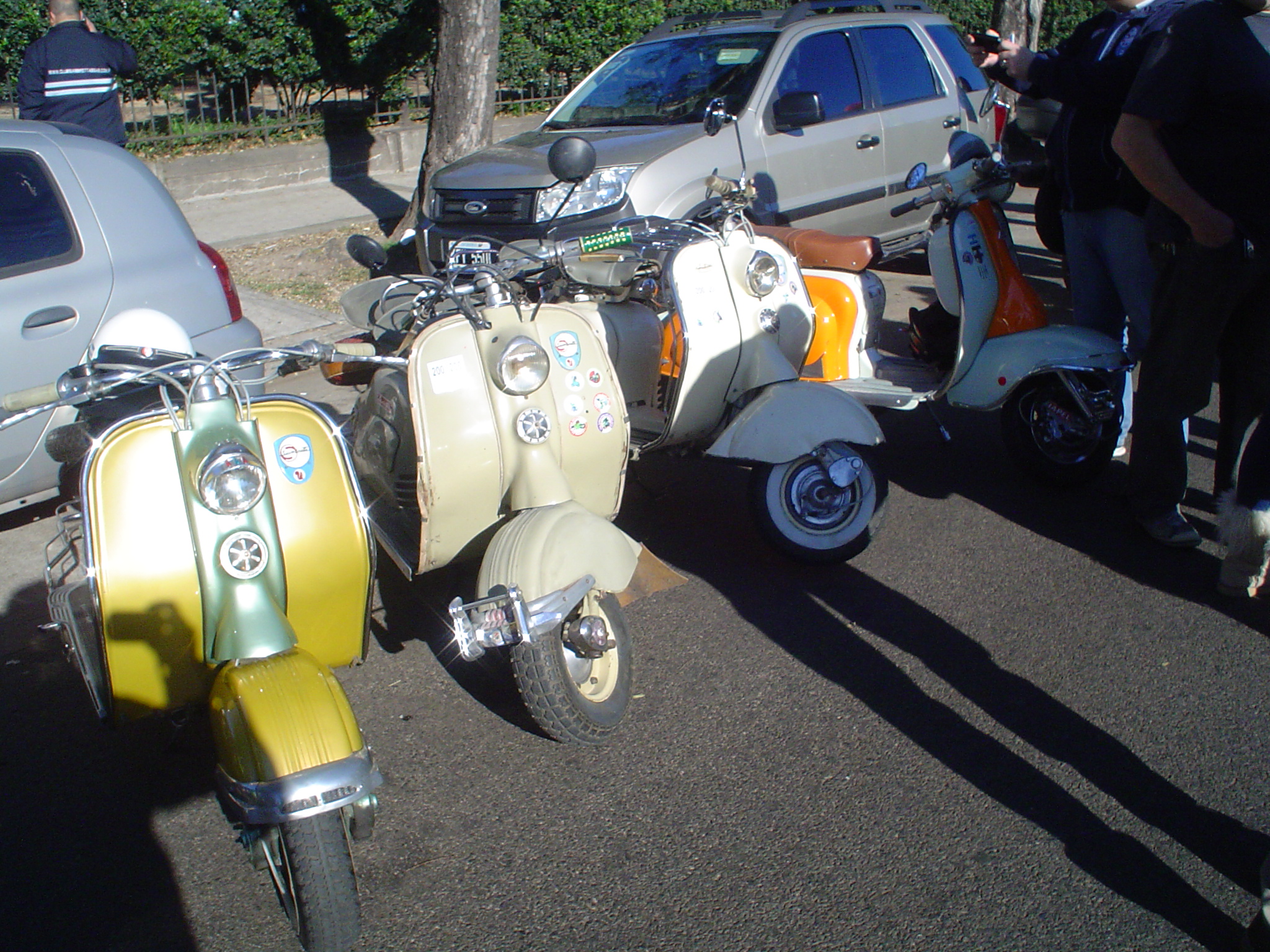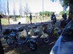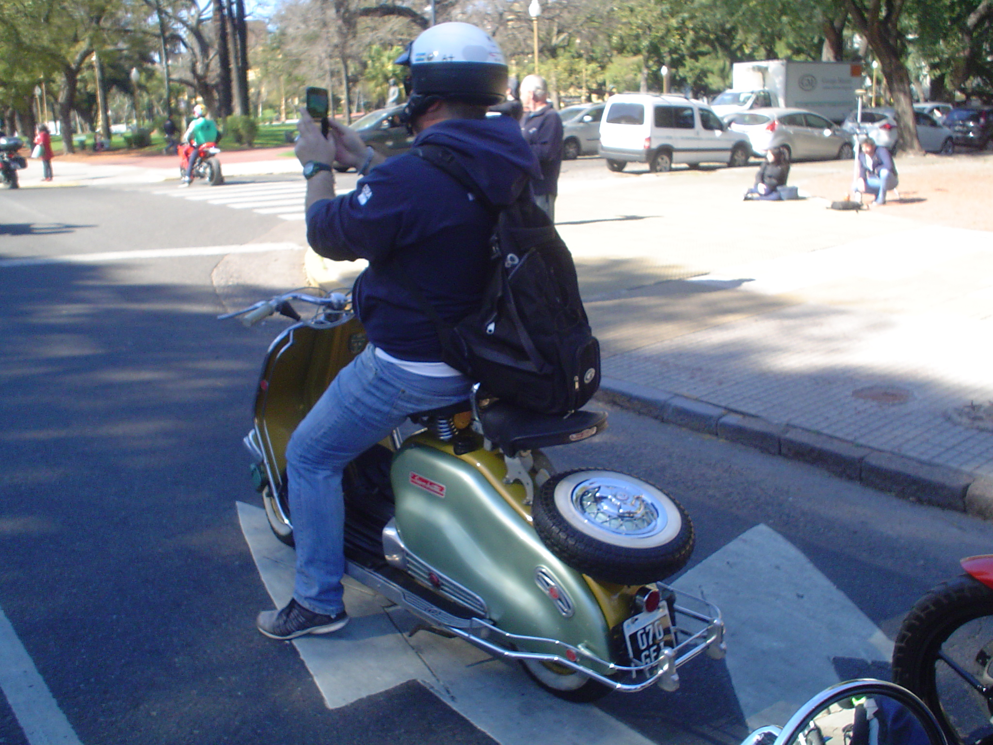 La nota de color de todos los años la dan nuestras Siambrettas, perdidas entre tantas motos, pero la nube de humo del 2t hacen que no pasen desapercibidas.