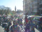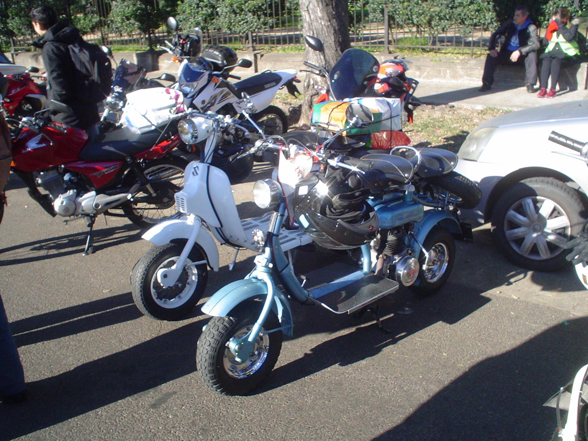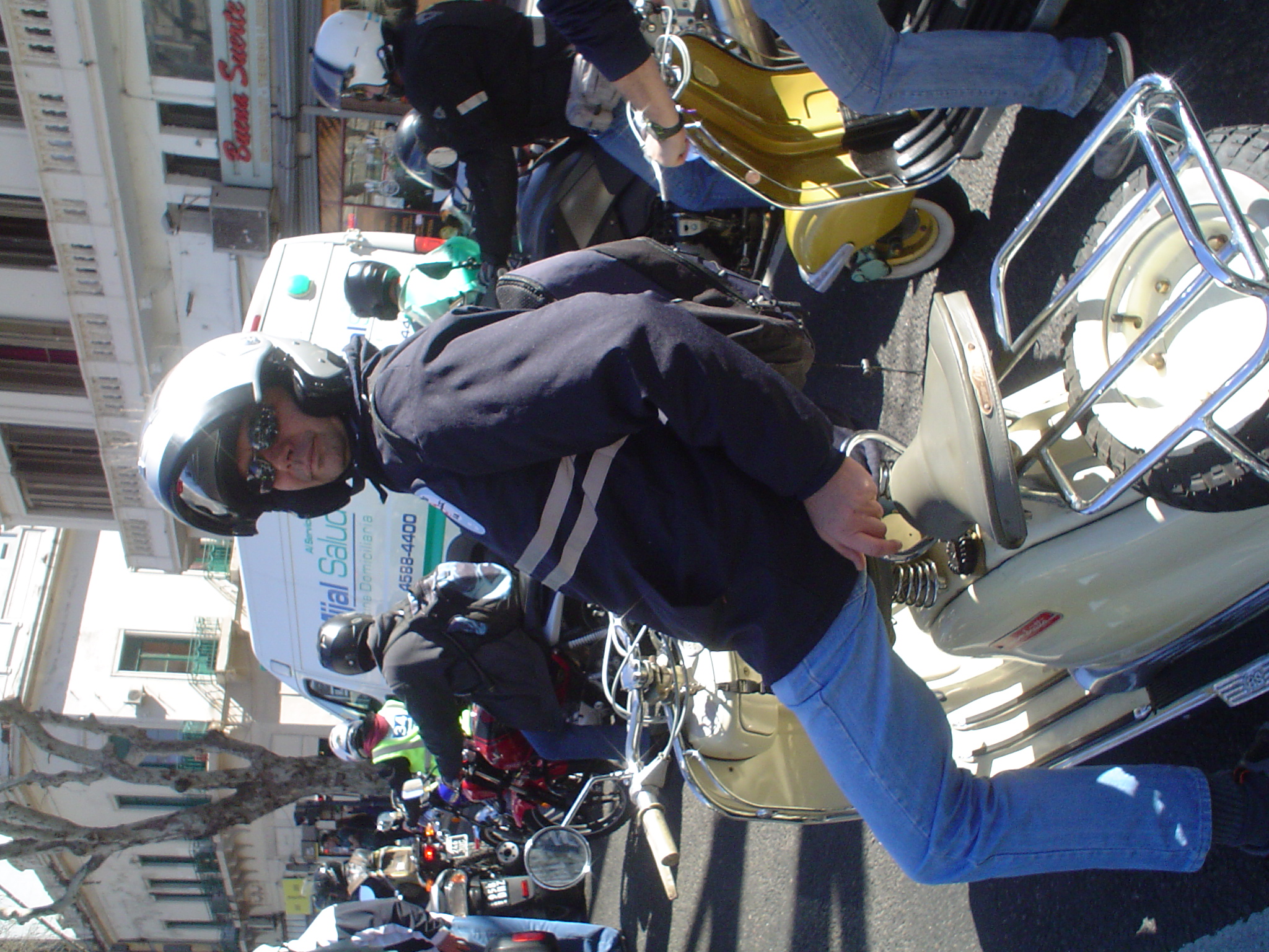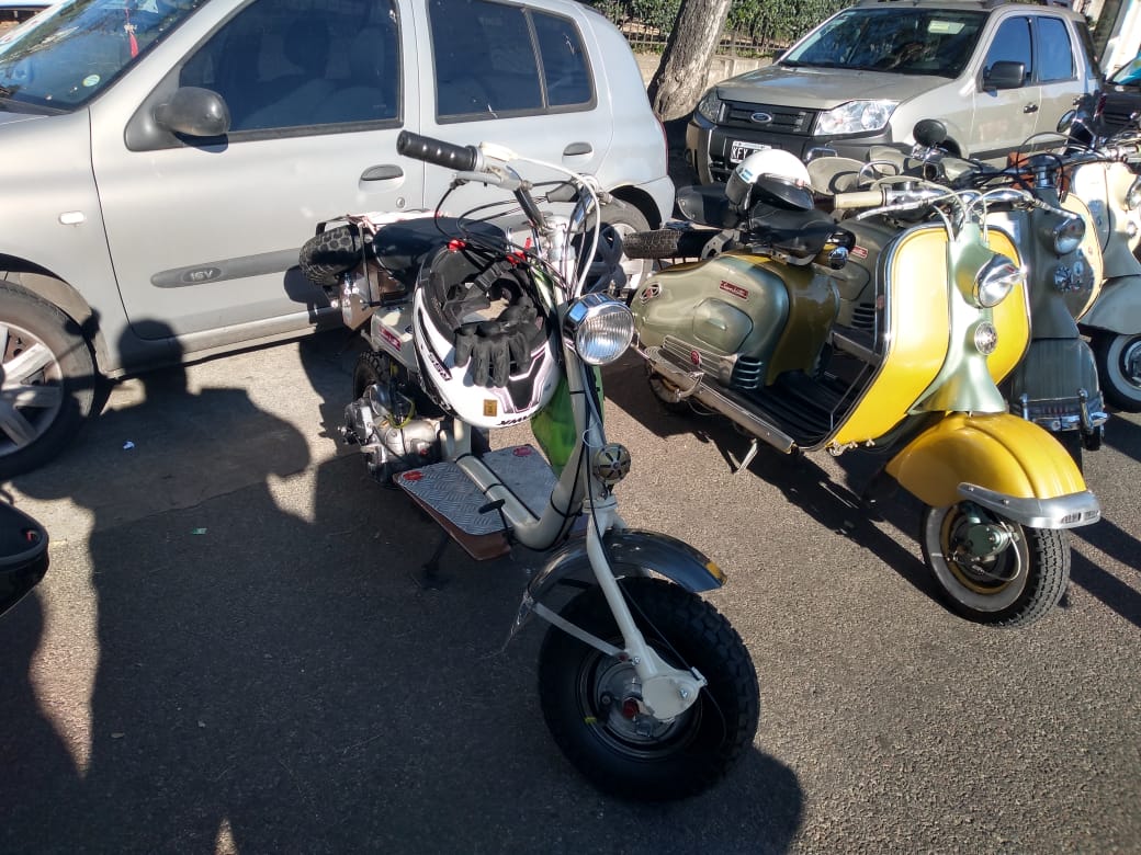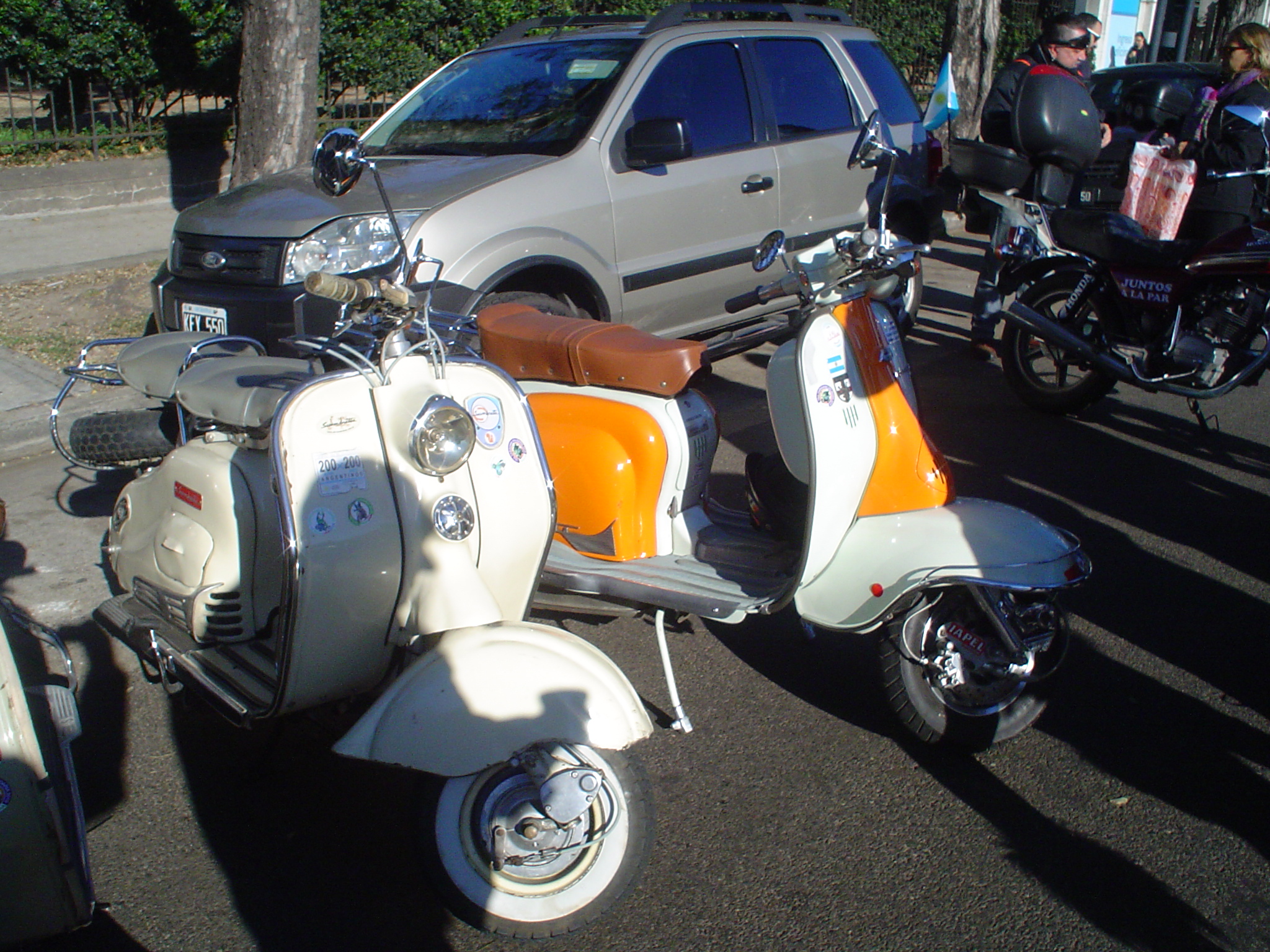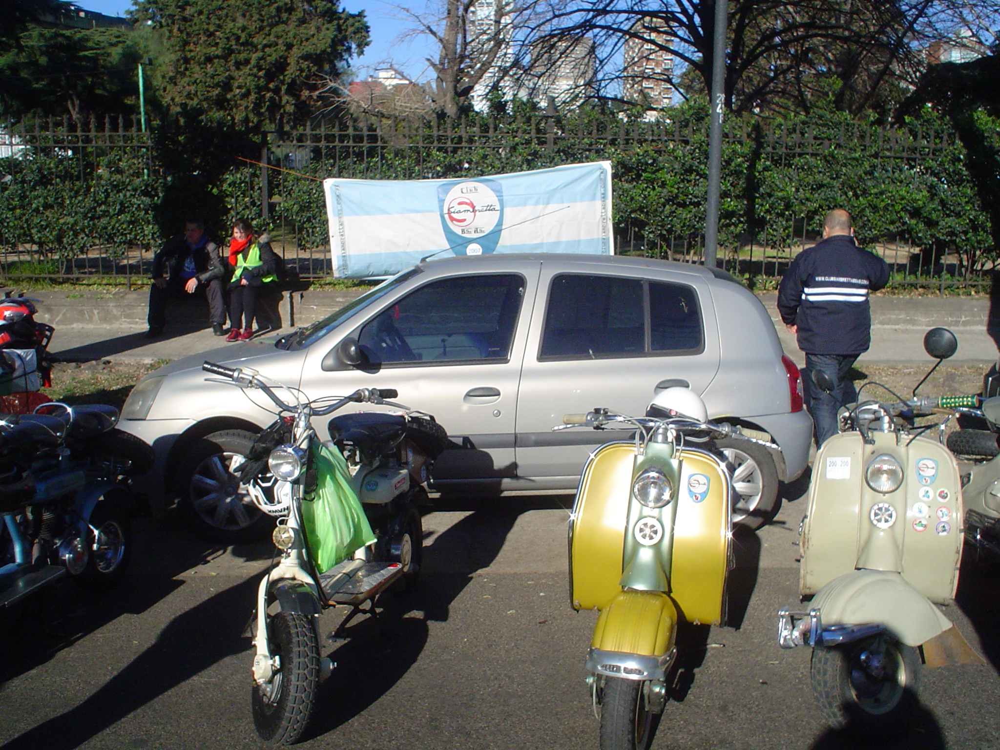 La nota de color de todos los años la dan nuestras Siambrettas, perdidas entre tantas motos, pero la nube de humo del 2t hacen que no pasen desapercibidas.