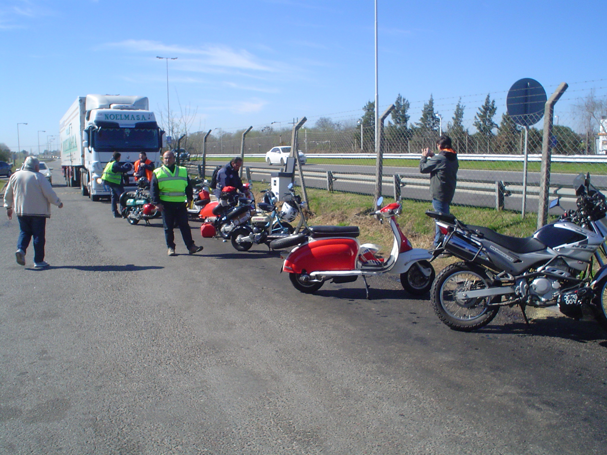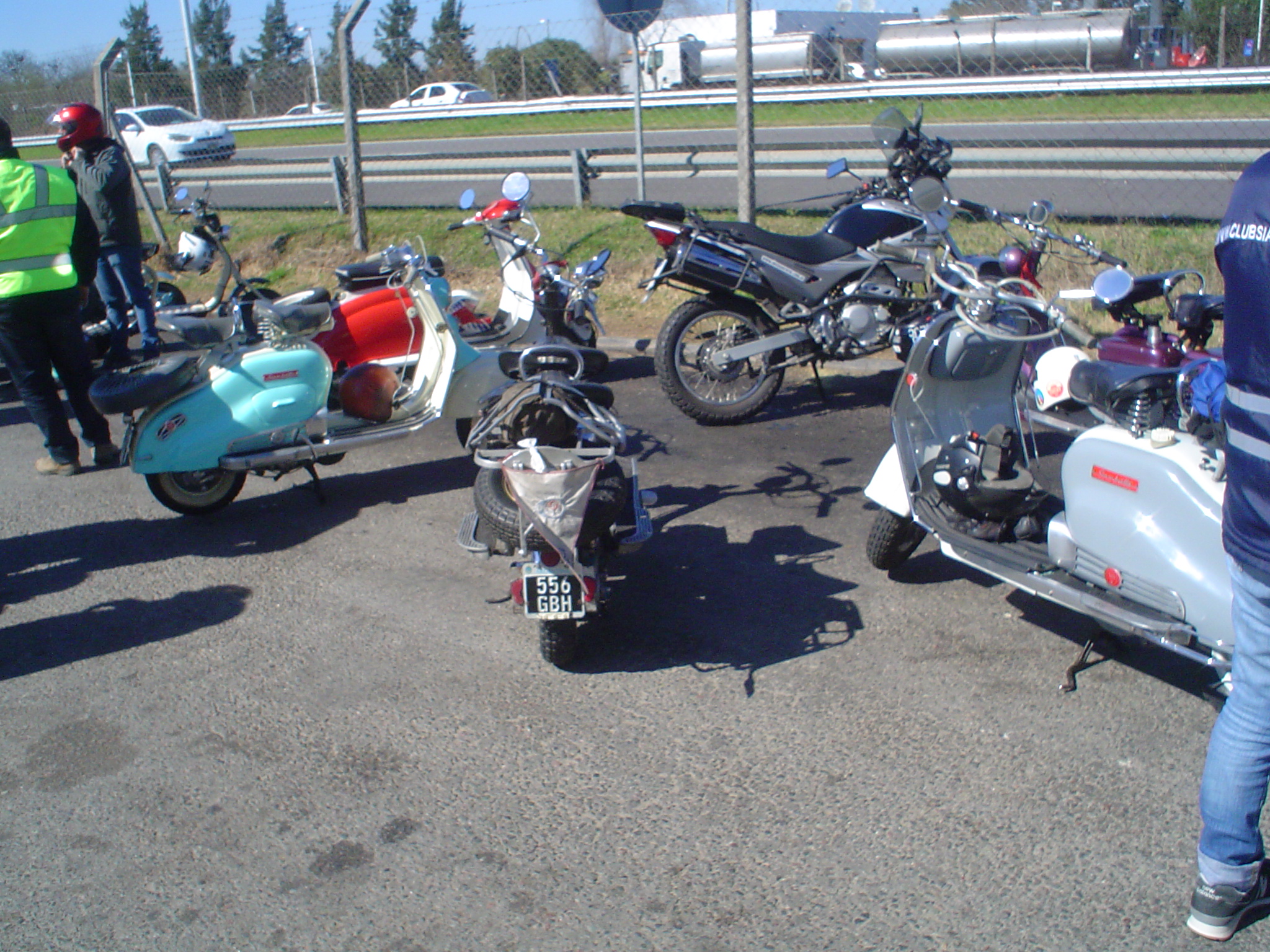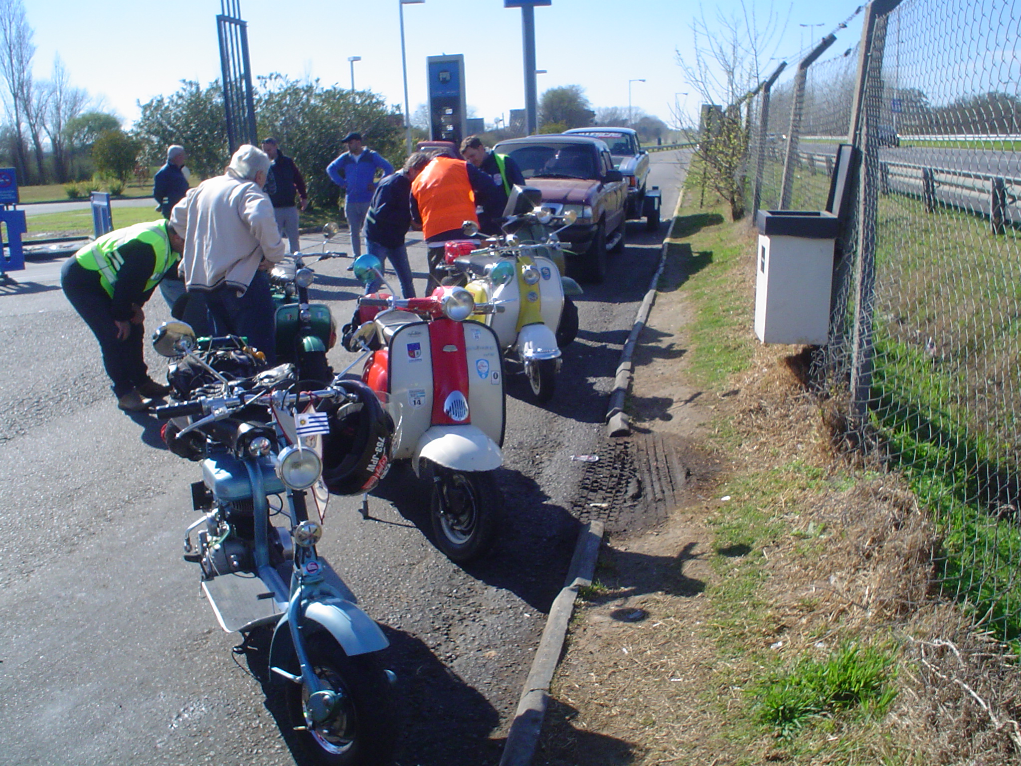En total 13 Siambrettas, salimos 9:15 puntual de la Shell de Autopista del Oeste, en Ciudadela, y salvo un pinchazo en ruta, el viaje fue sin inconvenientes. Parada en la YPF de Gral. Rodriguez y llegamos a Tomás Jofré para almorzar.