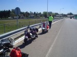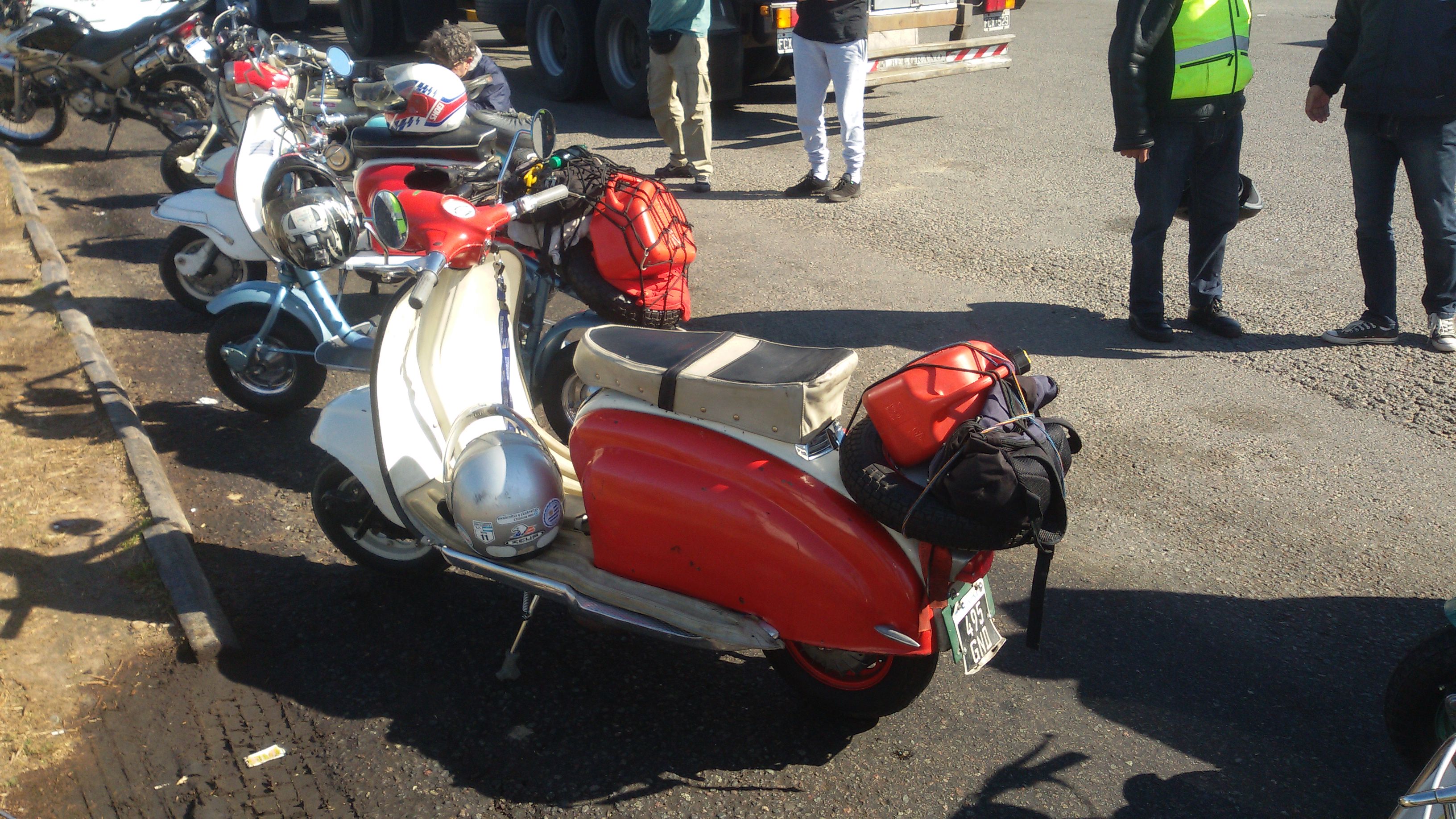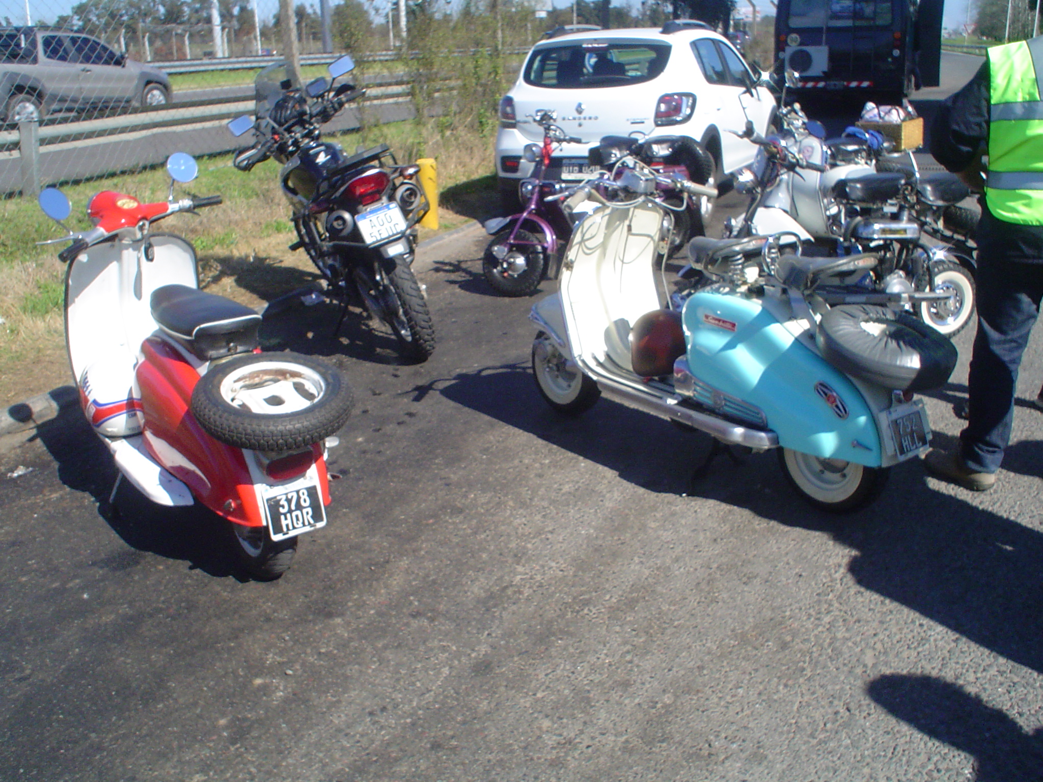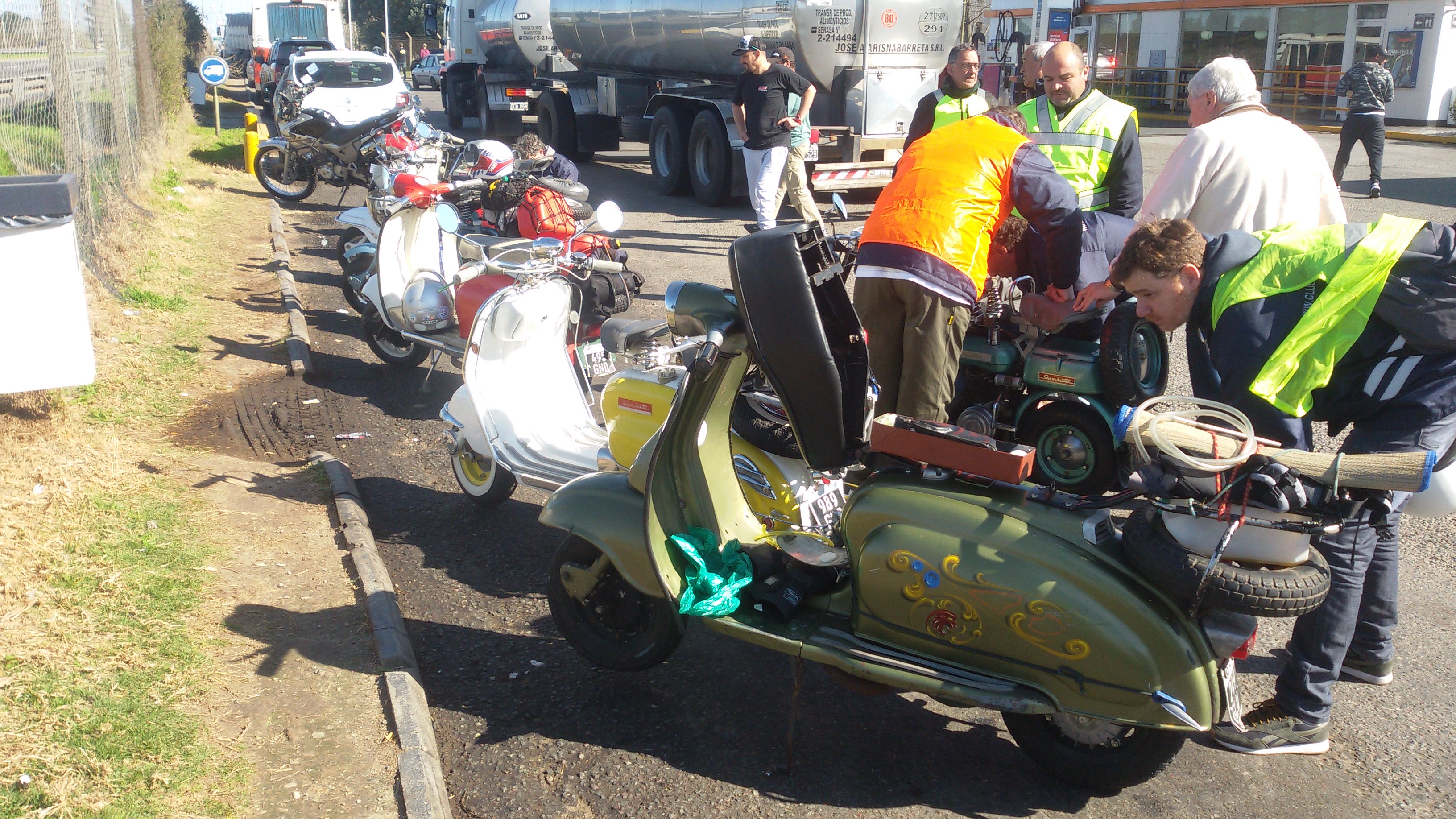 En total 13 Siambrettas, salimos 9:15 puntual de la Shell de Autopista del Oeste, en Ciudadela, y salvo un pinchazo en ruta, el viaje fue sin inconvenientes. Parada en la YPF de Gral. Rodriguez y llegamos a Tomás Jofré para almorzar.