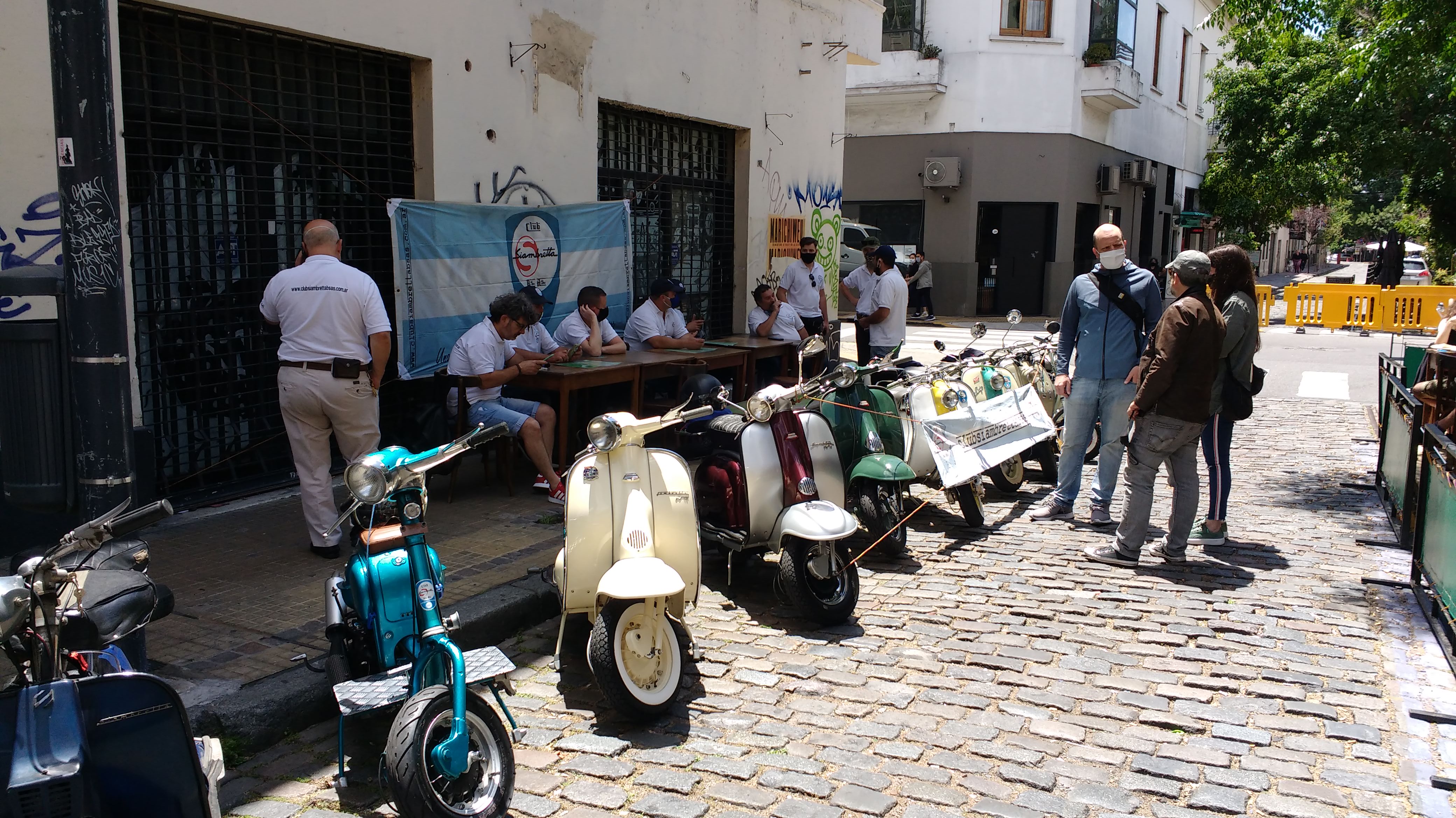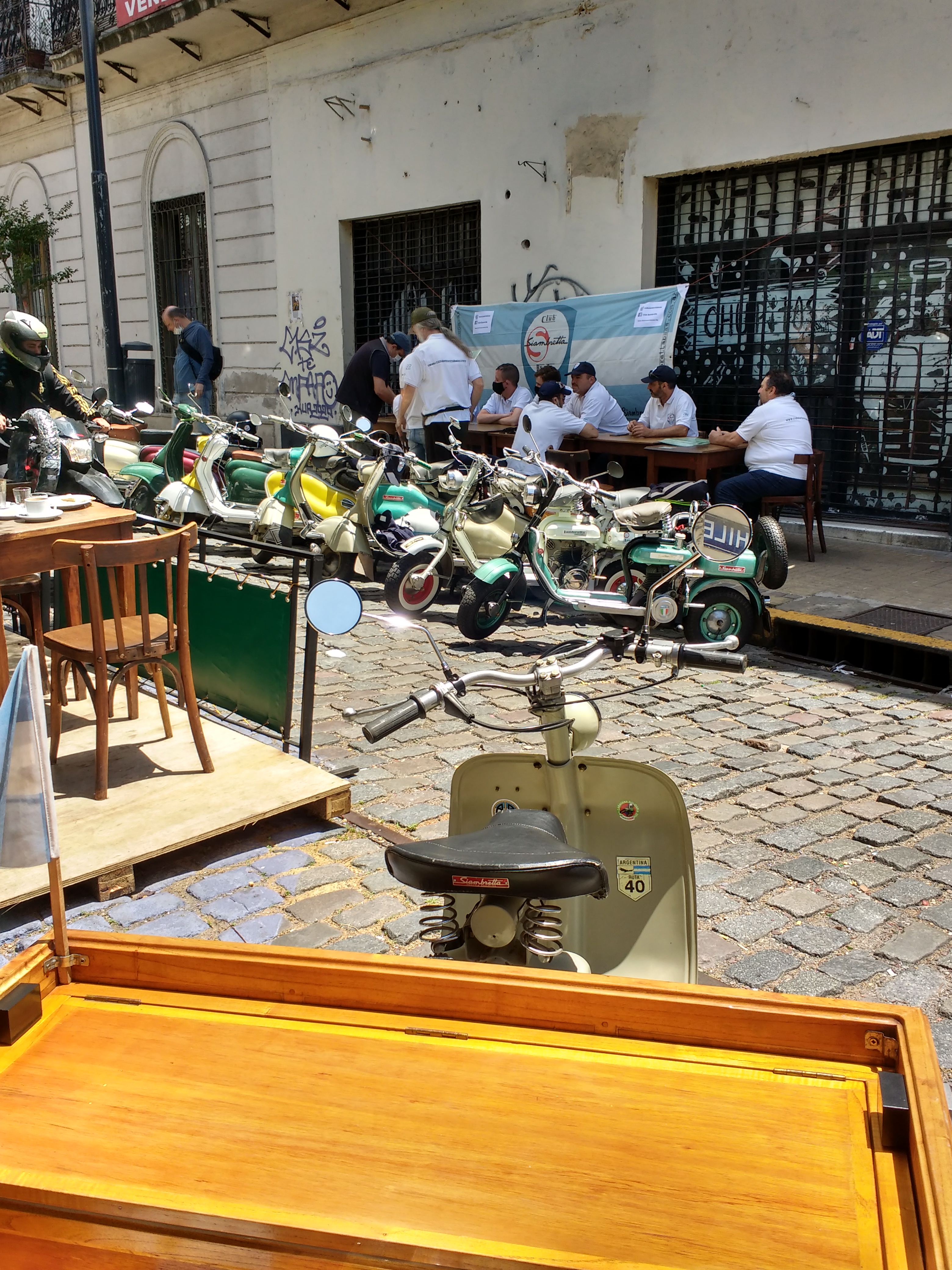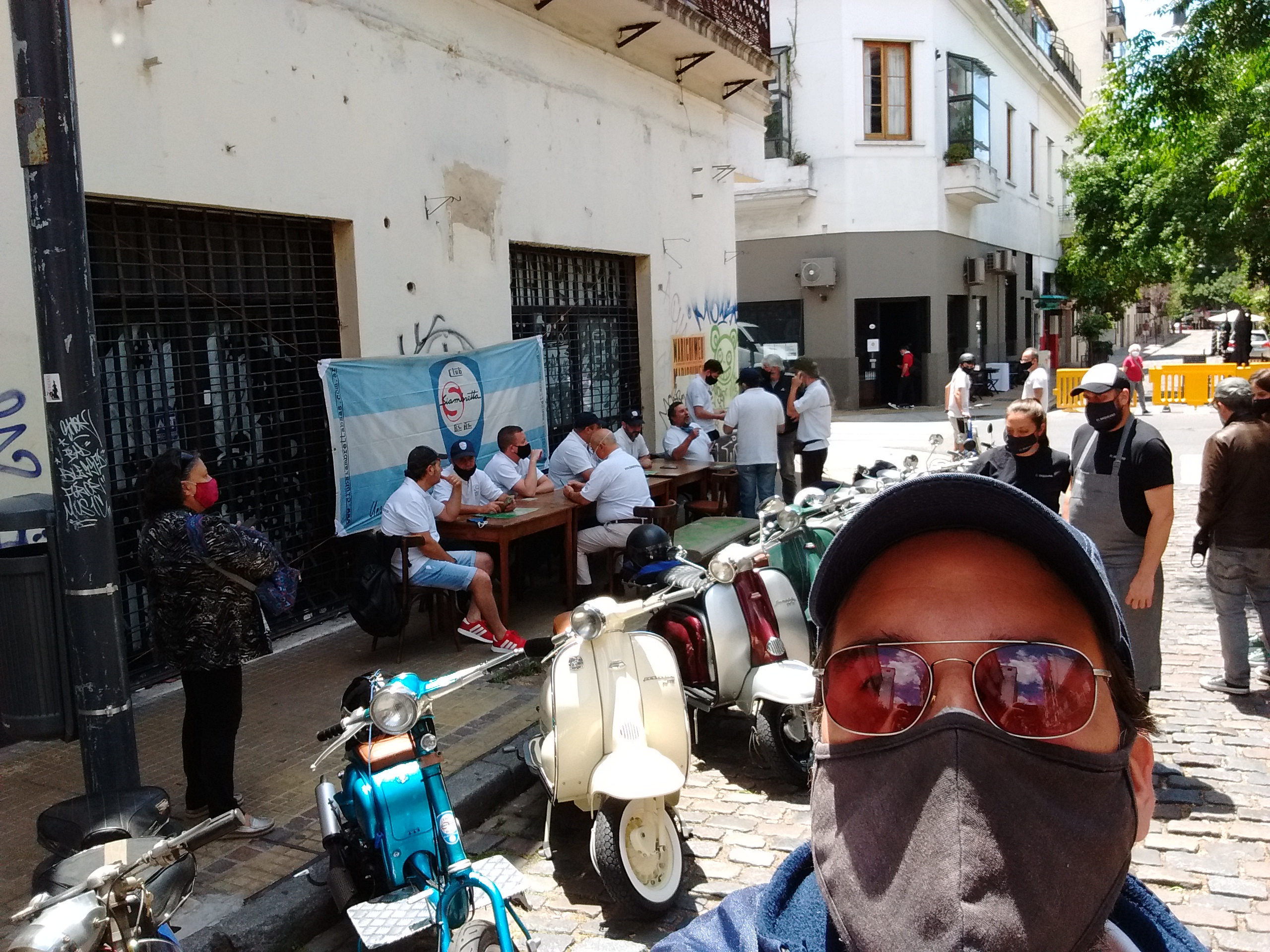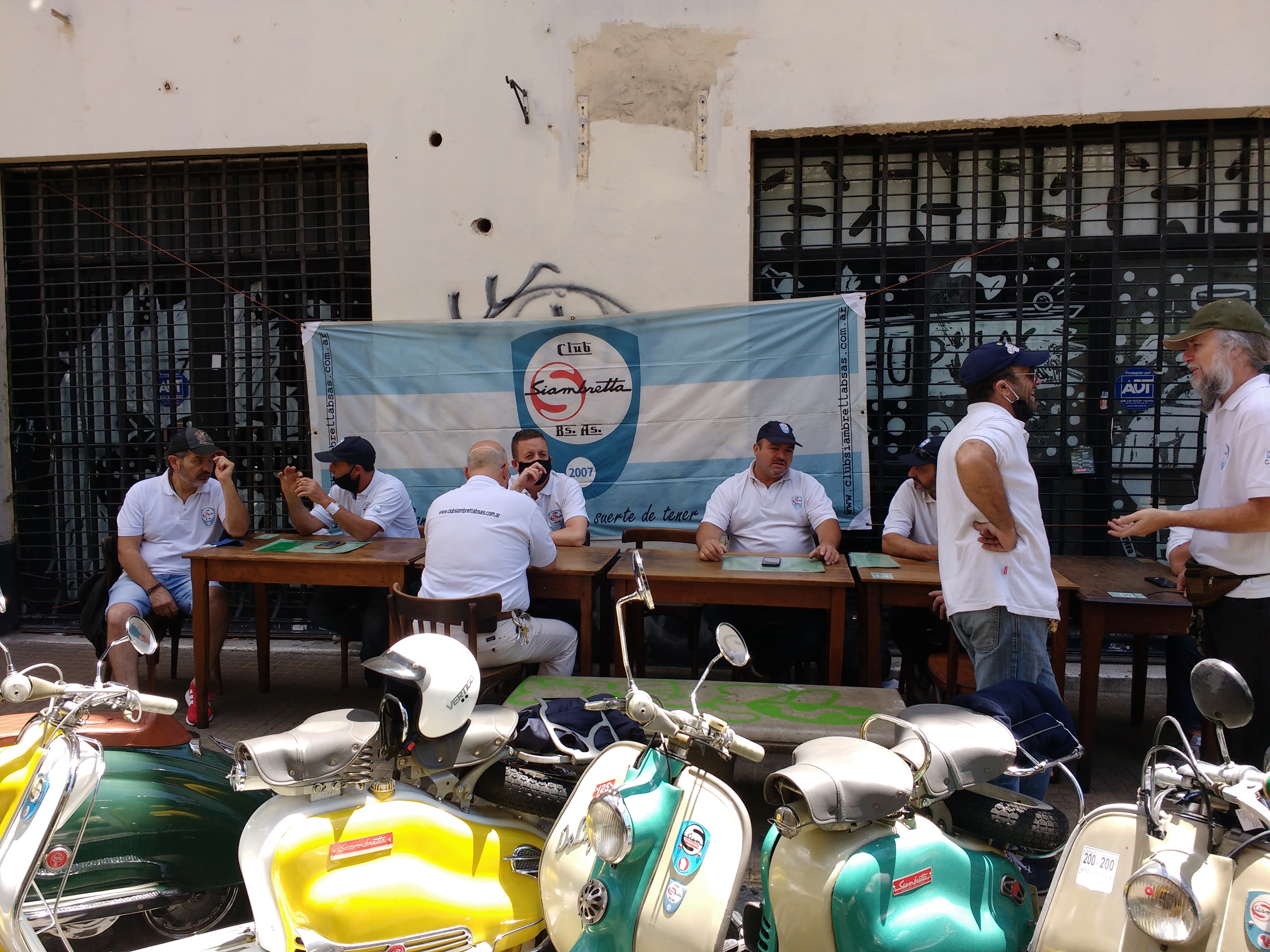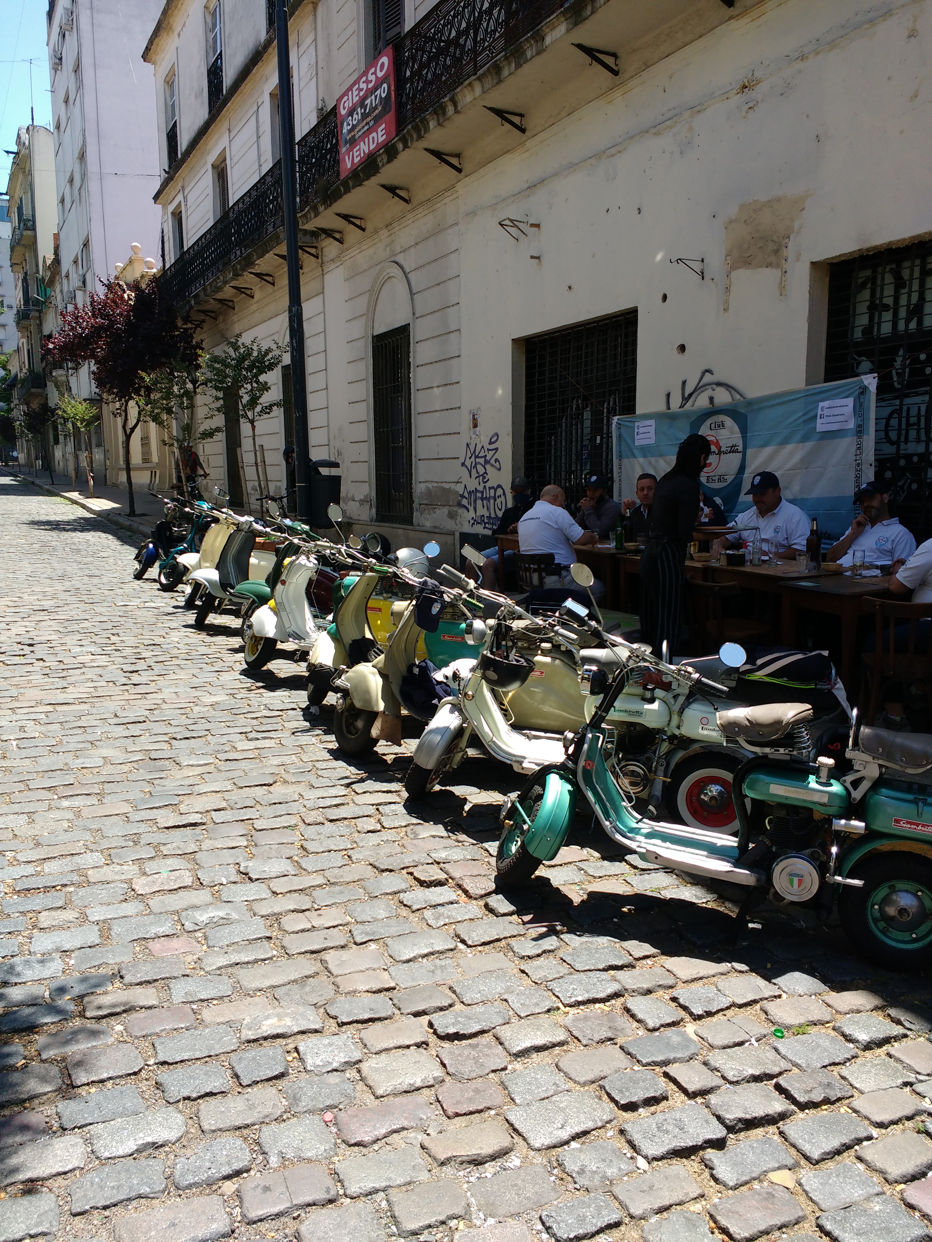 Comenzamos nuestras actividades y en el marco del San Telmo al aire libre, fuimos invitados gentilmente por la gente del Bar «La Poesía» para realizar una exhibición de nuestras motonetas. Llevamos 11 de nuestras Siambrettas y las expusimos frente al bar para que la gente pueda disfrutar de las delicias del lugar con una vista diferente a la habitual.
