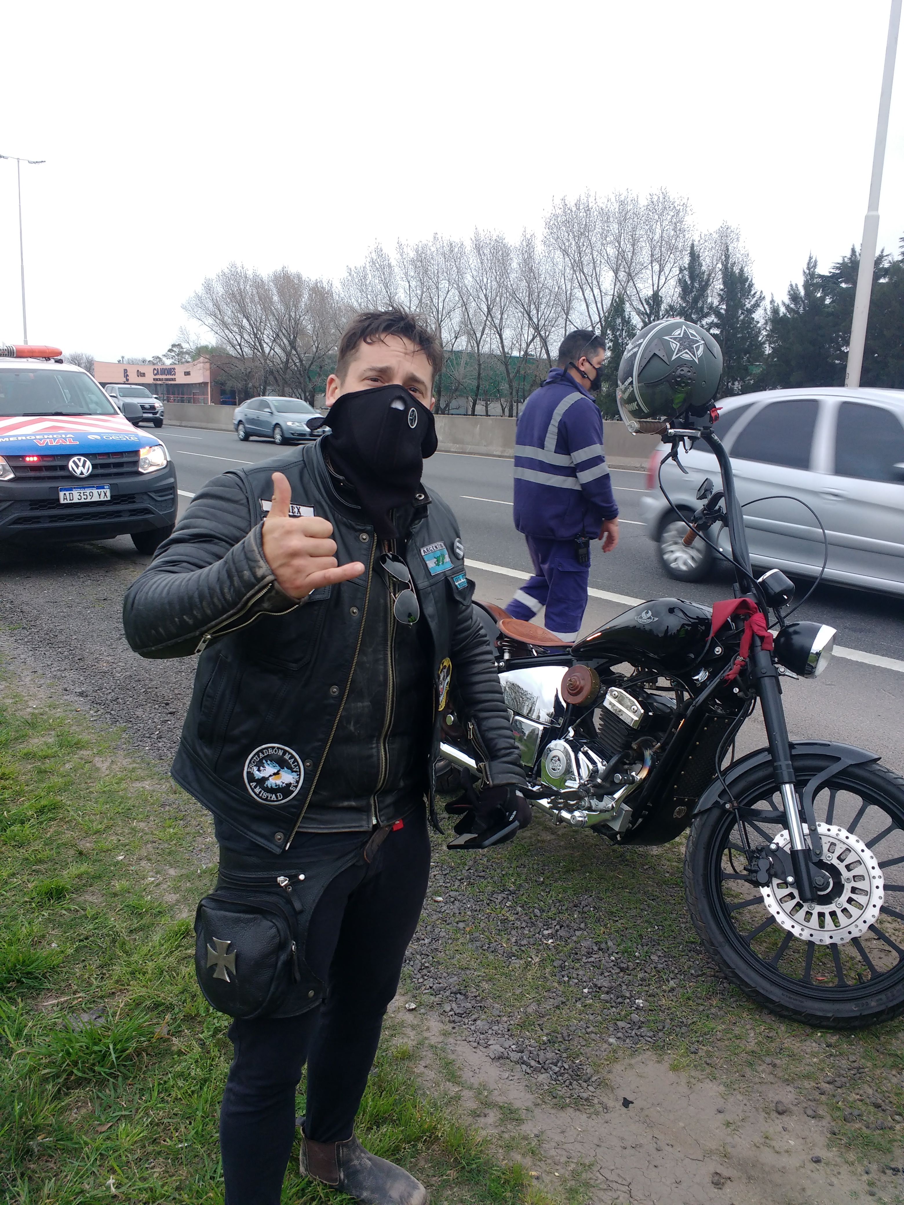 Cuando salimos de la estación de servicio, nos enteramos que a Hugo se le había roto la motoneta. Estaba en compañía de Federico, un motero que sin dudarlo paro y se quedo hacerle el aguante hasta que llegamos nosotros.