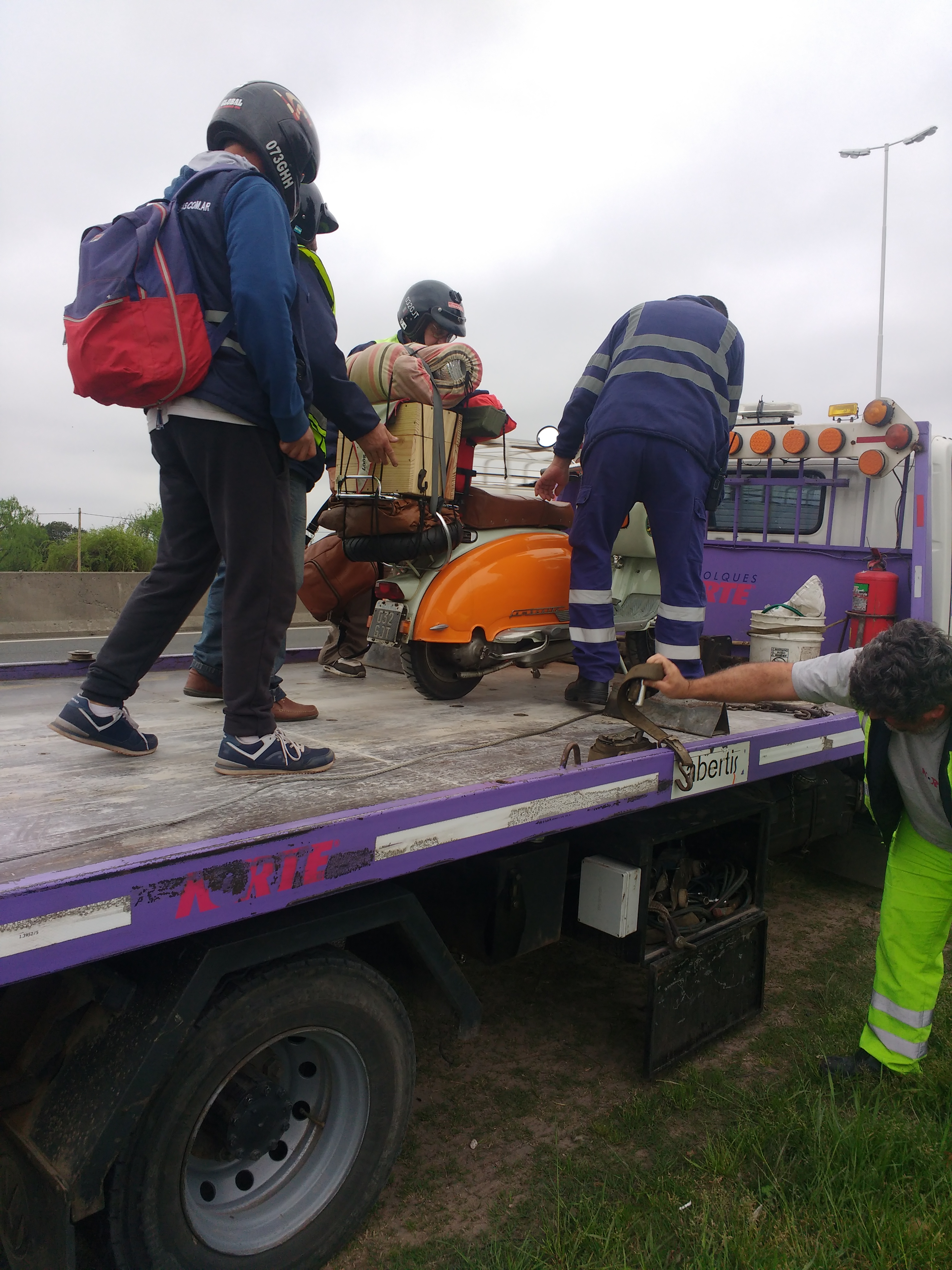 Esperamos la grúa de la autopista y luego en Moreno el remolque para trasladar a Hugo y su Siam a Banfield.