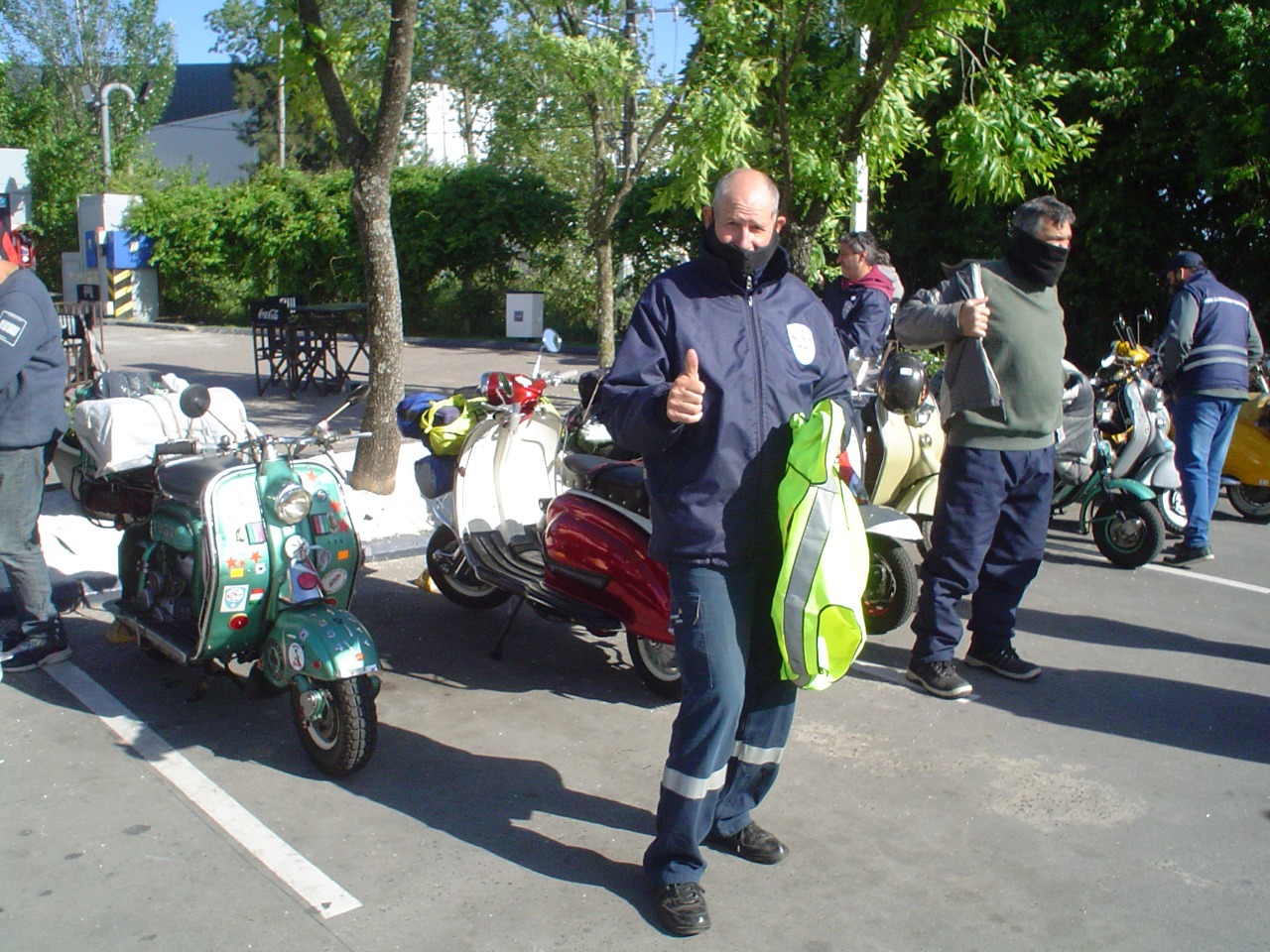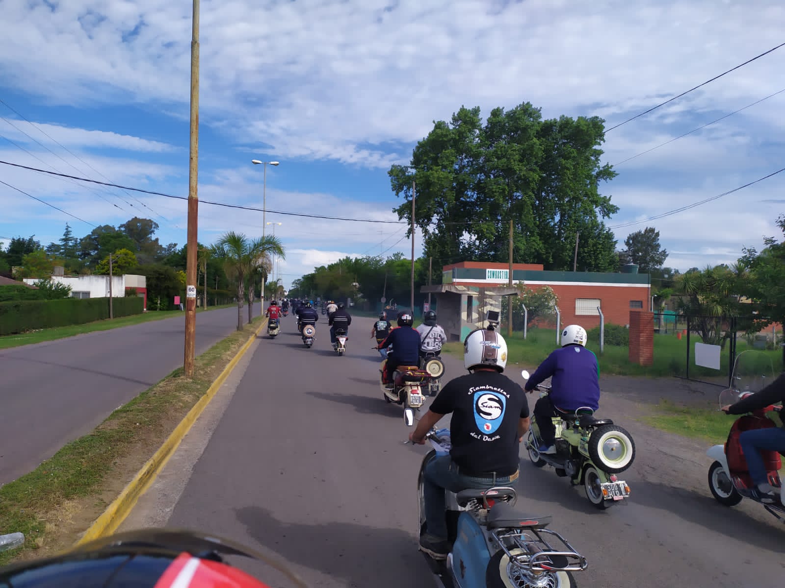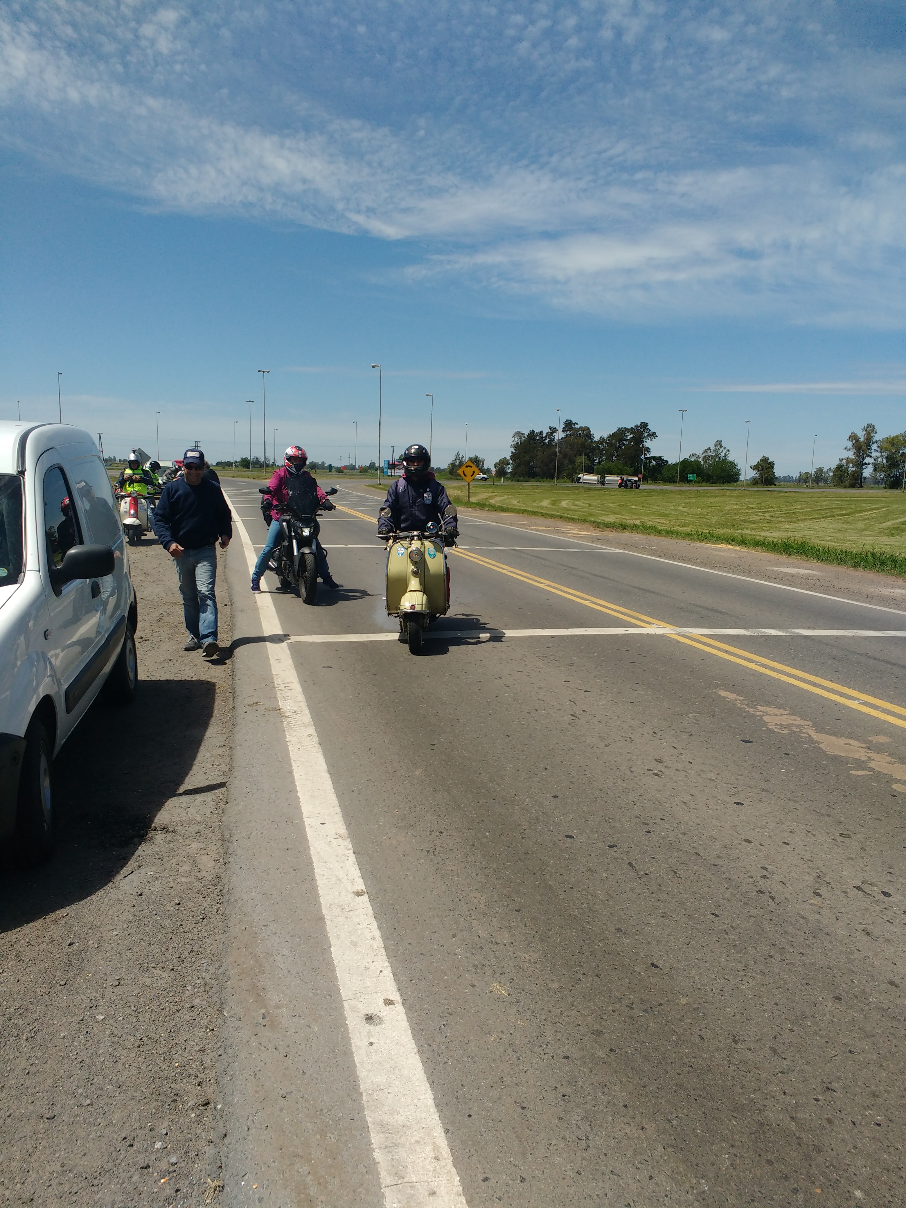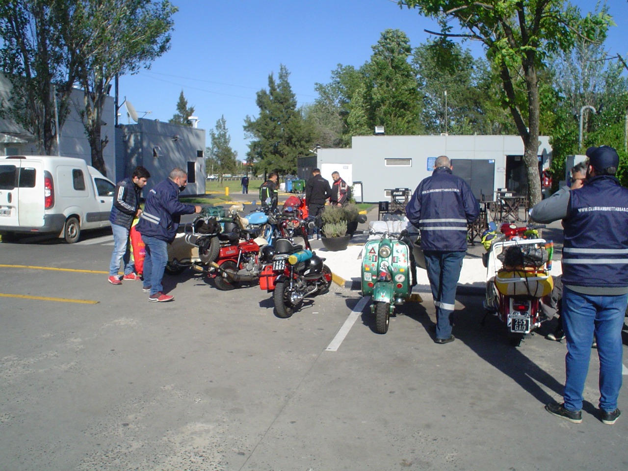 Nos agrupamos los 14 integrantes del club en el acceso oeste, en esta oportunidad tres de los mismos tuvieron que llevar sus motonetas en camioneta, pero a su vez nos escoltaron a lo largo del camino al resto que fuimos rodando.