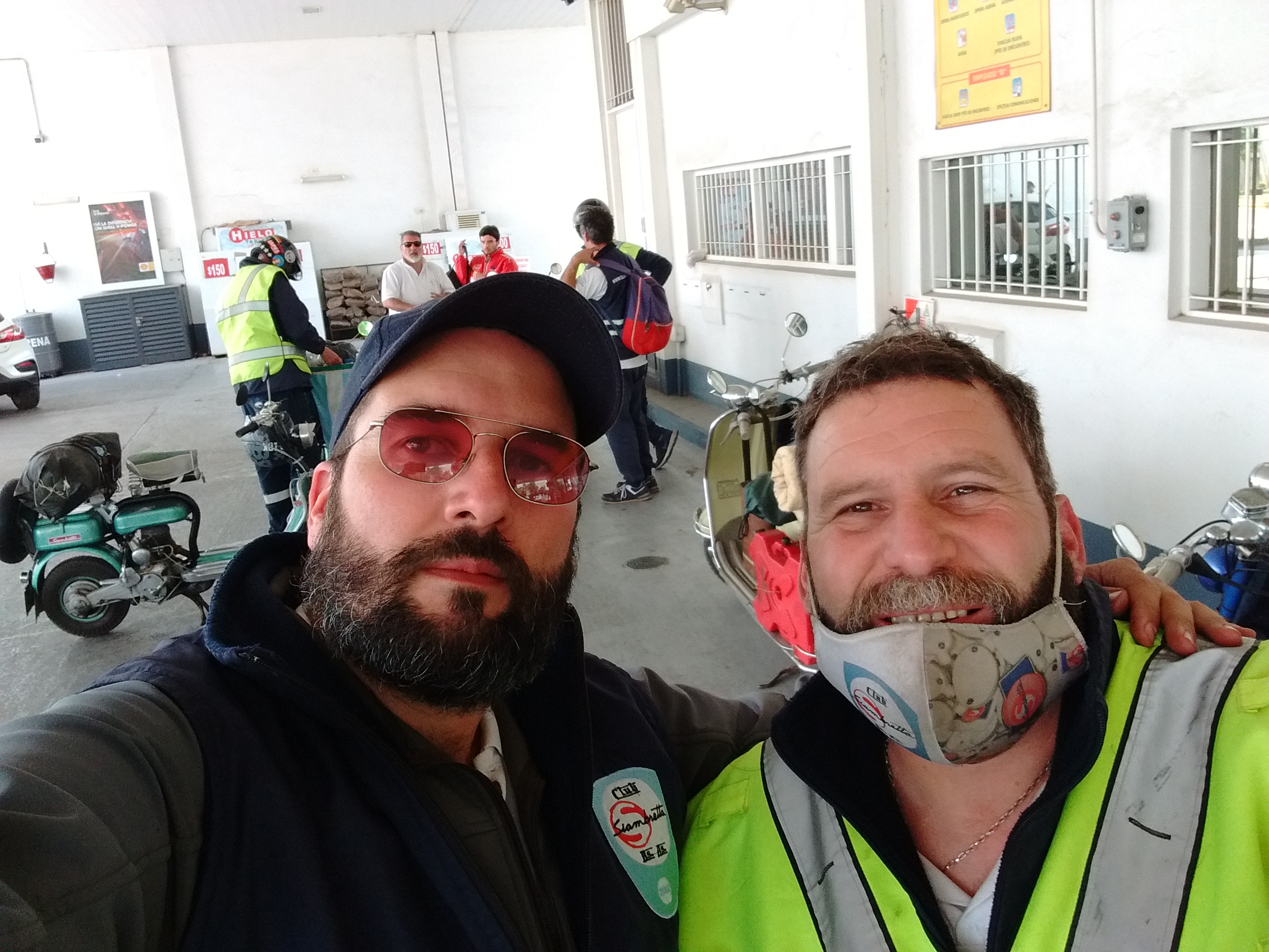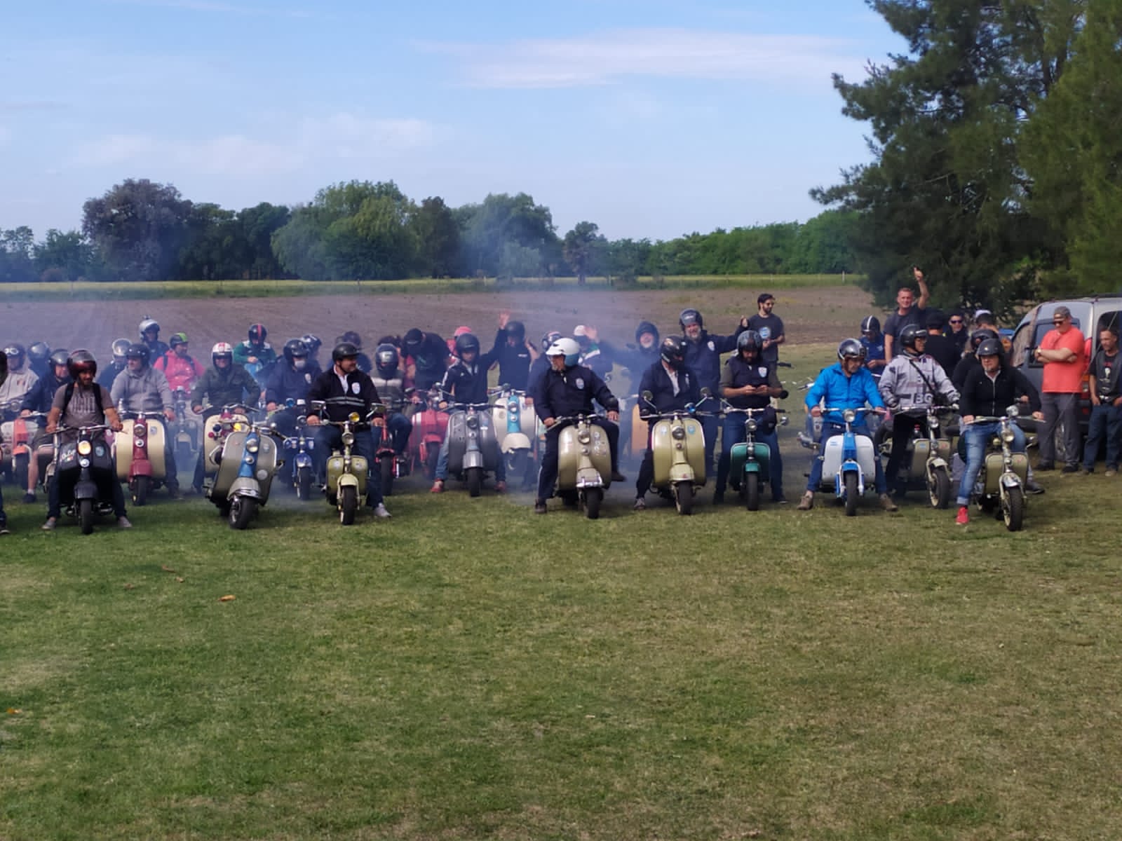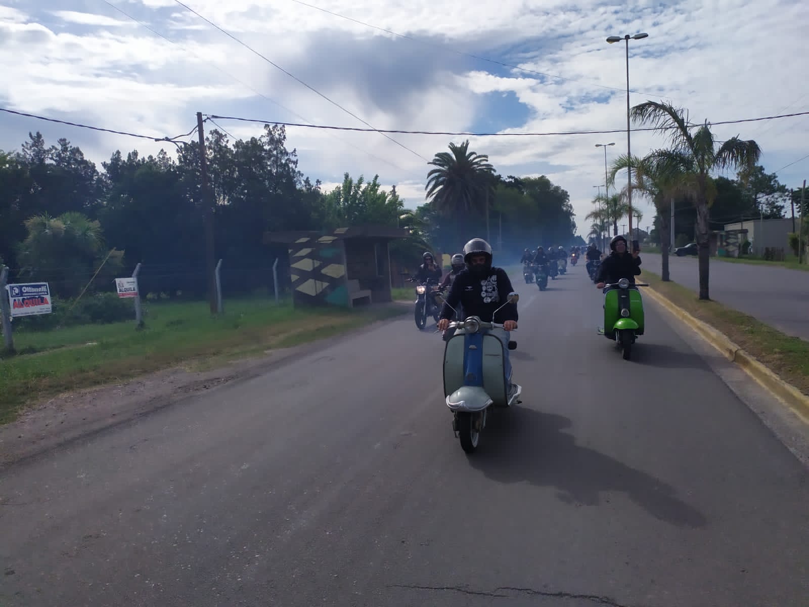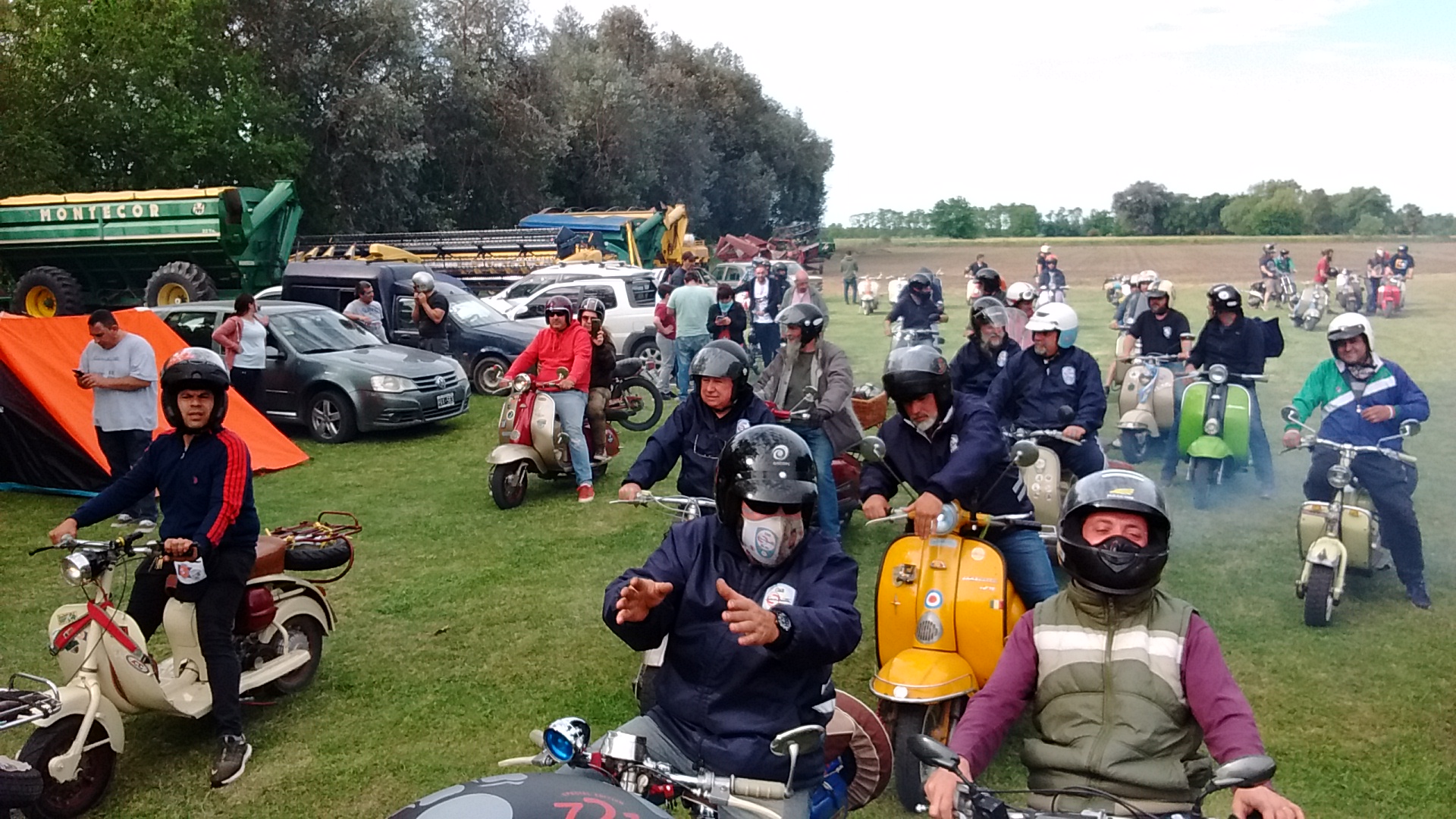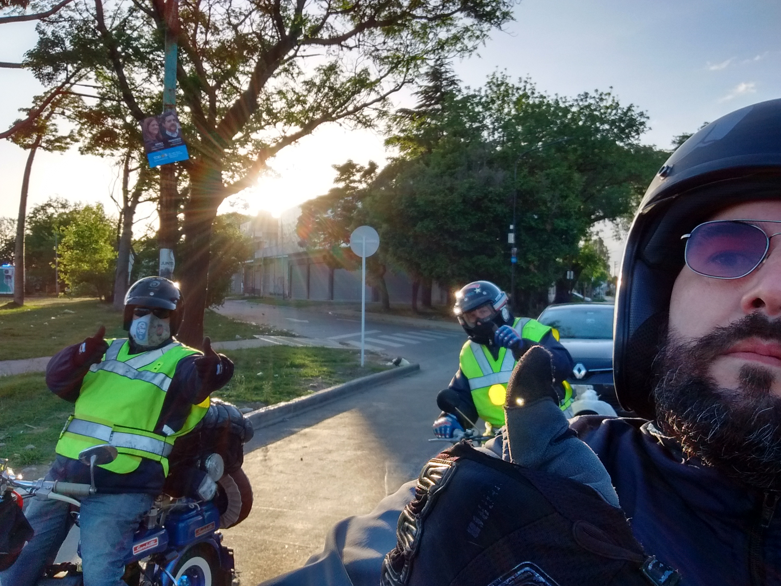 Nos agrupamos los 14 integrantes del club en el acceso oeste, en esta oportunidad tres de los mismos tuvieron que llevar sus motonetas en camioneta, pero a su vez nos escoltaron a lo largo del camino al resto que fuimos rodando.