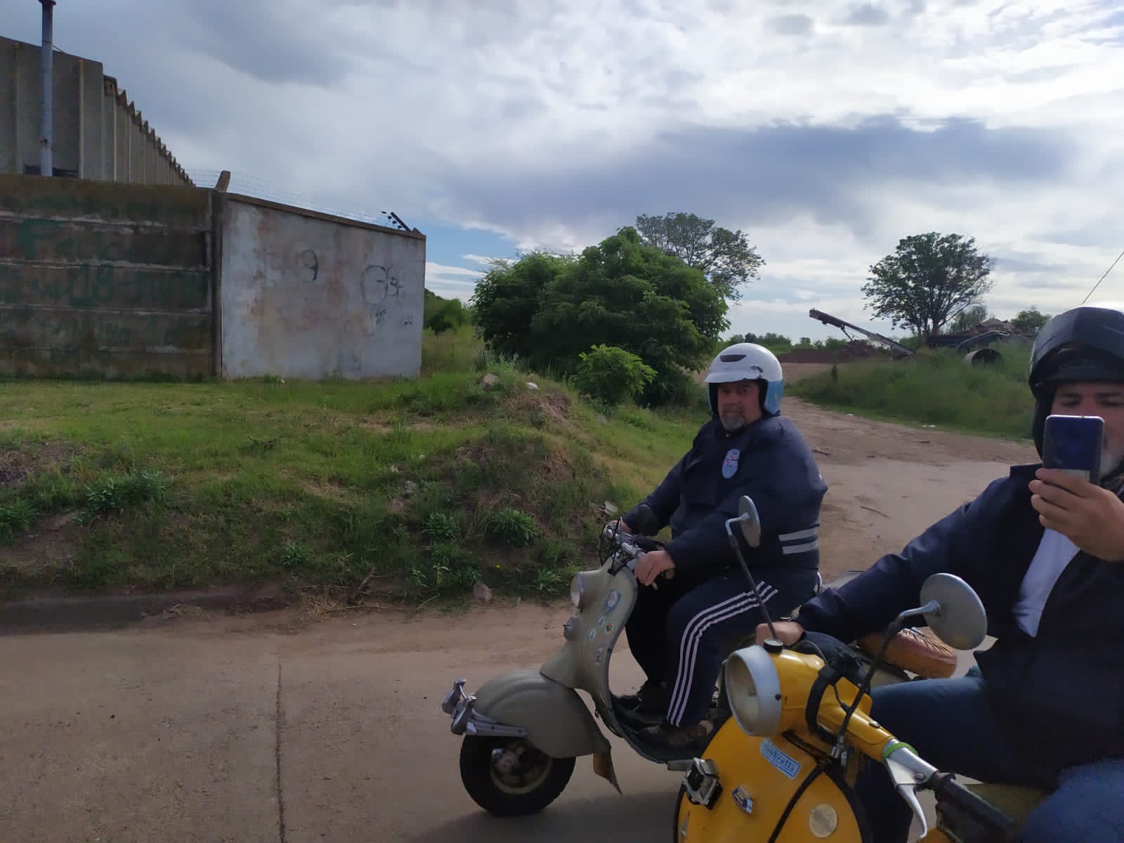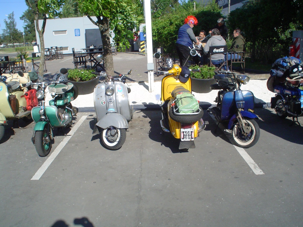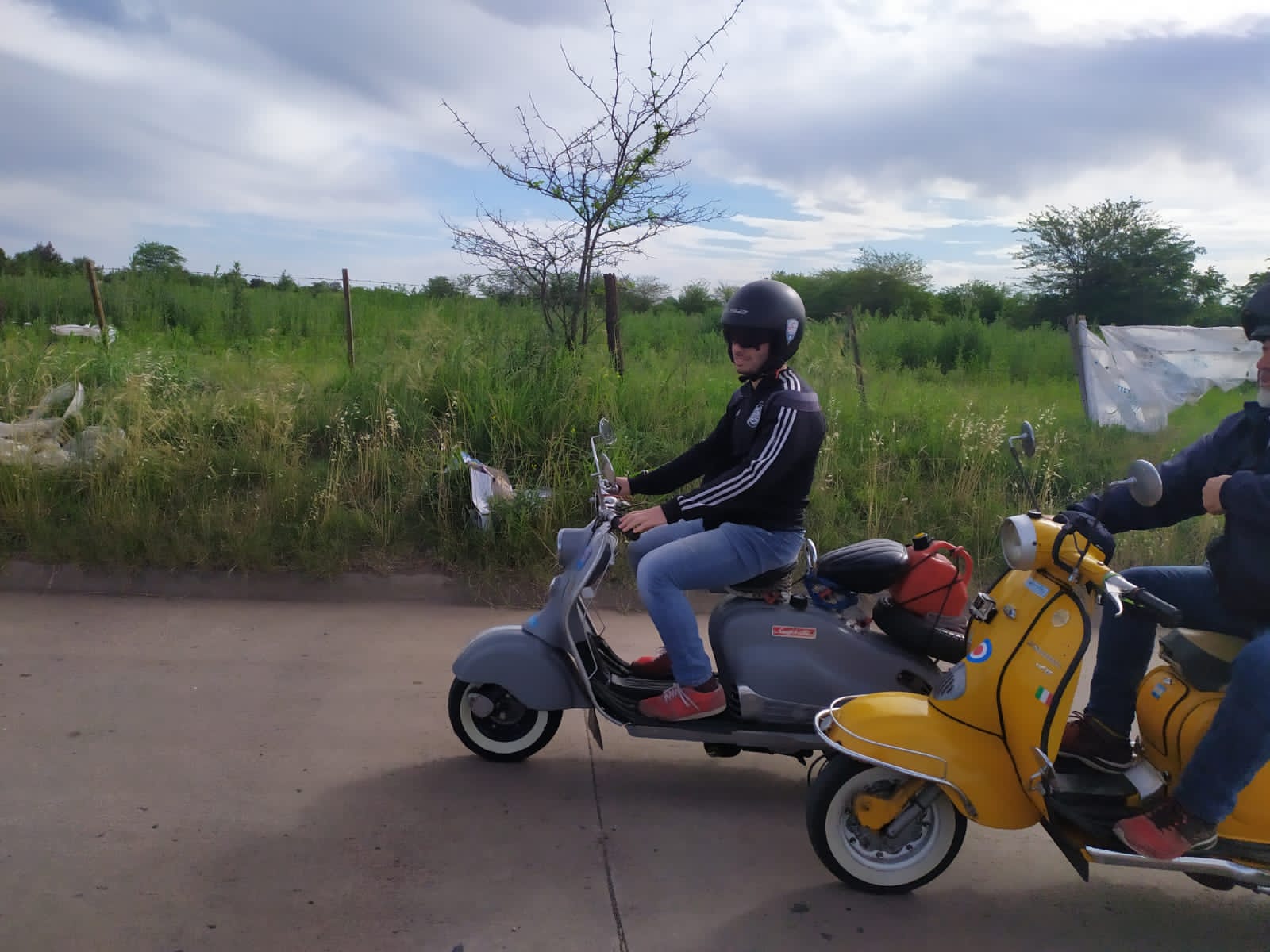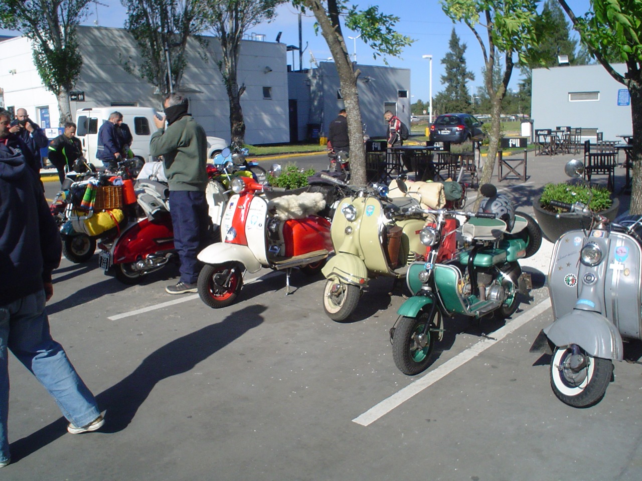 Nos agrupamos los 14 integrantes del club en el acceso oeste, en esta oportunidad tres de los mismos tuvieron que llevar sus motonetas en camioneta, pero a su vez nos escoltaron a lo largo del camino al resto que fuimos rodando.