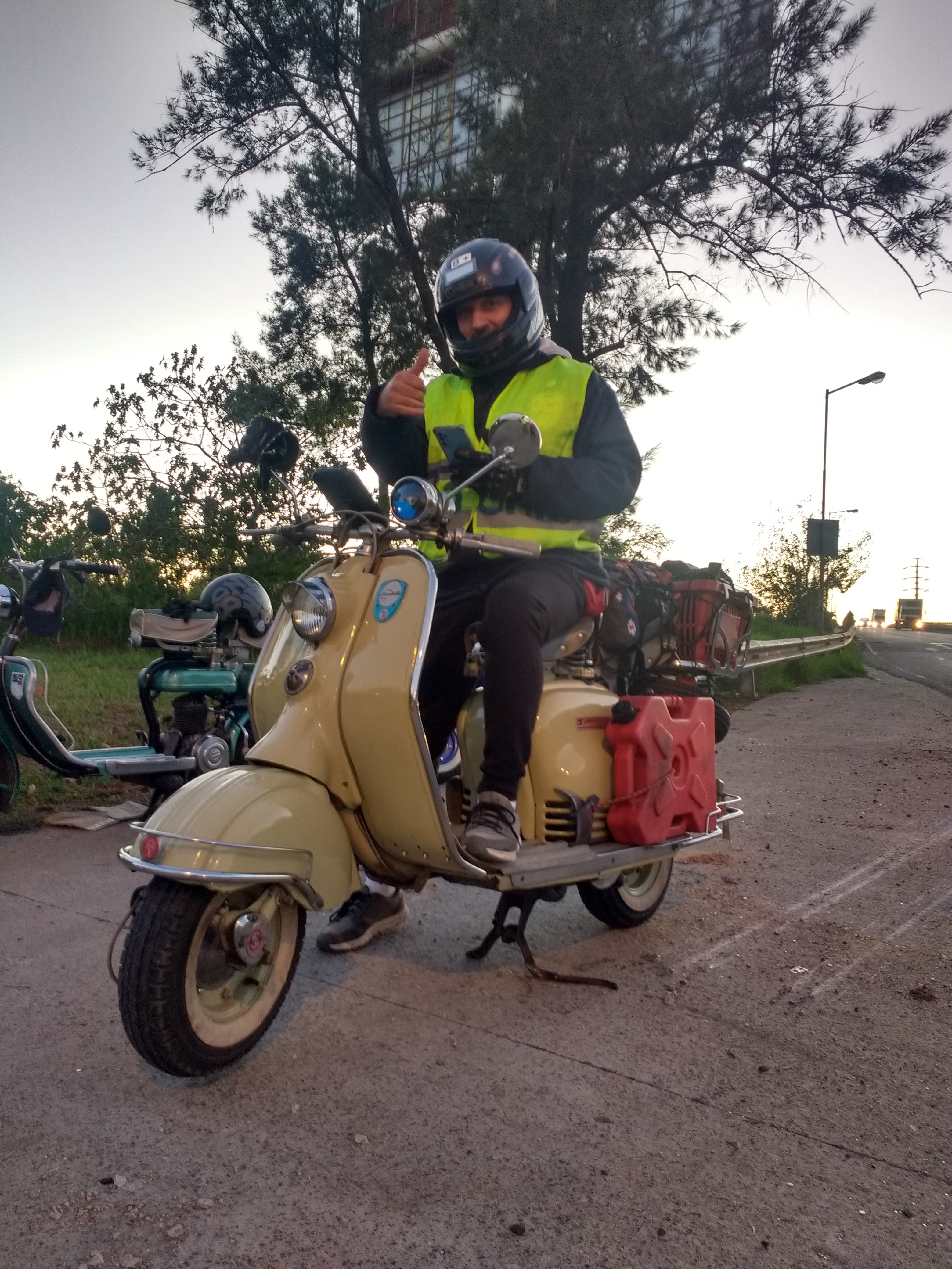 Nicolás: Yo tengo familia en Santa Fe, hacia un montón que no iba, la pandemia me estiro la posibilidad de ir, tengo un tío que esta grande y con lo de la pandemia creí que no lo iba a volver a ver. Por otro lado tenía muchas ganas de hacer un viaje en moto y encontré el nexo que agrupaba ambas cosas familia-moto. Con el apoyo de mi mujer, dije si voy, luego me agarro miedo pero finalmente entendí que tenía que hacerlo porque era algo que no me lo iba a olvidar en mi vida. También tengo que destacar que cuando lo comente en el grupo del club, todos me comenzaron a alentar y eso me ayudo mucho a largarme. Sentirme acompañado por mi familia y por el club Siambretta Buenos Aires me hizo sentir mas corajudo.
