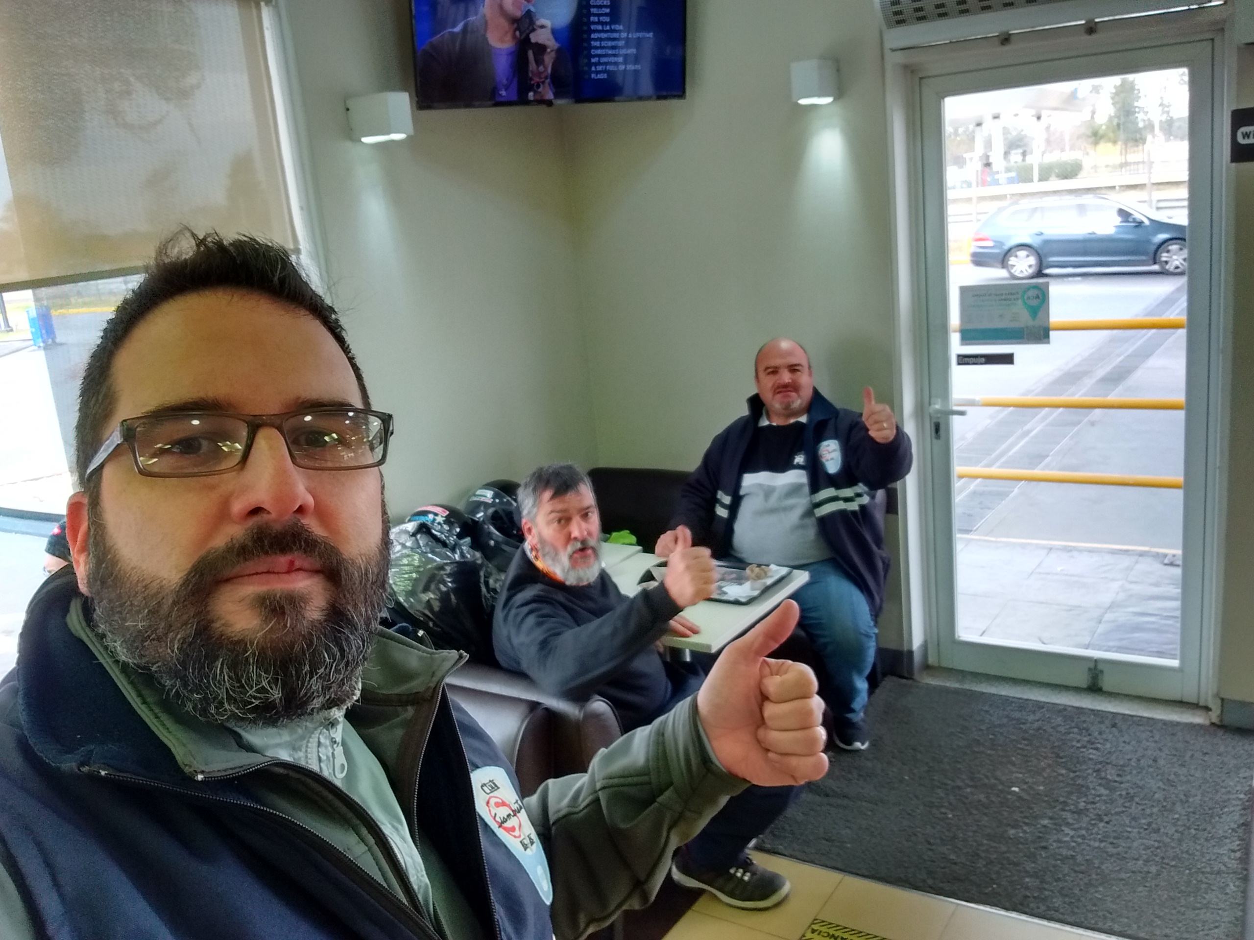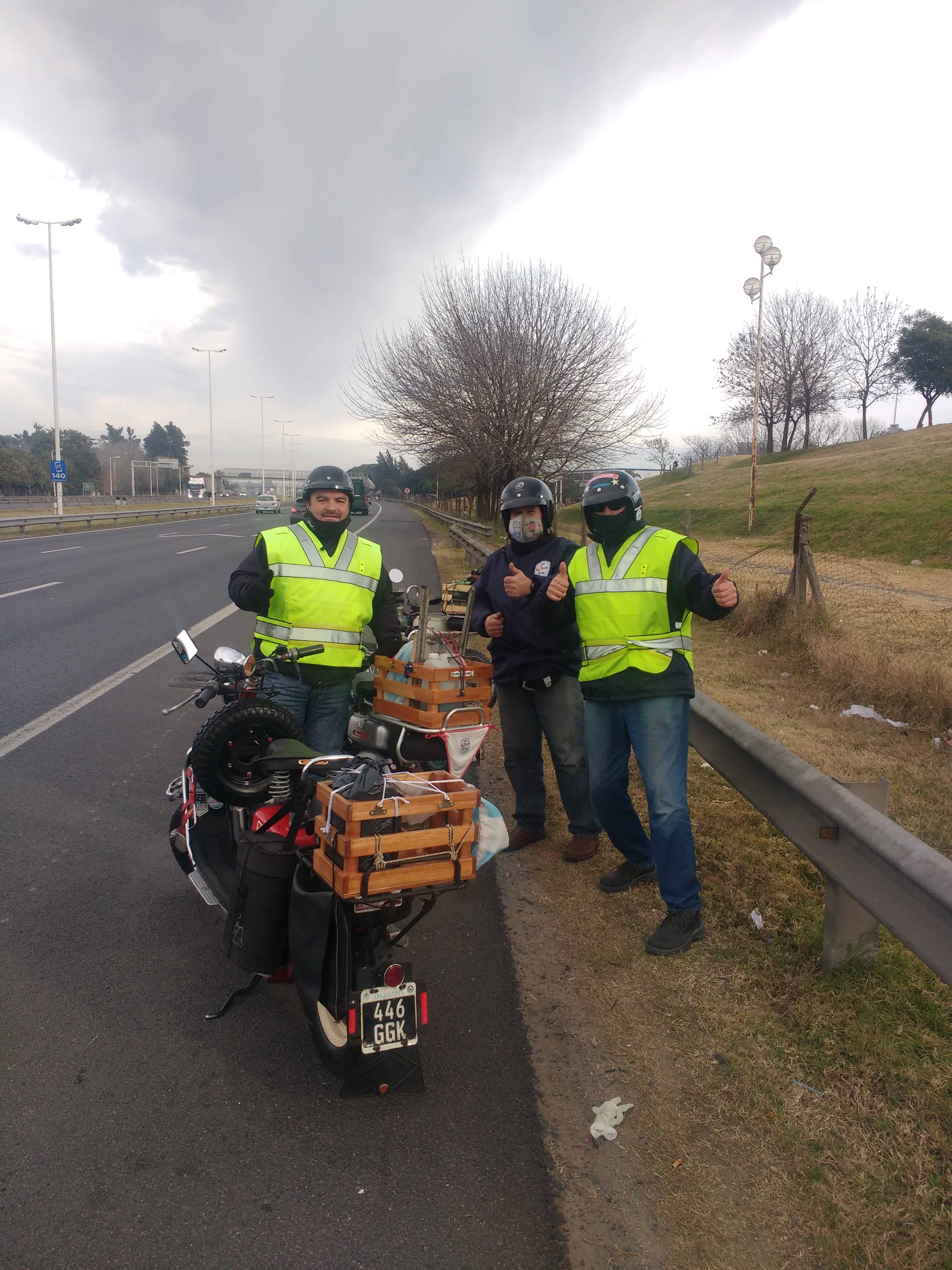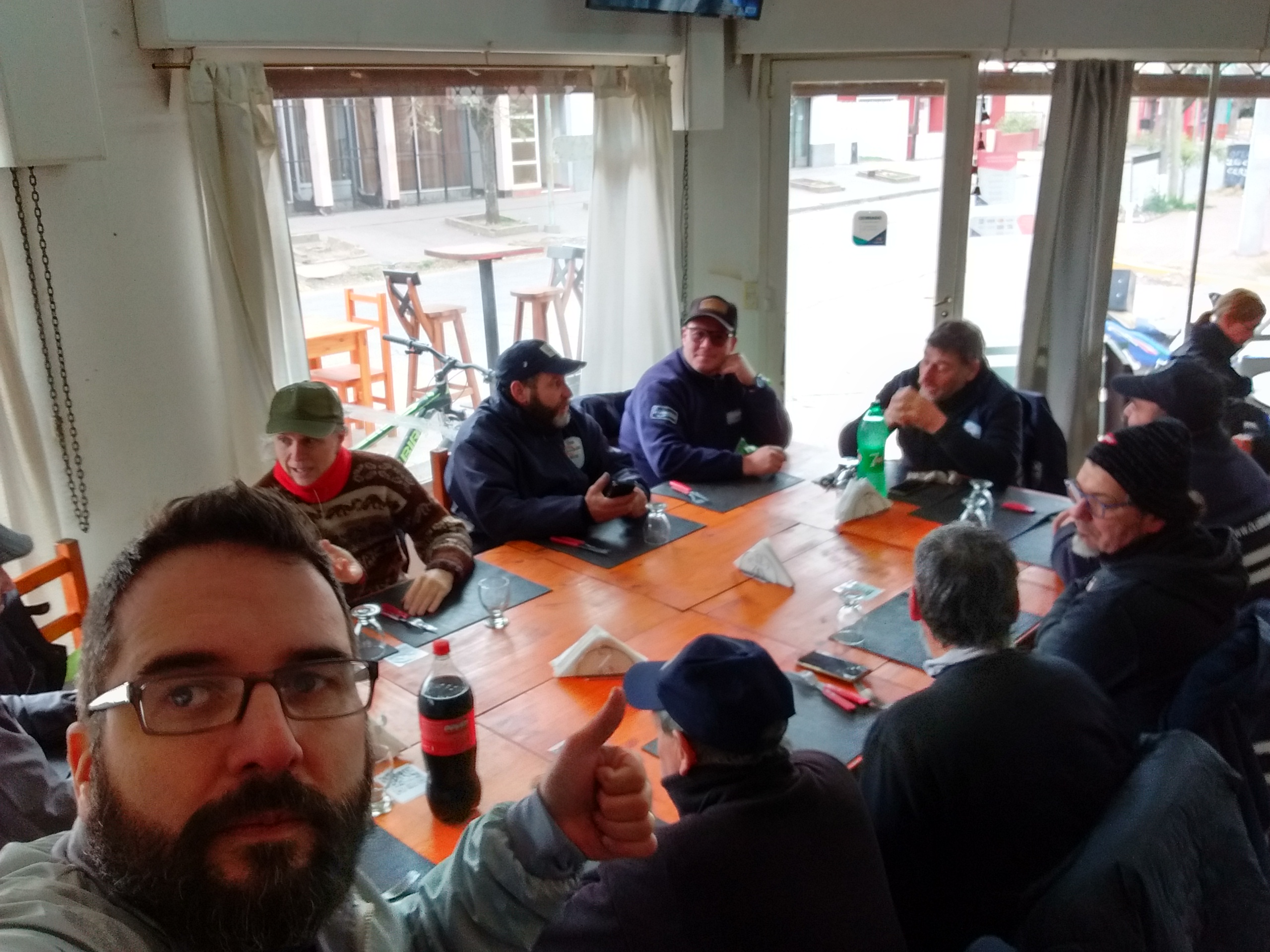 Nos juntamos a las 10.30 hs esperando que el Solcito elevara un poco la temperatura, cosa que no paso. Como ya es habitual cuando rumbeamos por el acceso, pusimos un punto de encuentro y luego nos dirigimos a la estación de servicio a desayunar.